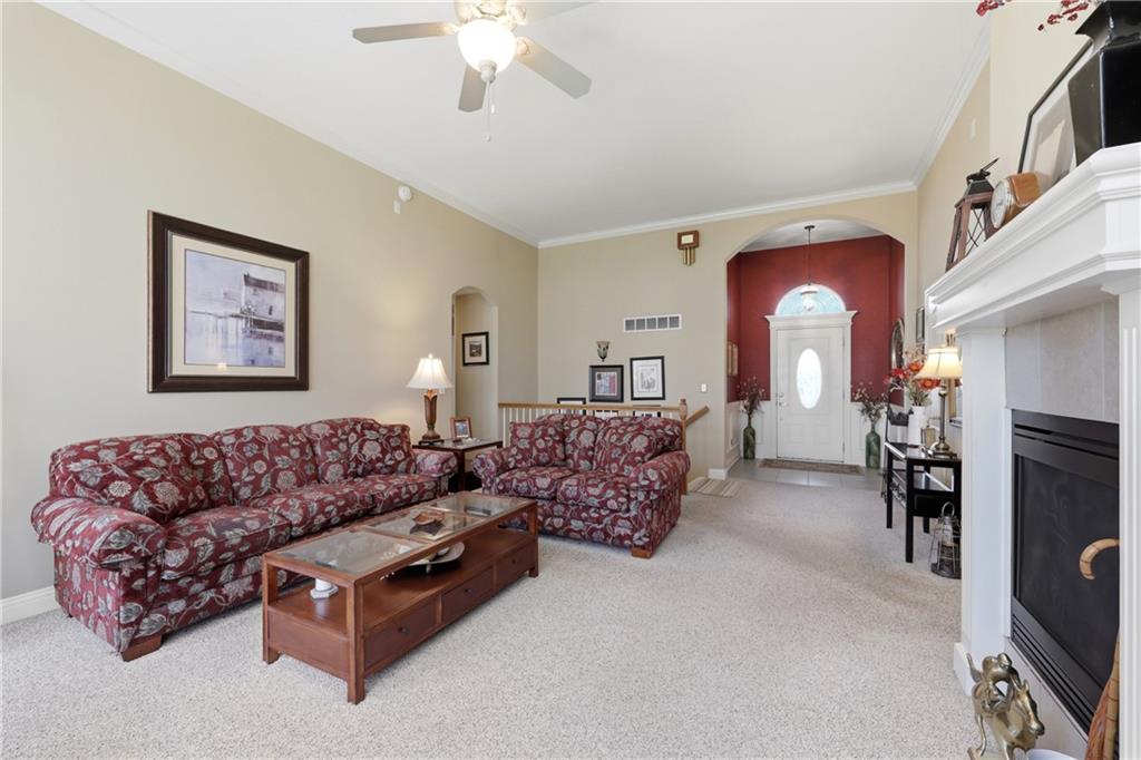 Coming soon! Check out this Beautiful 4 bed, 3 bath ranch tucked on a quiet cul-de-sac in Harrisonville! Light-filled living room with stunning floor-to-ceiling windows and cozy gas fireplace. Hardwood floors in the kitchen and dining, with comfortable carpet throughout. Finished daylight walkout basement (updated within the last year) features 10-ft ceilings, spacious second living area, 4th bedroom, and full bath, which is perfect for guests or extra space. Step outside to a patio backing to peaceful green space. Newer exterior paint and lifetime warranty roof. Just minutes from the golf course, this one checks all the boxes!