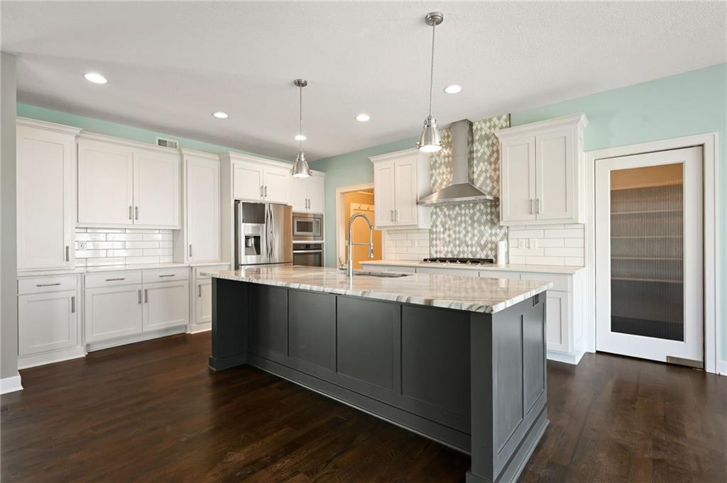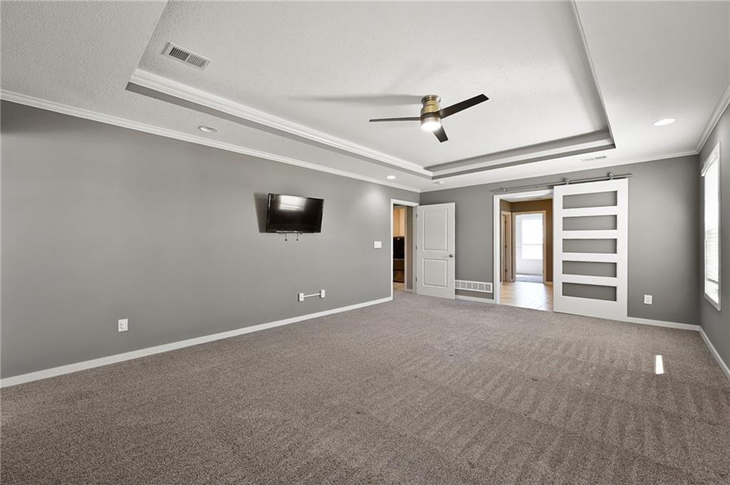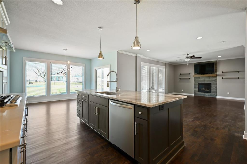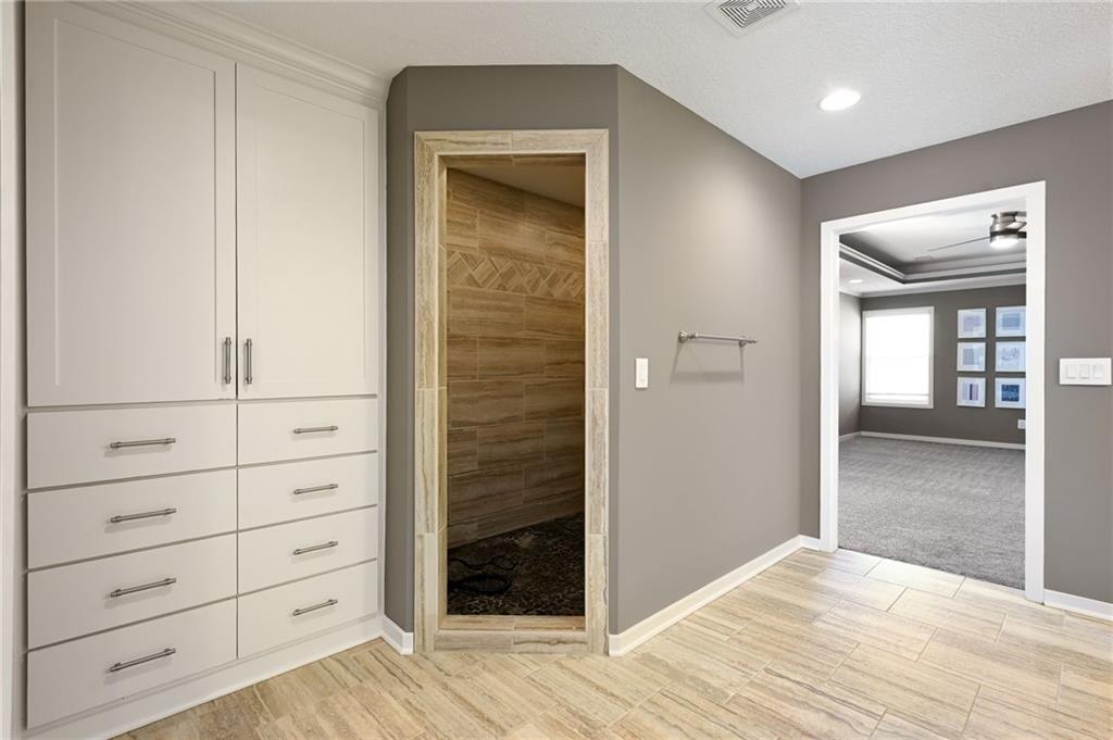 Welcome to 16210 Kentucky View Drive. This exceptional residence offers a spacious layout on nearly half an acre, conveniently situated with easy access to I-49, Highway 150, and 291. Owner Favorites: Great space for entertaining with its open floor plan and flexiable space for either a formal dining or sitting room with a pantry that could store it all! Counter top space was a must. The master suite shower with large walk-in closet with built in dressers/drawers and the seperate "my space" was so versatile yet functional . The kitchen features an oversized island, a large walk-in pantry, custom cabinetry, and hardwood flooring throughout the main level. The master bedroom includes a flexible space with a fireplace, ideal for use as an office, nursery, sitting room, dressing area, or more. The second bedroom also features a walk-in closet. The finished basement provides a full bathroom and a versatile family or game room with ample space for various activities. The oversized garage not just in depth and width but the height allows enough space for a golf simulator or storage if you must! Ready for you to call home!