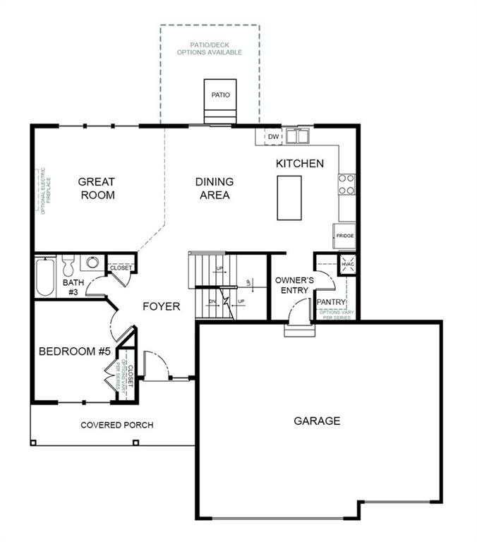Our Riverside home plan is a stylish 2-story lifestyle plan featuring 5 bedrooms and 3 bathrooms. Through the front door, you’re greeted by a lovely foyer that to an open layout that seamlessly connects the great room, dining area, and kitchen with a walk-in pantry. In addition, the main floor has a full bedroom and bathroom. Upstairs, you’ll find the primary suite, three additional bedrooms, and a convenient laundry room that connects directly to the primary closet for easy access. Looking for additional space? Consider finishing the lower level to include a rec room, another bedroom, and an extra bathroom, enhancing the versatility and functionality of your home.