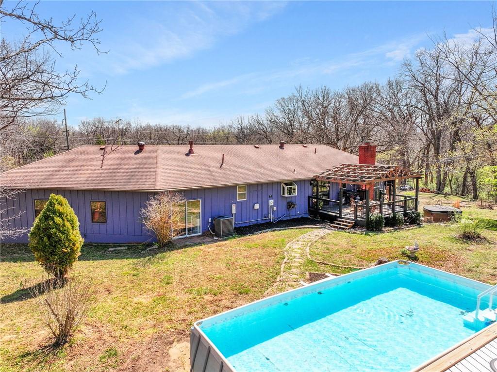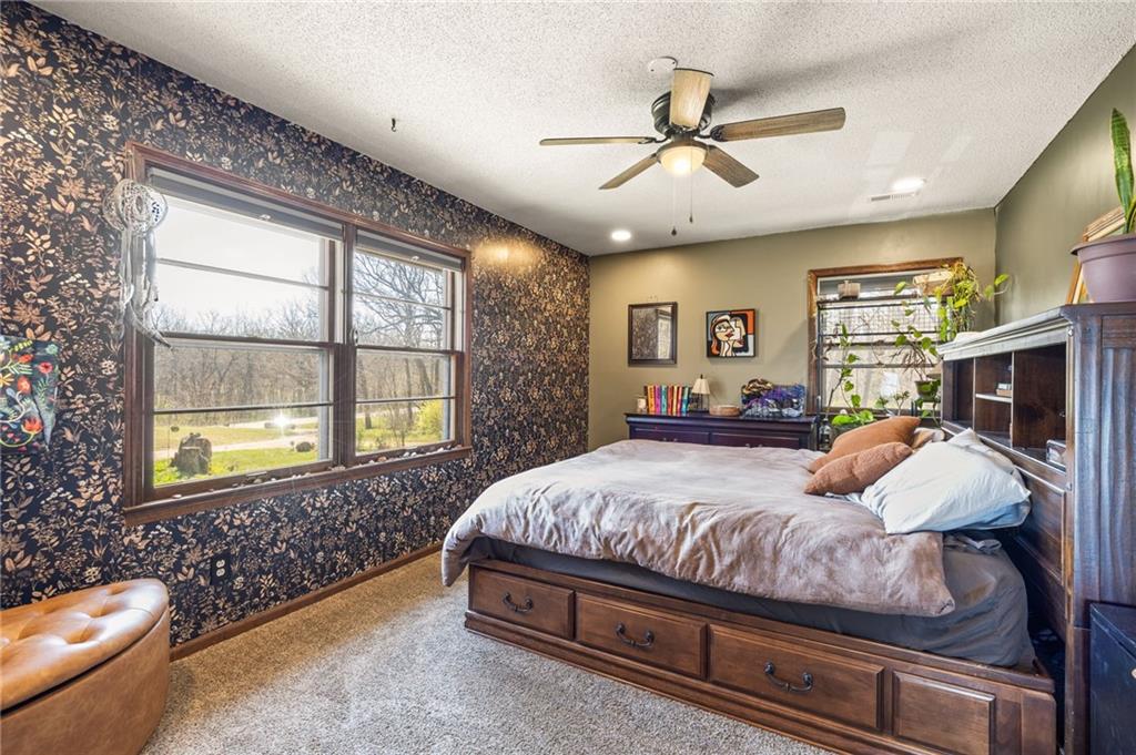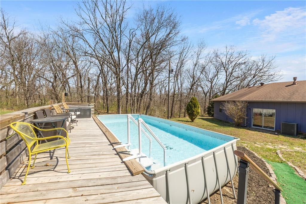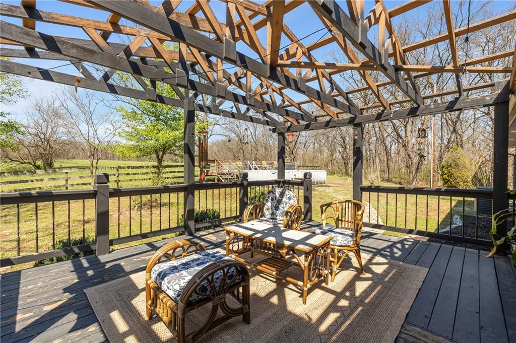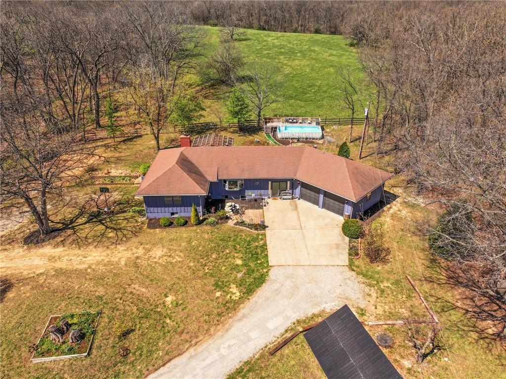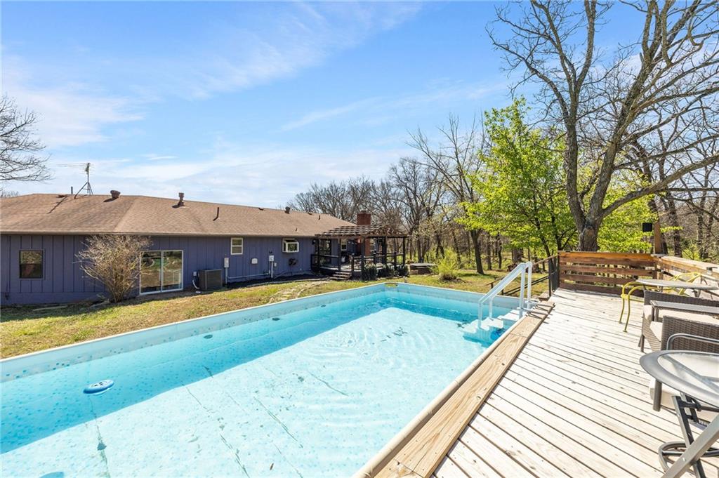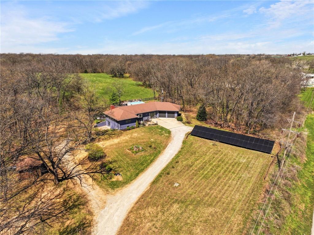 Solar panels, hot tub, pool, space, three wooded acres, and upgrades—this property brings it all. With $80,000 in paid-off solar panels, a hot tub, an above-ground pool with a custom-built deck, and an incredible setting surrounded by mature trees, open fields, and beautifully maintained landscaping, this is the kind of property that makes an impression from the very start. Located just 7 miles north of Warrensburg, it offers the perfect blend of convenience and peaceful country escape. Inside, the home is spacious, updated, and built for both everyday living and entertaining, featuring 4 large bedrooms, 3 full bathrooms, brand-new top-of-the-line appliances, a media room with a giant projector screen, and a full bar downstairs. The oversized garage has room for 2 vehicles plus tools, freezers, and extra storage, and there is an additional shed on the property as well. The paid-off solar system adds tremendous long-term value, with energy savings that can make utility bills nearly nonexistent during sunny months and dramatically lower in the winter. Whether you are looking for a private retreat, a home built for hosting, or a beautifully updated property with standout amenities close to town and Whiteman Air Force Base, this one checks every box.