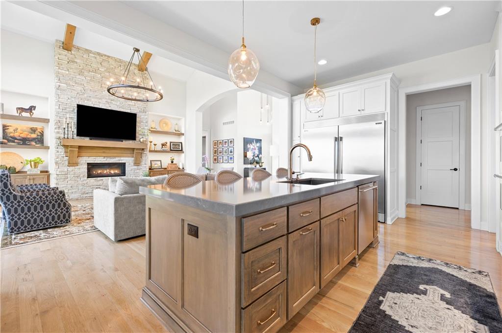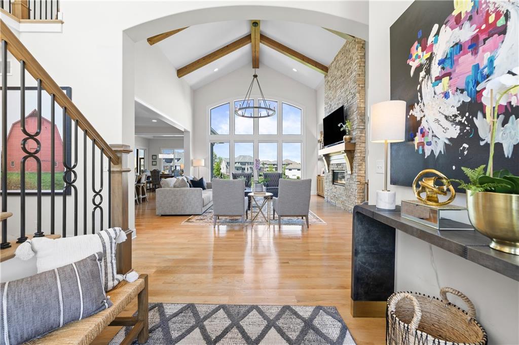 ONE TIME OPPORTUNITY IN FAVORITE TERRYBROOK FARMS! EXCITING LUXURY HOME ON PRIMO ESTATE LOT WITH DESIGNER INTERIOR & POND/FOUNTAIN VIEWS IS MOVE-IN-READY! Prepare for WOW! The talents of Award-Winning Builder John Geer and Architect Extraordinaire Scott Bickford combine in this dazzling, artisan home. Everything on your "wishlist" is right here, from the 4-car garage with epoxy floor, to the state-of-the-art-kitchen (plus prep-kitchen with walk-in pantry) and luxe 1st-floor master suite with room-sized closet. The private office /study walks onto the screened porch with fireplace, media and serene views. UPSTAIRS discover 3 spacious EN SUITE BEDROOMS and study/play LOFT. The finished, WALK-OUT LOWER-LEVEL is ready for fun with a FAMILY ROOM, billiards area, wetbar/mini-kitchen, guest bedroom suite. Special features include silent floor joists (no squeaks), designer lighting and detailing, 8' doors, specialty ceilings, extensive built-ins, storage galore, irrigation, fenced yard, tankless water heater, just to name a few. Interactive floorplan, photos, aerials & "Distinctive Features" list will soon be in supplements, Homeowners and their guests enjoy a community pool, cabana, playground, trails to explore, and an active HOA; finest Blue Valley schools...close to shopping, dining and highway access. We can't wait to show you.