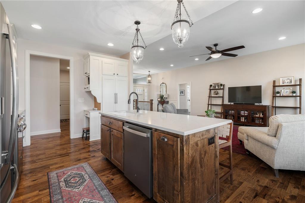 A rare opportunity in the highly desirable Piper area—this custom-built ranch offers the perfect blend of style, space, and functionality with 5 true bedrooms and thoughtfully designed living spaces throughout. From the moment you enter, you’ll appreciate the warm elegance of hardwood floors that flow through the entry and into the kitchen, setting the tone for the home’s quality craftsmanship. The open layout is both inviting and practical, ideal for everyday living and entertaining alike. The spacious primary suite serves as a private retreat, complete with a generously sized walk-in closet and a well-appointed en-suite bath. Convenience is key with main-level laundry and a mudroom just off the 3-car garage—perfect for keeping life organized. The finished lower level expands your living space with a large family room and two additional bedrooms, each featuring walk-in closets, making it ideal for guests, hobbies, or multi-generational living. Step outside to a covered deck equipped with a ceiling fan—an ideal spot to relax and enjoy the outdoors in comfort. Additional highlights include granite countertops and beautifully finished ceramic tile bathrooms throughout. With its exceptional layout, quality finishes, and sought-after location, this home delivers comfort, space, and everyday livability all in one. Don’t miss your chance to make it yours.