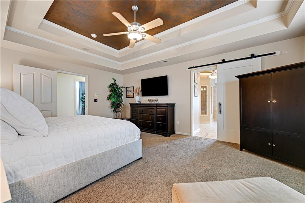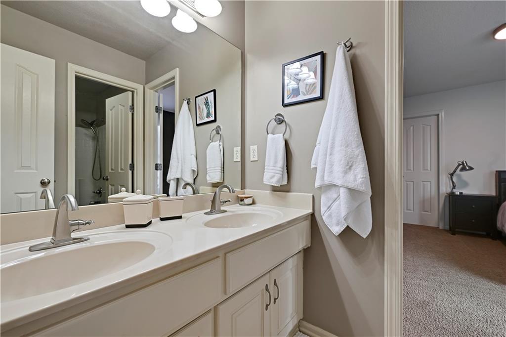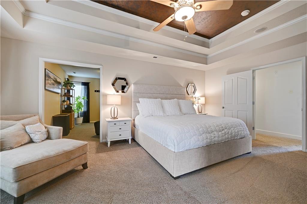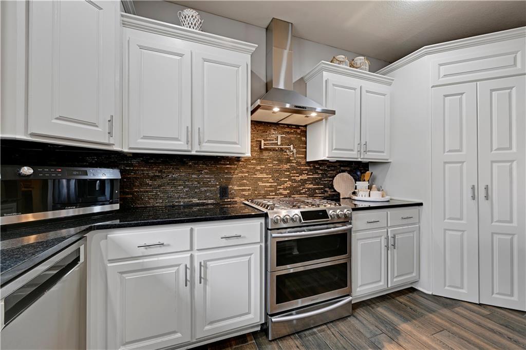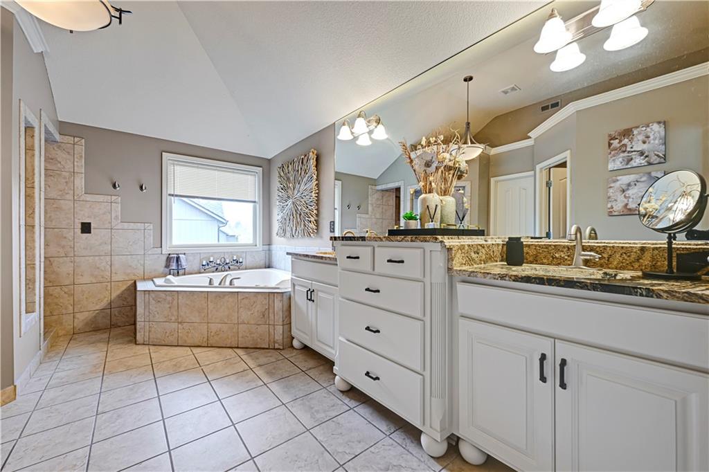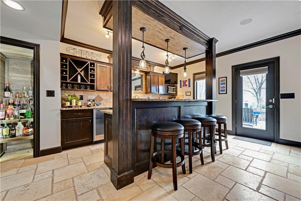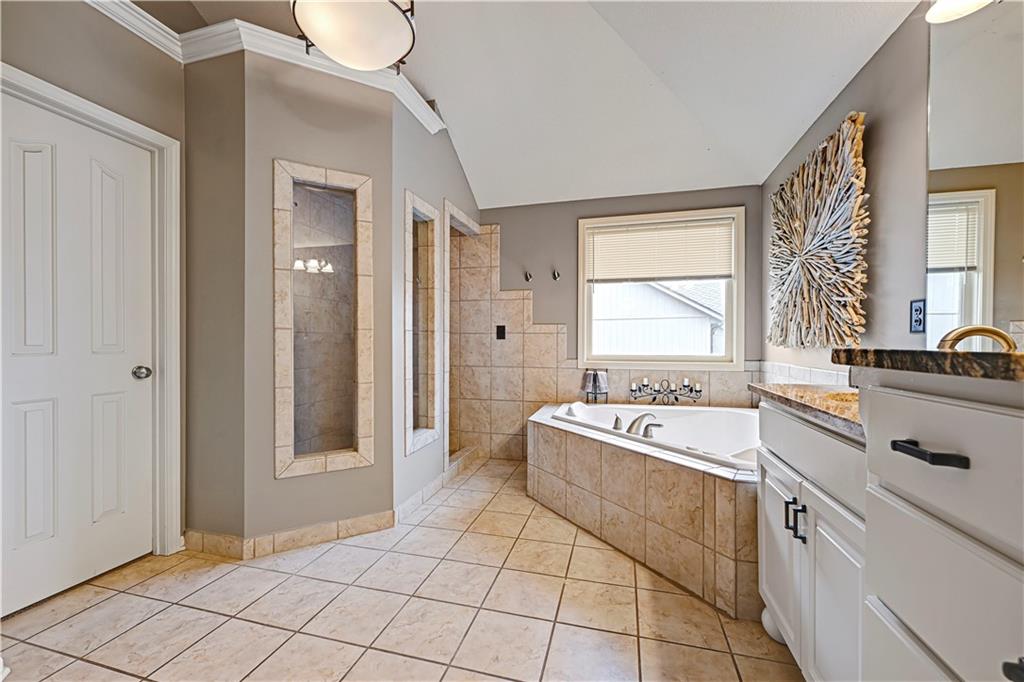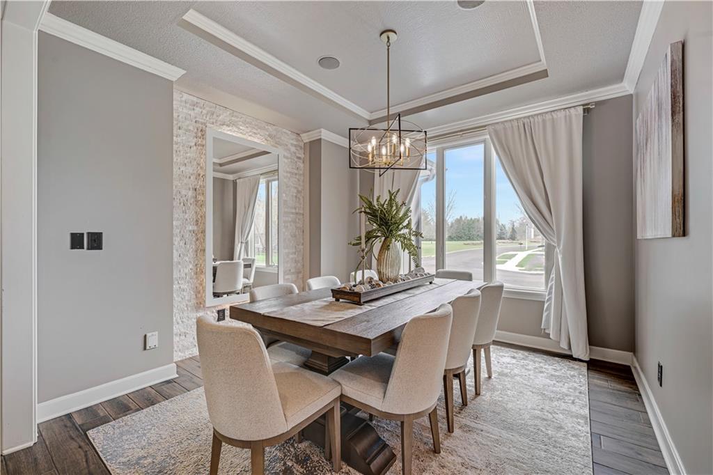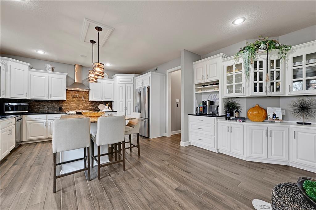 The most perfect Two Story on .23 Acres, fenced except for two short sides at front. Meticulously maintained by Original owners. Walkout basement with almost 9 foot ceilings, granite bar for entertaining, 4th full bath, fireplace and lots of storage. New roof less than 2 years ago, and new exterior paint, Engineered Hardwoods thru main floor, granite island in eat-in kitchen, 1/2 bath on main, formal dining room, fireplace in Great room, walk out the kitchen to gorgeous deck overlooking stunning landscaped backyard with 2 different patios for entertaining, Covered porch, 4 bedrooms on second level with 3 full baths, walk-in shower in Primary bath, large walk-in closets. New Energy efficient Garage Doors, New paint throughout interior. Blue Valley Schools, great Highway access, neighborhood pool, trails, play area, and stocked fishing pond. You'll love it!