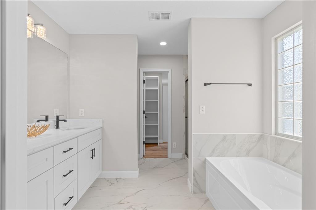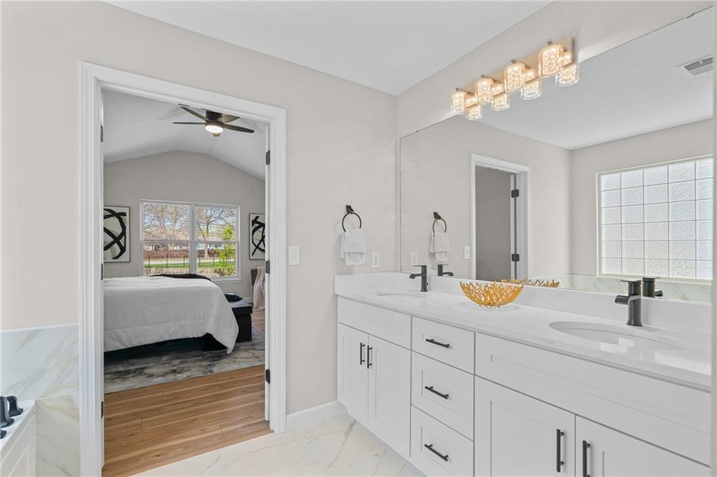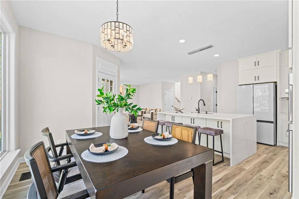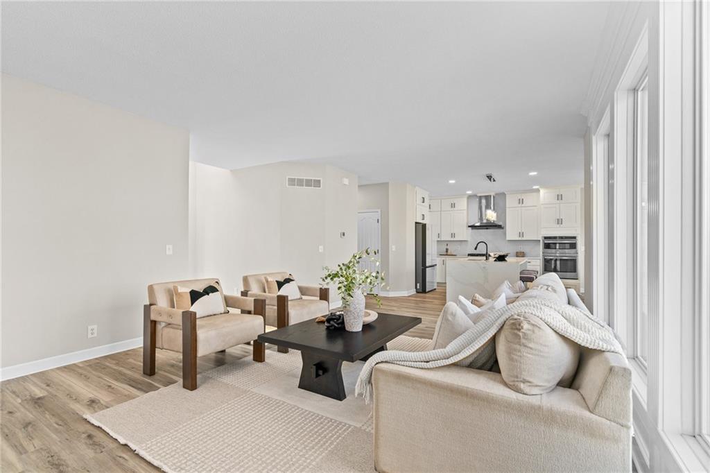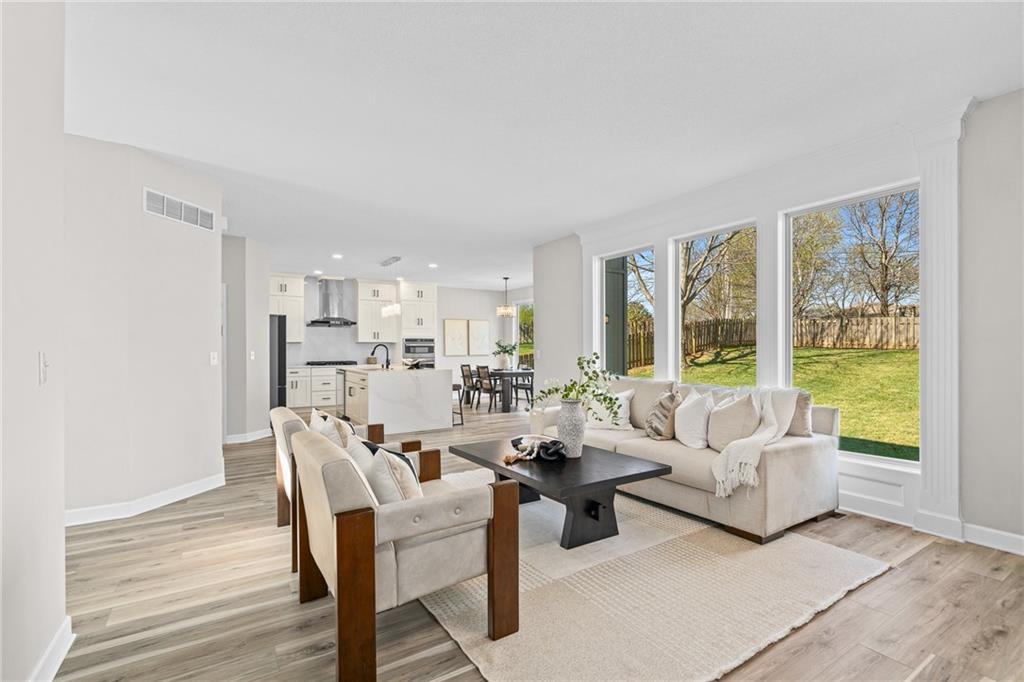 Completely reimagined inside and out, this Shawnee home offers the rare chance to move into a space that already feels brand new. Nearly every surface has been refreshed or redesigned to create a home that feels cohesive, elevated, and truly move-in ready. The kitchen sets the tone for the entire home, anchored by a stunning wrap-around waterfall-edge marble island with matching marble backsplash. Soft-close cabinetry, oversized sink with touchless faucet, and a premium appliance package including Samsung Bespoke refrigerator and dishwasher, 36-inch Frigidaire gas cooktop, Fotile range hood, and GE double wall oven with built-in microwave bring both style and function together beautifully. Updated flooring, baseboards, and fresh paint continue the polished feel throughout the main level. Upstairs features brand new flooring throughout, fresh paint, an expanded primary closet, and an updated primary bathroom with marble tile flooring, walk-in shower with sliding glass doors, and double-sink vanity with soft-close cabinetry. The finished basement lives like a natural extension of the home with marble tile flooring, a beautifully updated full bathroom, new lighting, fresh paint, hardwood stairs with updated handrails, and a flexible space ready for a guest suite, workout room, or second living area. Located in one of Shawnee’s most convenient areas near parks, trails, shopping, dining, and highway access, homes with this level of renovation rarely come available.