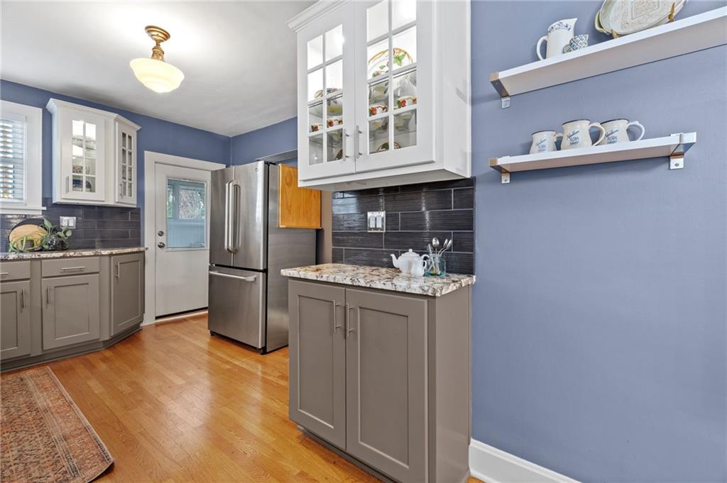 Waldo bungalow is updated, bright, inviting and you'll fall in love the minute you see the front porch. Eat-in kitchen has granite countertops, subway tile, glass-front cabinetry, under-cabinet lighting, gas range, and stainless steel appliances. Formal Living Room and Dining Room, plus primary bedroom and bath on the 1st floor. Darling mud-room off backdoor , newer Trex back deck (2023), party lights and beautiful shaded yard and garden. Updates recently: newer tilt-in windows, HVAC (2022), water heater (2023), basement windows (2020), and added insulation with siding upgrade. Hardwood floors throughout, original architectural details, privacy fence in backyard, spacious detached garage with plenty of space to pull in and to the side on shared driveway. 2nd floor can be used as 3rd bedroom or office. Location is IDEAL. Steps from all things Waldo --Trolley Track Trail, shops and dining. This home has the detailed maintenance & move-in ready finishes you're looking for! Character + Updates all under one roof!