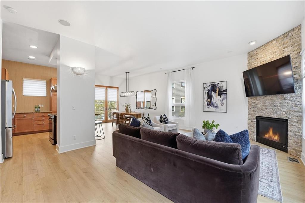 Experience the ultimate urban lifestyle in this updated 3-story corner townhome, perfectly situated just steps from the world-class shopping and dining of the Kansas City Plaza! Spanning over 2,000 square feet, this residence blends modern luxury with functional design. Large 2-car garage with epoxy floors and built in storage cabinets! This home has been refreshed, featuring brand-new LVP flooring throughout, new appliances, plush new carpet on the stairs, and a crisp, modern interior paint palette. The heart of the home features an open-concept kitchen and living area bathed in natural light with gas fireplace and balcony overlooking Washington Street. The chef-ready kitchen boasts new stainless steel appliances, sleek cabinetry, granite countertops, and a spacious breakfast bar. Whether you're hosting a dinner party in the formal dining area or relaxing by the stone-accented fireplace, this level is designed for seamless living. The third level is a private retreat - The bedroom level offers convenience and comfort. The spacious Master Suite features a true spa-like experience with a large walk-in shower, large jacuzzi tub, a double granite vanity, and elegant finishes. You’ll also find the second bedroom, another full bathroom, and a brand-new washer and dryer set located outside both bedrooms. Ascend to the top floor to discover your private oasis. The expansive Sky Deck offers breathtaking views of the Plaza skyline. This ultimate indoor/outdoor entertainment space comes fully equipped with a built-in wet bar, wine cooler, ice maker, granite countertops, and a convenient half-bath, making it the perfect spot for sunset cocktails or fire pit gatherings. Top Sky Deck level could be used as entertainment or office area!