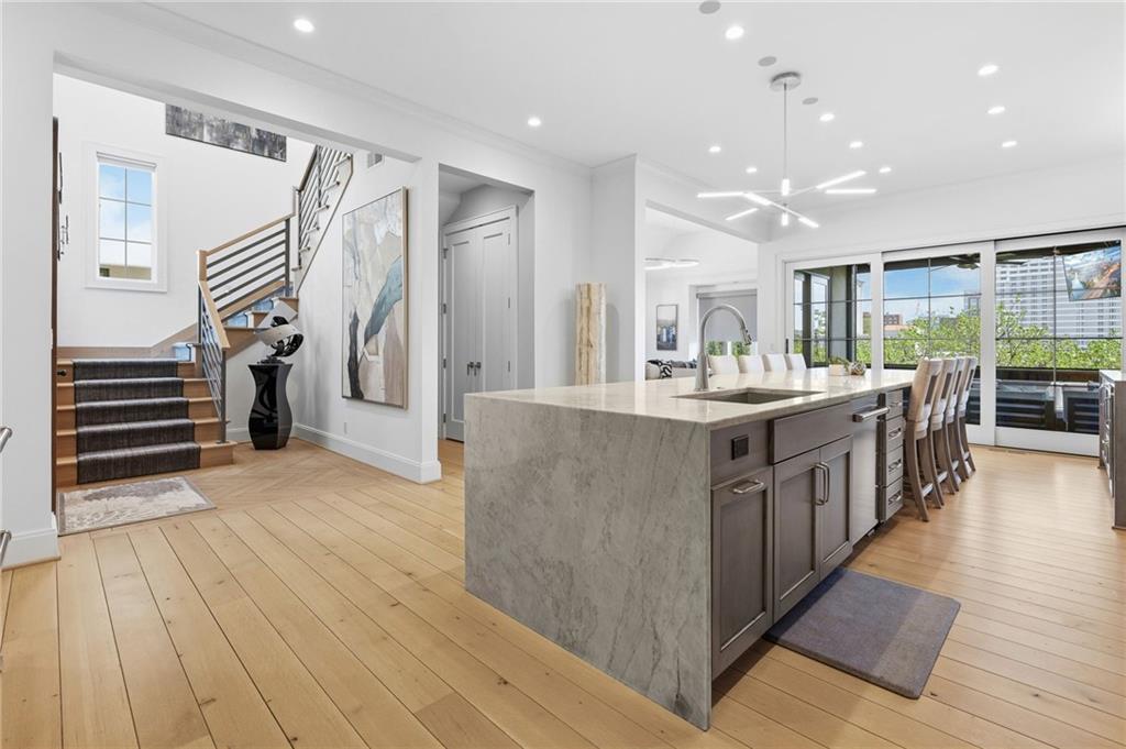 Enjoy this nearly-NEW, custom stone home, tucked right into the heart of West Plaza, just north of Sunset Hill. Sophisticated & design-forward, this property combines absolute luxury AND complee comfort in one well-thought-out space. Built in 2017, this home is sleek, has modern architecture, high-end finishes, an open floor plan and ALL the luxurities of lock and leave living, without pricey HOA dues. A stunning chef’s kitchen anchors the main level with a 16-foot waterfall quartz island and top-tier appliances, including a 60” Wolf range, warming drawers, double dishwashers, and a Viking refrigerator with integrated wine and beverage storage. Just off the kitchen is an open great room with a marble gas fireplace and quick access to the screened-in porch, complete with motorized shades overlooking your own private yard. The primary suite has a spa-like bathroom, expansive walk-in closet with quartz island, and a private deck with treetop views toward the Country Club Plaza. The laundry room is off the primary bedroom closet (along with a second set in the LL). The walk-out lower level leads to a covered porch, fire pit, seating and room to entertain, plus low maintenace turf for year-round green grass and sprinkler system to keep established privacy-setting landscaping in full bloom. Two guest suites have their own bathrooms, plus a second living area, a recreation room and a home gym. Smart home technology is wired throughout the home, including Lutron scene lighting and automated shades. This is a rare opportunity to soak up refined, modern living in one of Kansas City's most sought-after-neighborhoods.