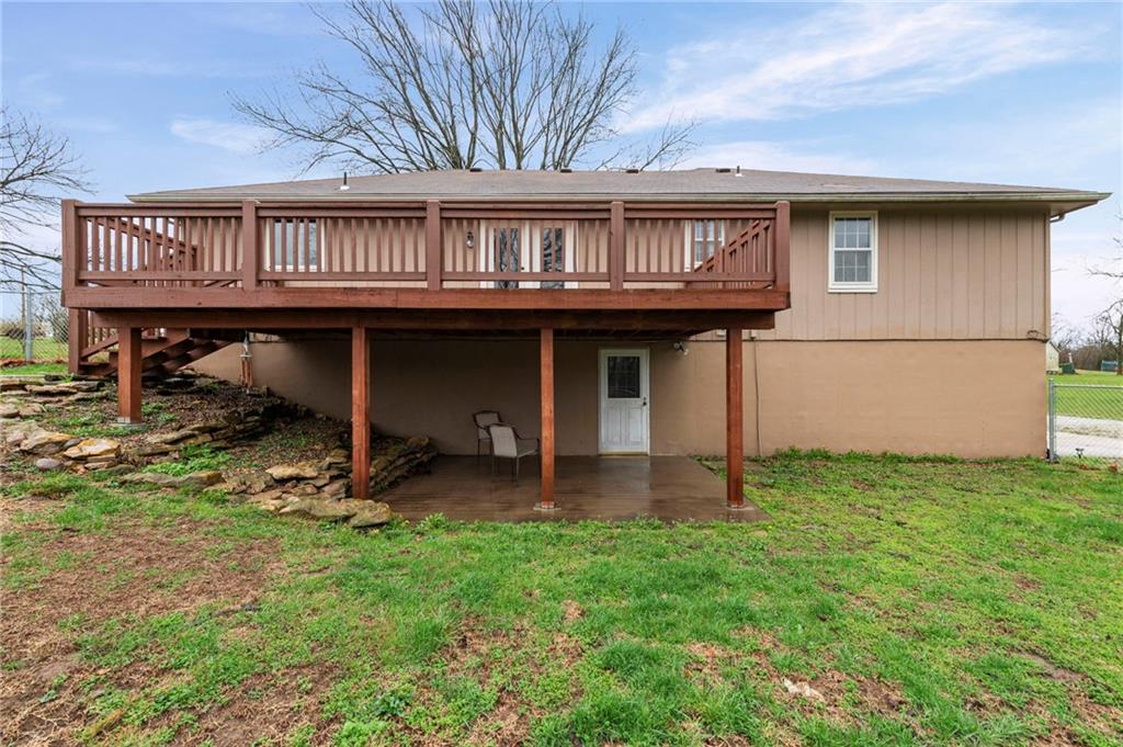 Beautiful Ranch sitting on 2.7 Acers, Enjoy a beautiful kitchen with lots of cabinet space. Walkout of your dining room onto a beautiful deck. 3 bedrooms with a non-conforming 4th room in the basement. 3 full baths, Living room with a bay window, family room, office. Improvements added- chain link fence, wood stove insert, and dishwasher. Chain link fence- July 2023 Far West Fence 816-778-3728 Chimney repair & Wood Stove insert- July 2024 Chimney Sweep- 816-269-0162 Dishwasher Replacement March 2025 Lowe's Repaint Upstairs bedroom & basement bath March 2026 New Ceiling fans living room, kitchen & bedroom March 2026