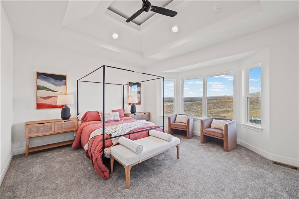 Welcome to this stunning custom-built home in Little Blue Estates, where modern design meets everyday functionality. Conveniently located near major highways, shopping & dining, this home combines comfort and style, with every detail reflecting quality craftsmanship & intentional design. Situated on a spacious, walk out / walk up corner lot, this home presents a striking curb appeal with board & batten siding, stone accents, a three car side entry garage design for generous parking, plus a welcoming covered entry. Inside you'll find an open-concept layout filled with natural light, highlighted by soaring ceilings, rich hardwood floors & a dramatic floor-to-ceiling stone fireplace. The living area flows seamlessly into a beautifully designed kitchen featuring a large center island, custom cabinetry, designer lighting & a walk-in pantry. The dining area is surrounded by expansive windows, offering peaceful views and an abundance of natural light. The thoughtfully designed layout provides privacy with a spacious primary suite that serves as a true retreat, complete with a spa-like bathroom featuring a walk-in tiled shower, dual vanities, and a large walk-in closet with custom shelving. On the lower level, you'll find a spacious rec room with wet bar -- perfect for hanging out on game day or just enjoying peaceful relaxing nights at home. Two large additional bedrooms, a full bath, an office & a DARLING play space tucked under the staircase with charming Dutch door round out the lower level. Back upstairs, extend your entertaining space on the covered deck. Construction on the community pool will commence during the third phase of development. Within walking distance to Little Blue Elementary School, plus Independence taxes & utilities! Photos are from a previously constructed home in a different development, so final finishes may vary. This home features more than 23K in planned upgrades at current list price, so price can be reduced if buyer decides to skip some!
