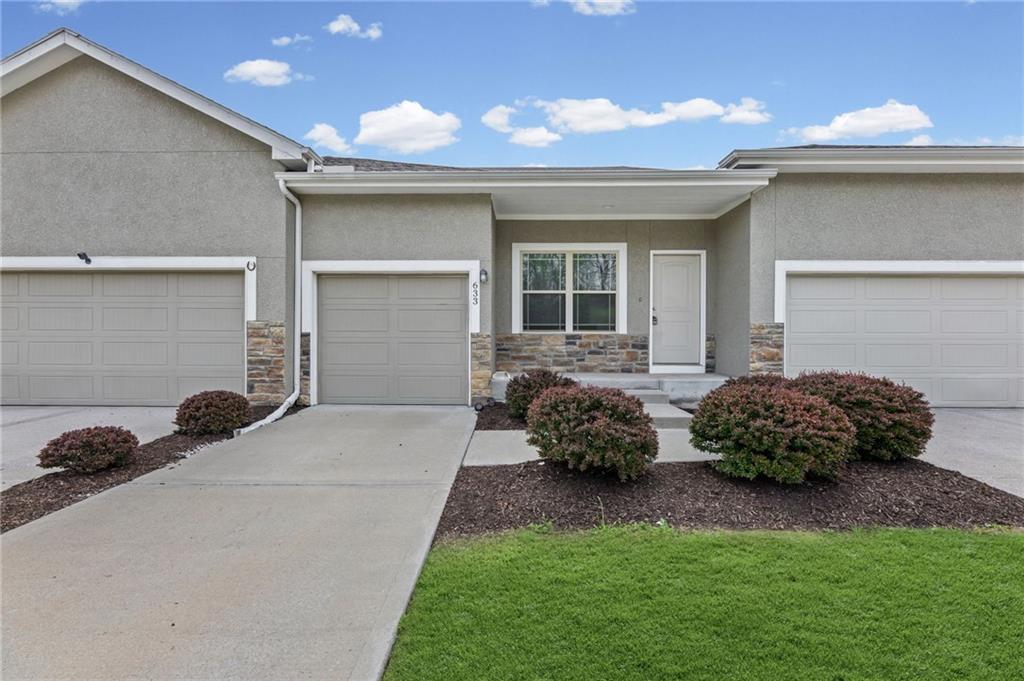 Rarely available 2-bedroom, 2.5-bath townhome in Villas of Stonebridge! This spacious, move-in-ready home offers the perfect blend of privacy, style, and true low-maintenance living. Inside, you’ll find granite countertops, stainless steel appliances, and large, bright windows that fill the home with natural light. The property has been well maintained and features brand new carpet and fresh paint throughout, ready for you to move right in! Step outside to your patio backing to greenspace and a wooded area, creating a peaceful setting ideal for morning coffee or evening relaxation. The HOA covers lawn care, landscaping, snow removal, exterior maintenance, and more, allowing for easy, worry-free living. Conveniently located with quick highway access and just minutes from The Legends, Kansas Speedway, and the future home of the Chiefs Stadium! Schedule your private showing today! (Investment opportunity available with the two neighboring units also for sale. Please reach out for additional details on a package purchase if interested)