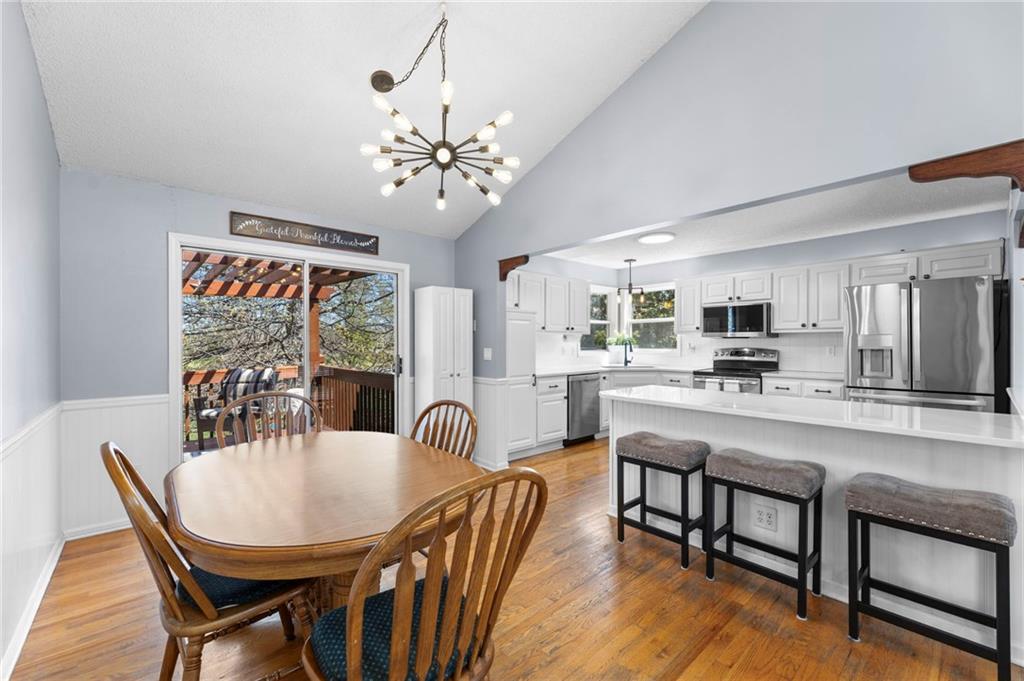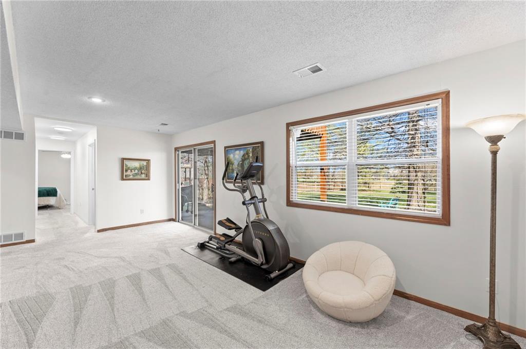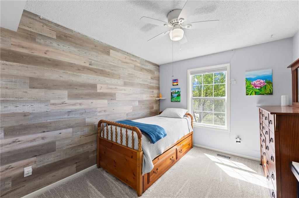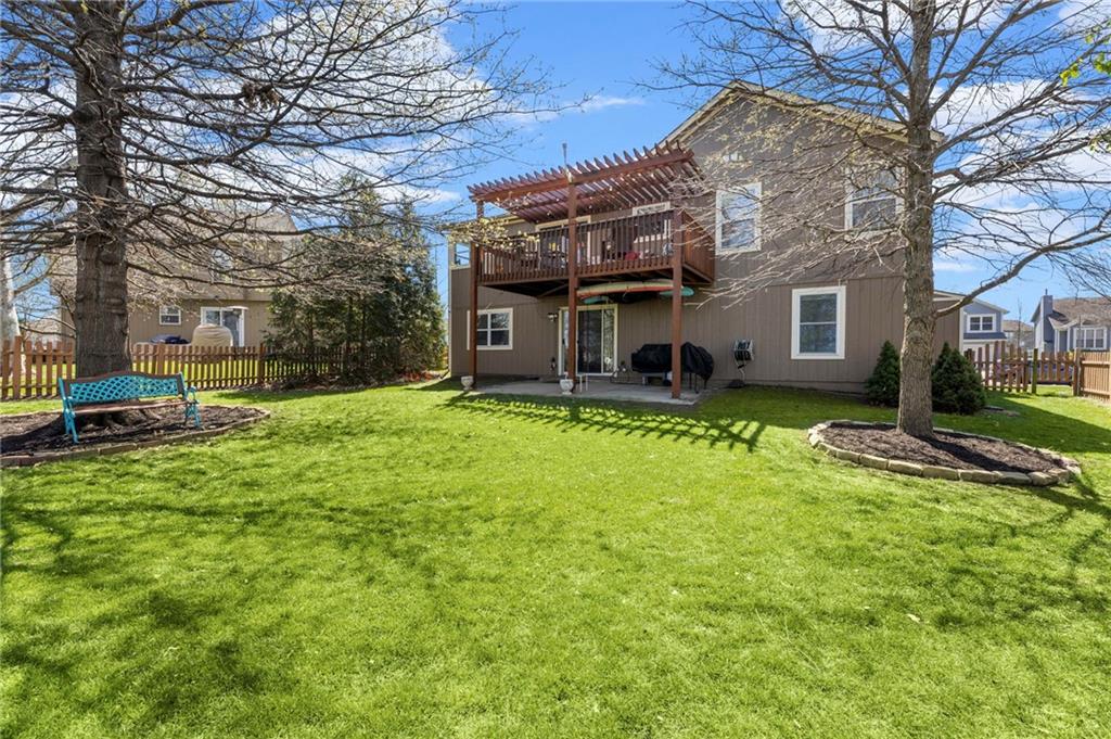PRIME LOCATION! Located in a quiet cul-de-sac within the sought-after South Hampton subdivision, this meticulously cared-for, move-in-ready home backs directly to a scenic city park, trail system, and greenspace. The property is designed for modern ease, featuring permanent holiday and security lighting, Wi-Fi garage doors, and an array of smart switches and dimmers throughout. Inside, the light-filled living room features vaulted ceilings and smart window blinds. The wood-burning fireplace, with an available gas line, serves as the heart of the home and is complemented by an elevated dining area featuring elegant wainscoting and a pendant light. The updated kitchen has sleek quartz countertops, an undermount sink, and stainless-steel appliances, including a smart microwave. The primary suite is a true retreat with an architectural coffered ceiling, dual closets (including one walk-in), and a private ensuite bath featuring a dedicated makeup vanity and shower. The upper level also includes two charming secondary bedrooms with rustic accent walls and built-in shelving. On the lower level, you’ll find a conforming fourth bedroom that offers a private space for guests or a home office, with easy access to the adjacent full bathroom. The finished walkout basement flows right out to a patio and a fenced yard. Perfect for relaxing on the pergola covered upper deck while taking in the views of Hampton Park. Between the convenient lower-level laundry, large sub-basement and attached shed for storage, this home is designed to be as practical as it is beautiful.