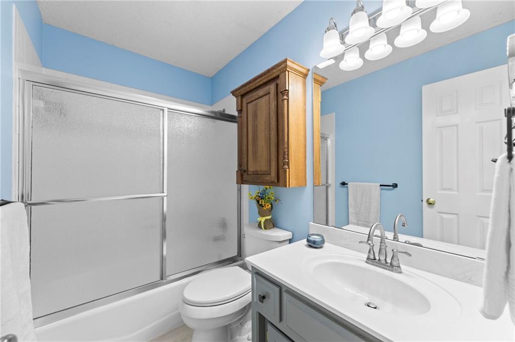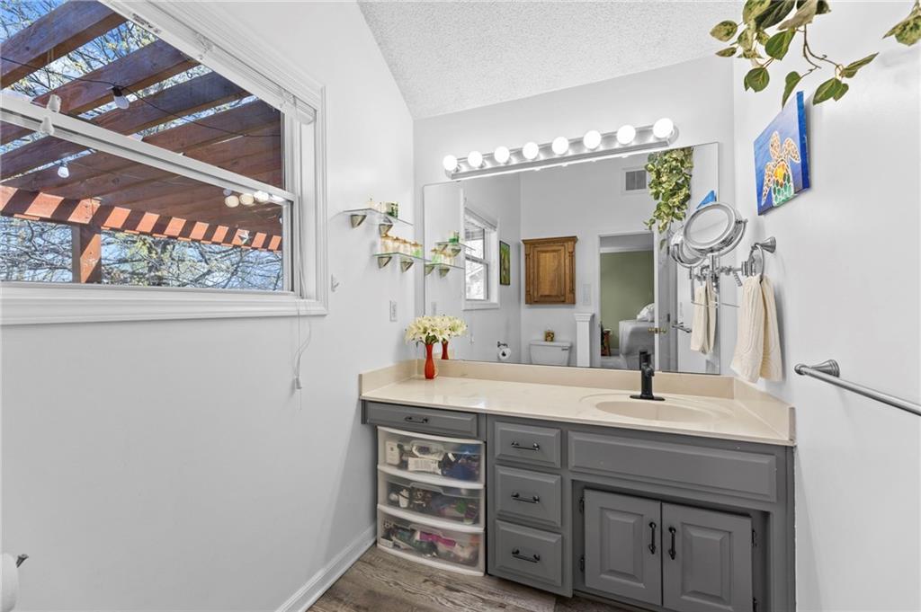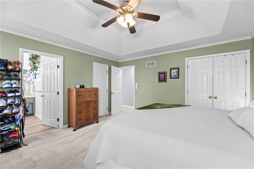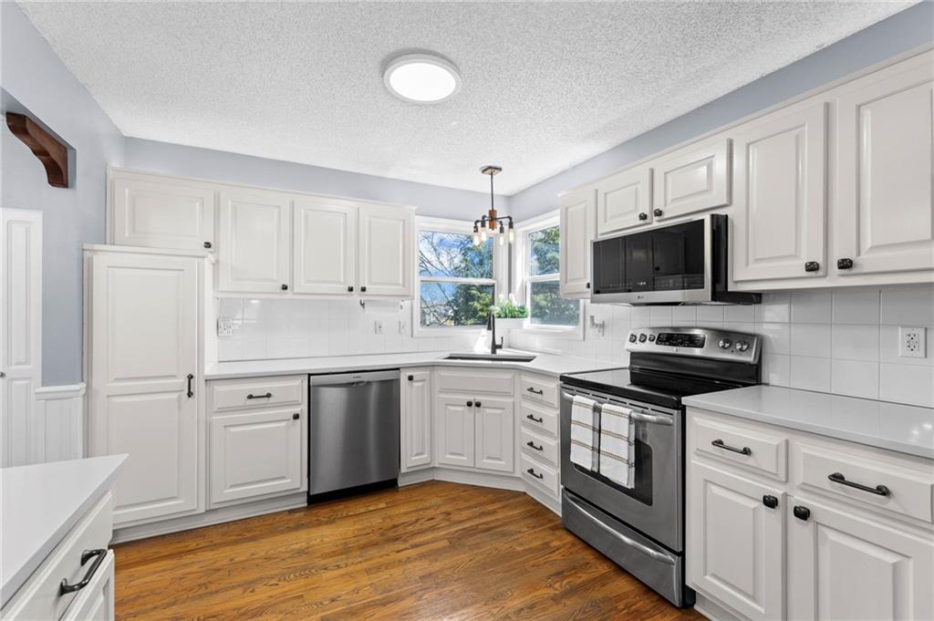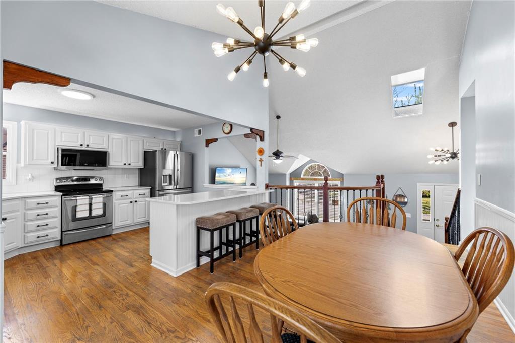 PRIME LOCATION! Located in a quiet cul-de-sac within the sought-after South Hampton subdivision, this meticulously cared-for, move-in-ready home backs directly to a scenic city park, trail system, and greenspace. The property is designed for modern ease, featuring permanent holiday and security lighting, Wi-Fi garage doors, and an array of smart switches and dimmers throughout. Inside, the light-filled living room features vaulted ceilings and smart window blinds. The wood-burning fireplace, with an available gas line, serves as the heart of the home and is complemented by an elevated dining area featuring elegant wainscoting and a pendant light. The updated kitchen has sleek quartz countertops, an undermount sink, and stainless-steel appliances, including a smart microwave. The primary suite is a true retreat with an architectural coffered ceiling, dual closets (including one walk-in), and a private ensuite bath featuring a dedicated makeup vanity and shower. The upper level also includes two charming secondary bedrooms with rustic accent walls and built-in shelving. On the lower level, you’ll find a conforming fourth bedroom that offers a private space for guests or a home office, with easy access to the adjacent full bathroom. The finished walkout basement flows right out to a patio and a fenced yard. Perfect for relaxing on the pergola covered upper deck while taking in the views of Hampton Park. Between the convenient lower-level laundry, large sub-basement and attached shed for storage, this home is designed to be as practical as it is beautiful.