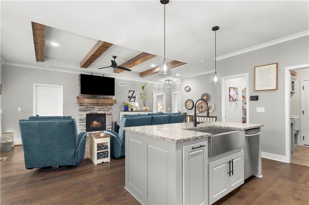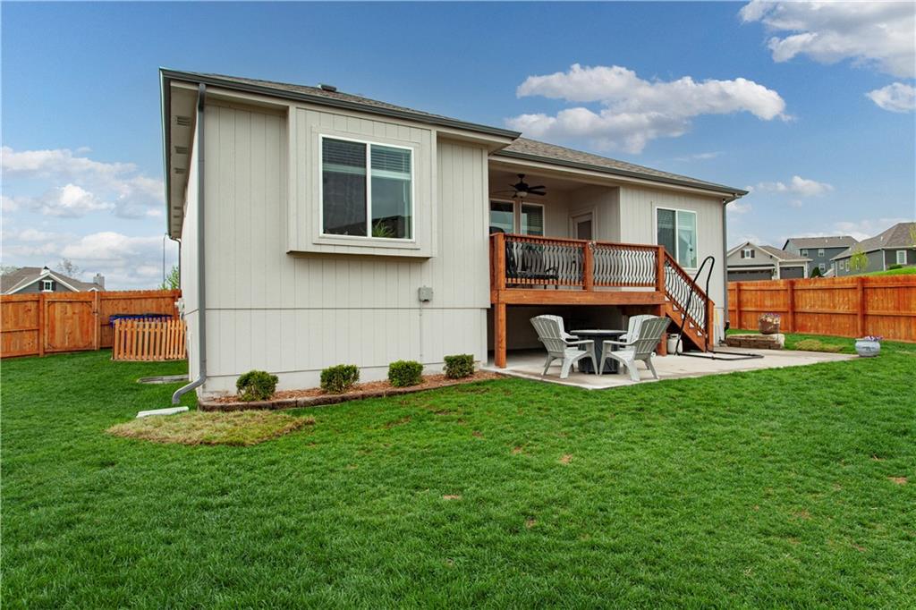Located in the sought-after Woodbury subdivision, this beautifully maintained reverse 1.5-story home offers 4 bedrooms and 3.5 bathrooms in a thoughtfully designed layout. Only 6 years old, this home combines modern style with everyday comfort. The spacious kitchen features white painted cabinets, an oversized island perfect for gathering and entertaining. The open floor plan flows seamlessly into the main living areas, creating an inviting space for family and guests alike. Keep the lawn lush and green with help from the irrigation system. This home also offers a wood private fenced backyard. This move-in-ready home offers the perfect blend of style, function, and neighborhood amenities in one of Grain Valley's most popular communities.