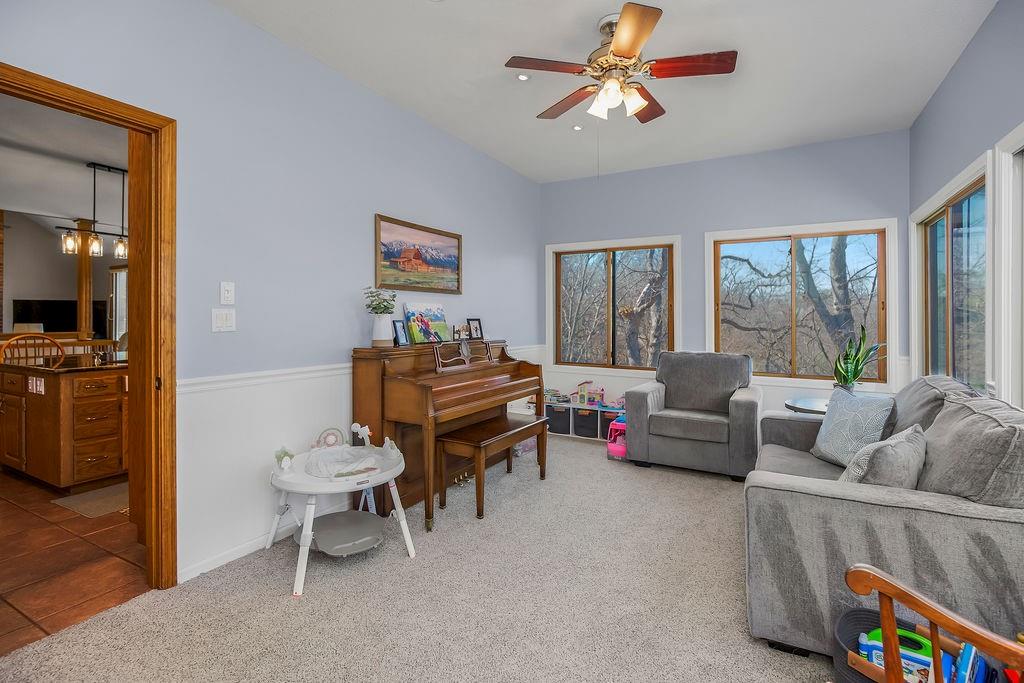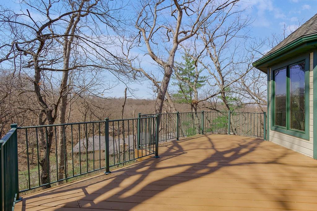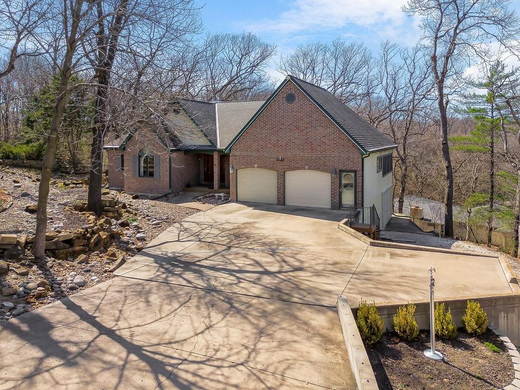 Beautiful reverse 1.5-story home located in the desirable Black Swan Estates community. This 3-bedroom, 3 full bath home features a fully finished walkout lower level complete with a wet bar and private guest suite—perfect for entertaining or extended stays. Beautiful primary bedroom plus 2nd bedroom on main floor. Wide open main floor with huge island kitchen overlooking great room. Bonus sunroom off the kitchen would be a great playroom or office! Enjoy abundant storage throughout and easy access to the suspended garage, ideal for a workshop or hobby space. There are steps from main garage to the lower level workshop area. Bonus storage room off the basement. Step out onto the deck overlooking a private, wooded lot—perfect for relaxing or enjoying nature. Nestled in a quiet neighborhood with lake access and a community pool, this home offers both privacy and charm. Great location close to downtown Shawnee, with easy access to shops, restaurants, and everyday conveniences!