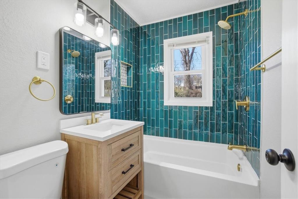 The main level features three bedrooms, a full bathroom, a bright kitchen, and two inviting living areas. Interior stairs lead to a basement, offering a third living space and two non-conforming bedrooms, a full bathroom, and a dedicated laundry area. Updates include stunning tile work, modern ceiling fans, fresh interior paint, and vinyl windows throughout.