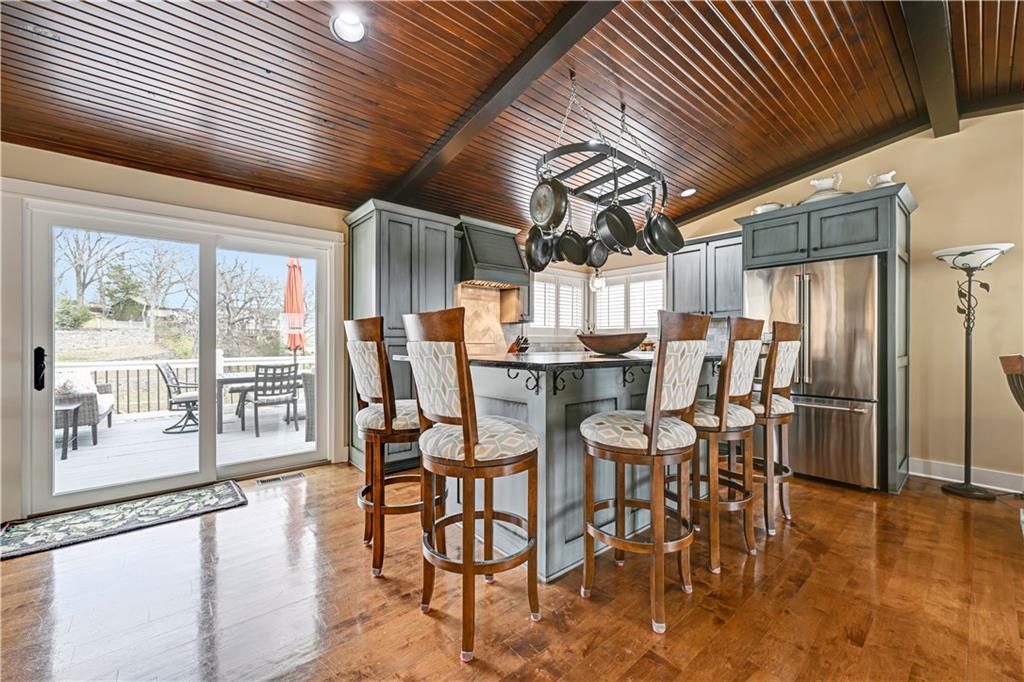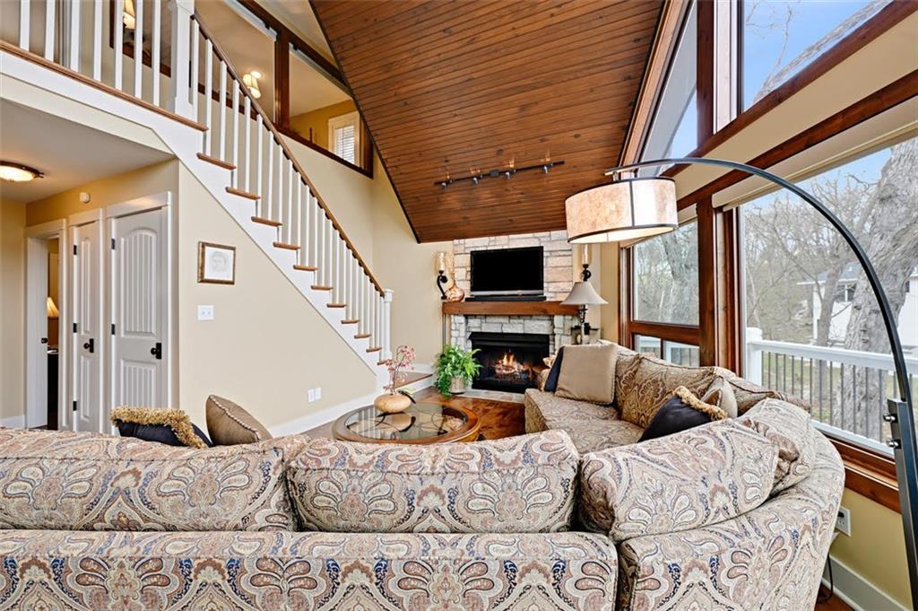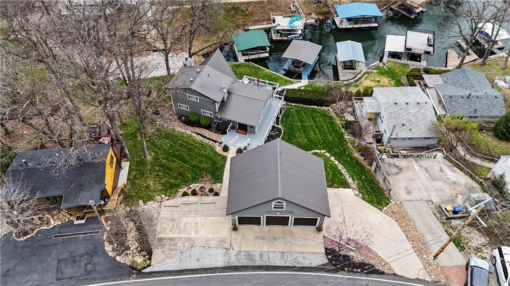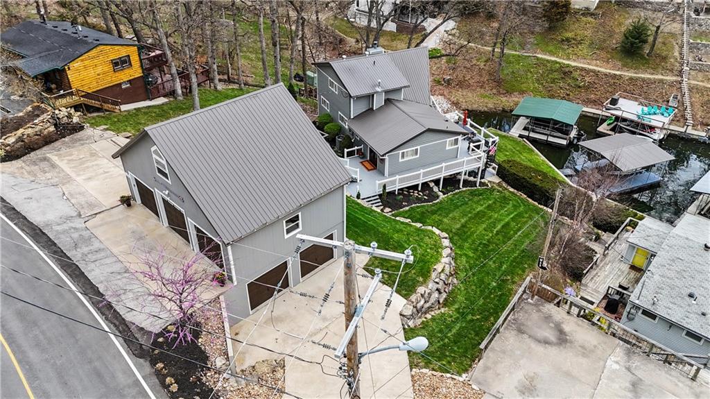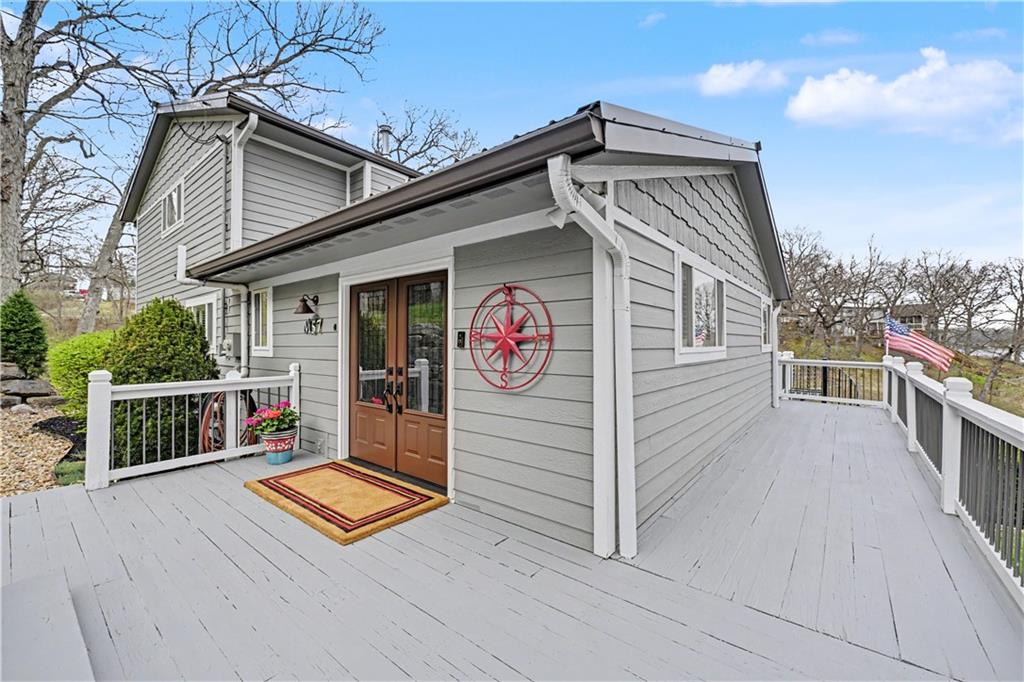Positioned in a prime setting inside Broken Arrow Cove, 57 M Street delivers the perfect blend of comfort, access, and true Lotawana lifestyle. This is easy lake living at its best—where calm mornings ease you into the day and afternoons turn into time well spent on the water or around the grill with friends. Inside, the home offers a chic cabin feel with a spacious, well-designed layout. Inviting living areas are filled with natural light, highlighted by vaulted warm wood cathedral ceilings and a seamless flow built for both everyday living and entertaining. Expansive windows pull the outdoors in, creating a constant connection to the lake. If storage is on your list—this one delivers. With 3 prime parking spots and a rare 5-car suspended slab garage with two separate entrances provides incredible space for vehicles, lake toys, and more. Above, a loft with sweeping lake views adds even more flexibility and function. The outdoor setup is where this property truly shines. With easy access to your dock, you’re just steps from jumping on the boat, tying up after a cruise, or spending the day swimming in the cove. Enjoy it all from the large wraparound deck or covered patio—both offering front-row views of sailboat races and regattas. This quiet cove offers the best of both worlds—peaceful surroundings with quick access to the main body of the lake. Whether you're kayaking calm waters or simply taking in the scenery, nature is always part of the experience. From owls at night to deer along the shoreline and the occasional bald eagle or blue heron passing through, it’s a setting that never gets old. With convenient access to Hwy 7 and 50, and located in the heart of the Lake Lotawana community, this isn’t just a home—it’s a lifestyle. Ample parking with three dedicated spaces provides plenty of room for guests. From lake days to community events and year-round enjoyment, 57 M Street is your opportunity to experience everything Lotawana has to offer.