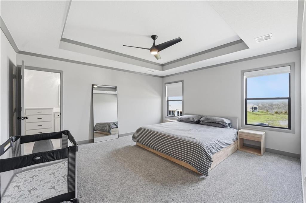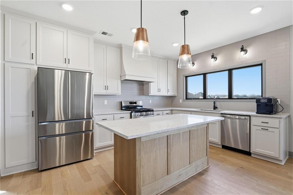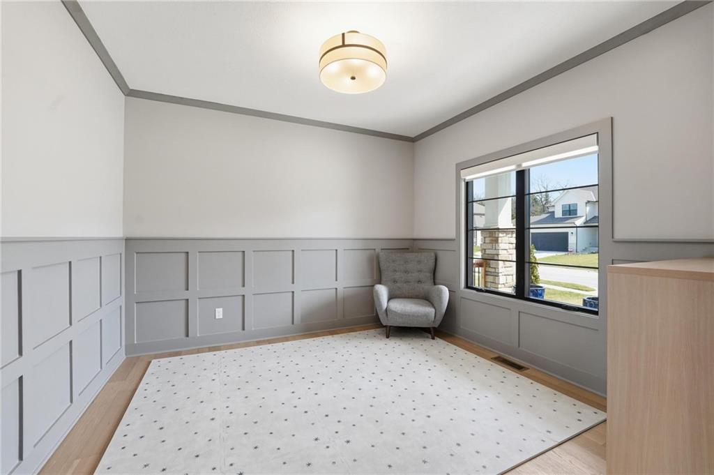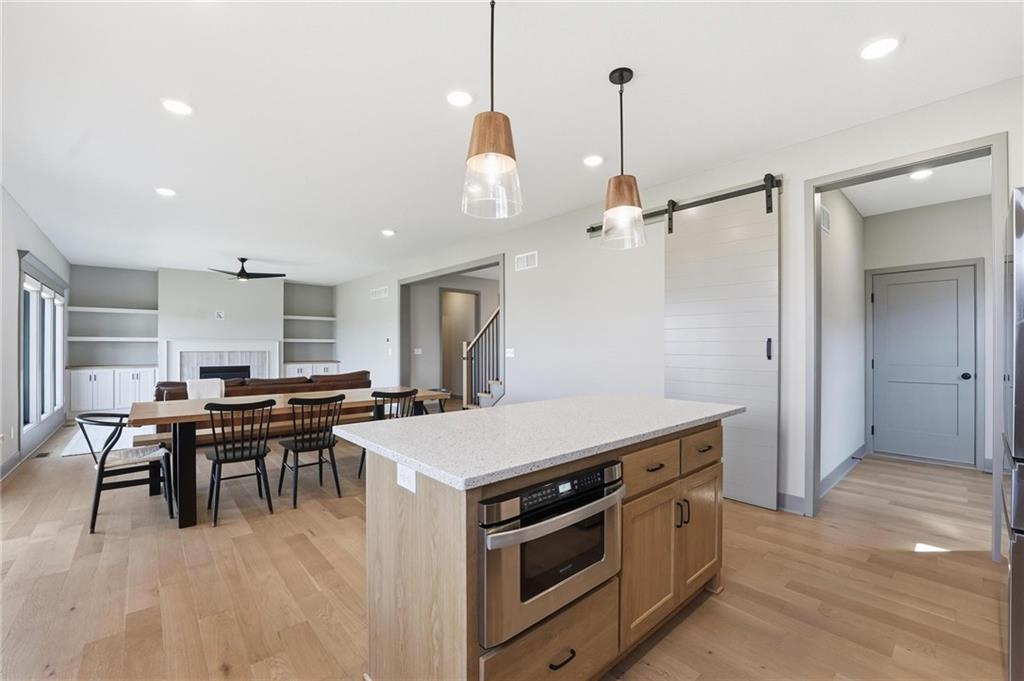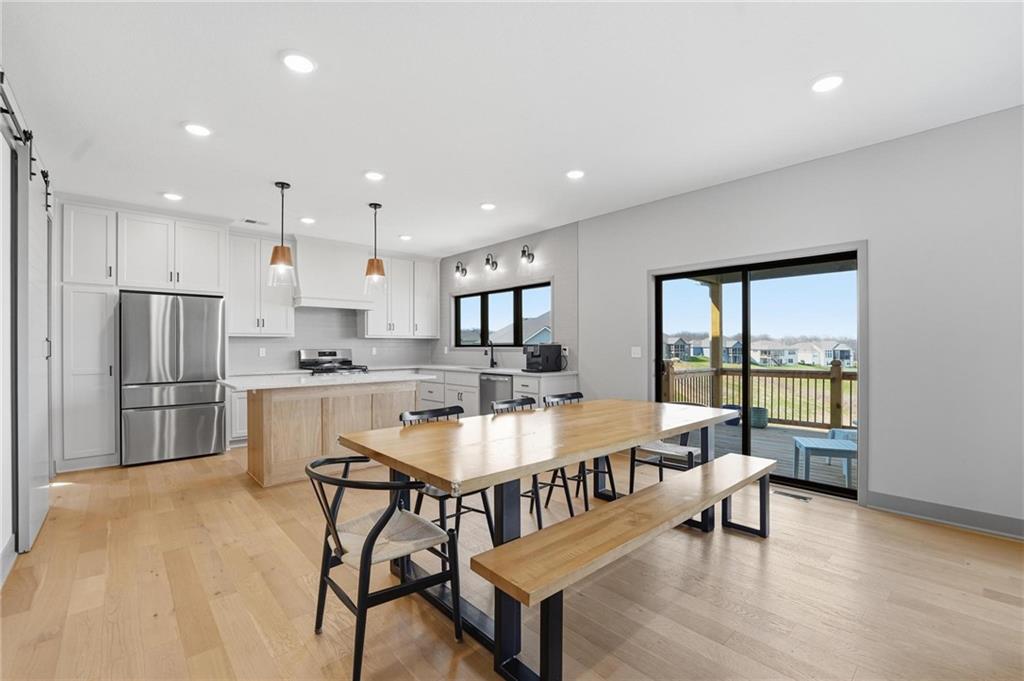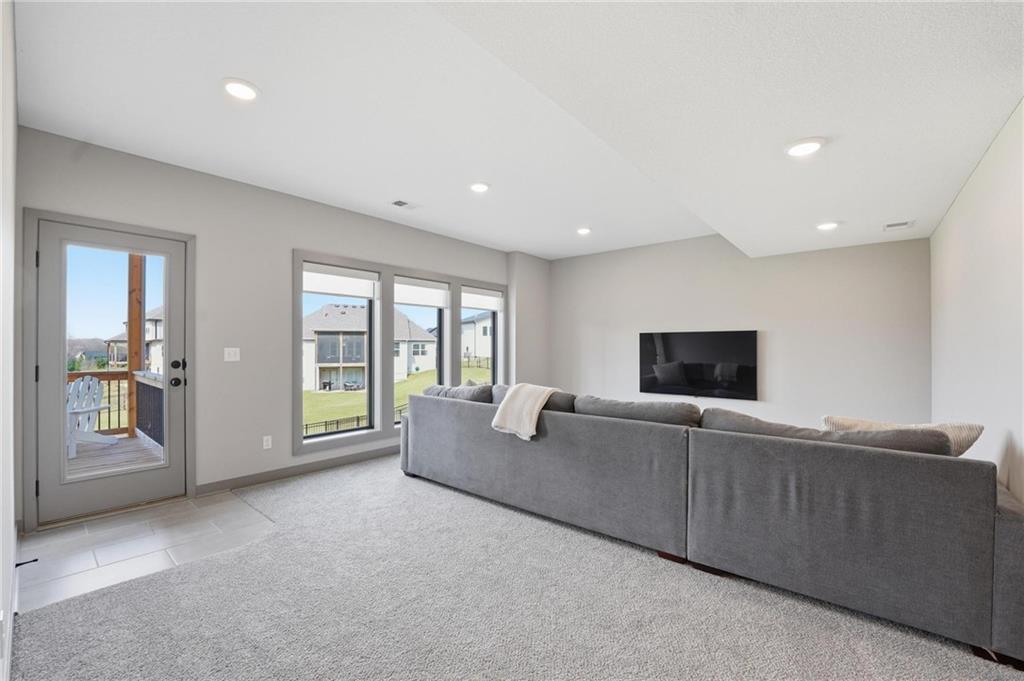 Step into this better-than-new home that just feels right the moment you walk in! The Sycamore by Hearthside Homes brings together clean design, warm finishes, and a layout that truly lives well. Sunlight fills the kitchen, highlighting the hardwood floors and drawing your eye to oversized windows at the sink. The island is ready for hosting, paired with quartz countertops, a statement range hood, and a walk-in pantry that keeps everything organized and within reach. The living room flows effortlessly from the kitchen, centered around a tiled fireplace with modern built-ins that add both style and function. Just off the main living space, the office makes working from home feel elevated with classic wainscoting that adds character and a polished look. The everyday entry from the garage is thoughtfully designed with a drop zone to keep life running smoothly. Step out from the dining area onto a two-level covered deck that overlooks greenspace, creating the perfect setup for relaxing evenings or hosting friends with a view. Irrigation system has already been installed. Upstairs, the primary suite feels like a private retreat with a walk-in shower, soaking tub, dual vanities, and a spacious walk-in closet. The walkout lower level adds even more versatility with a HUGE suspended garage for tons of storage, a fifth bedroom, full bath, and a large rec room ready for whatever you need. Located in unincorporated Platte County and served by Park Hill Schools, this community offers a pool, clubhouse, and walking trails that make it easy to enjoy where you live. Brand new fence! Window treatments have been installed as well as a humidifier. Nothing to do here except move right in!
