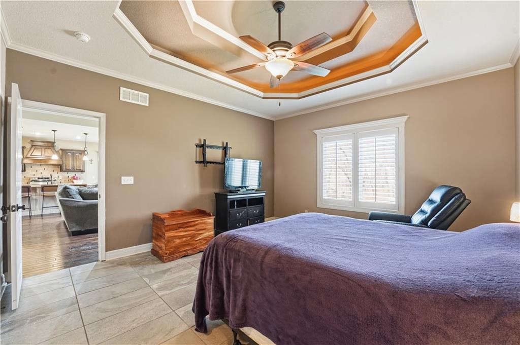 Tucked on a spacious lot backing to mature woods, this beautifully maintained reverse 1.5-story offers the privacy, comfort, and easy living today’s buyers are searching for. Imagine mornings on the covered deck with nothing but trees behind you, and evenings unwinding on the patio—this is indoor-outdoor living done right. The main level is designed for convenience and flow, featuring the primary suite and a second bedroom, along with two full baths—ideal for those wanting main-level living without compromise. The primary suite delivers a true retreat with granite countertops, dual sinks, a jetted tub, and separate shower. The kitchen is the heart of the home, complete with granite countertops, island, pantry, and upgraded stainless steel appliances that all stay—opening seamlessly into the dining and living areas, perfect for both everyday living and entertaining. High-end touches throughout include hand-scraped hardwood floors, plantation shutters, and upgraded carpet—giving the home a polished, move-in ready feel. The finished lower level expands your living space with a large rec area, granite-topped wet bar, two additional bedrooms, and a full bath—ideal for guests, hobbies, or hosting game day. With a sprinkler system, generous lot, and a “like new” feel thanks to numerous upgrades, this home offers the space, layout, and setting buyers rarely find all in one package.