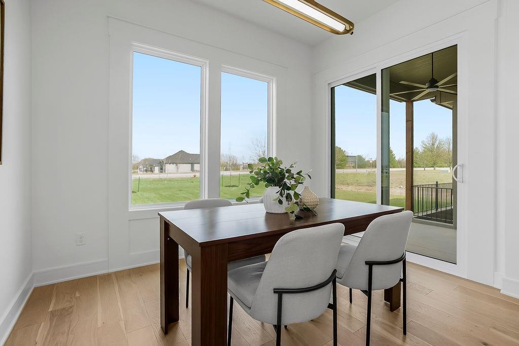 Welcome to Hoot Owl Acres—featuring this stunning model home with a durable, weather-resistant Tesla solar roof! The “Toby” plan by B & B Custom Homes offers a spacious open-concept layout designed for both everyday living and entertaining. The kitchen is a standout feature, complete with a large island, generous cabinetry, and a walk-in pantry. The main level features a split-bedroom design, providing a private primary suite with a beautifully tiled custom shower, private water closet, and convenient access from the walk-in closet directly to the laundry room. From there, you’ll flow seamlessly into the mudroom and garage entry—because real life needs smart design. Step outside to the covered patio—perfect for morning coffee or winding down in the evening. The finished lower level expands your living space with two additional bedrooms, a full bathroom, a spacious rec room, and a versatile bonus area ideal for a home gym, office, or game room. With thoughtful design, quality craftsmanship, and incredible value, this home truly delivers space where it matters most.