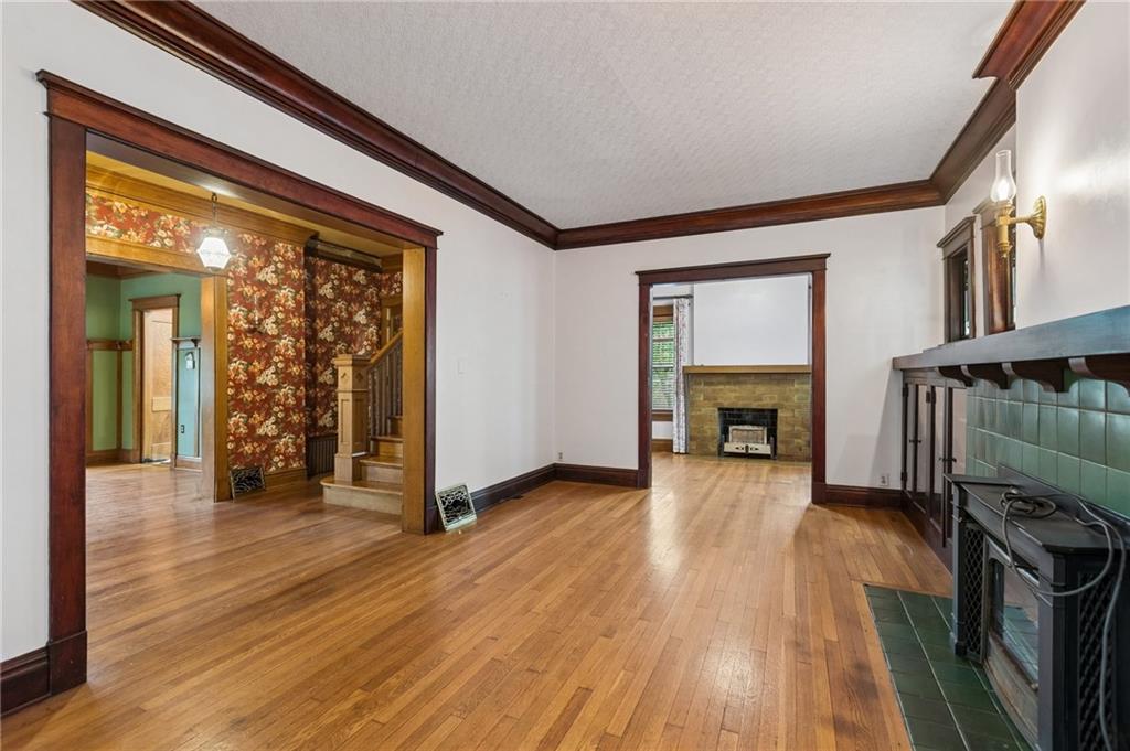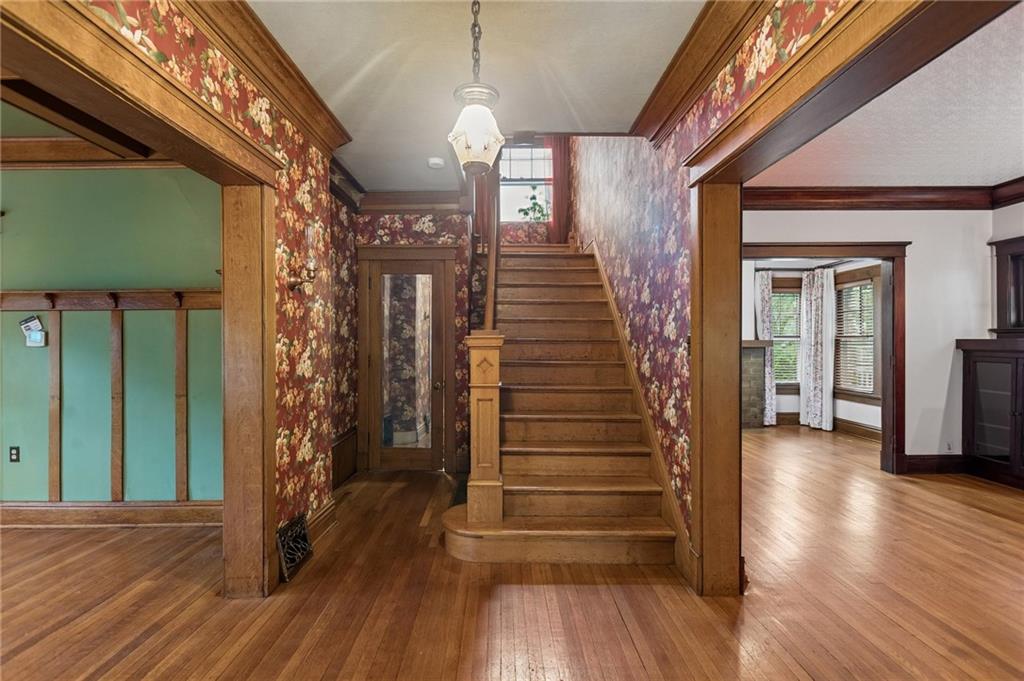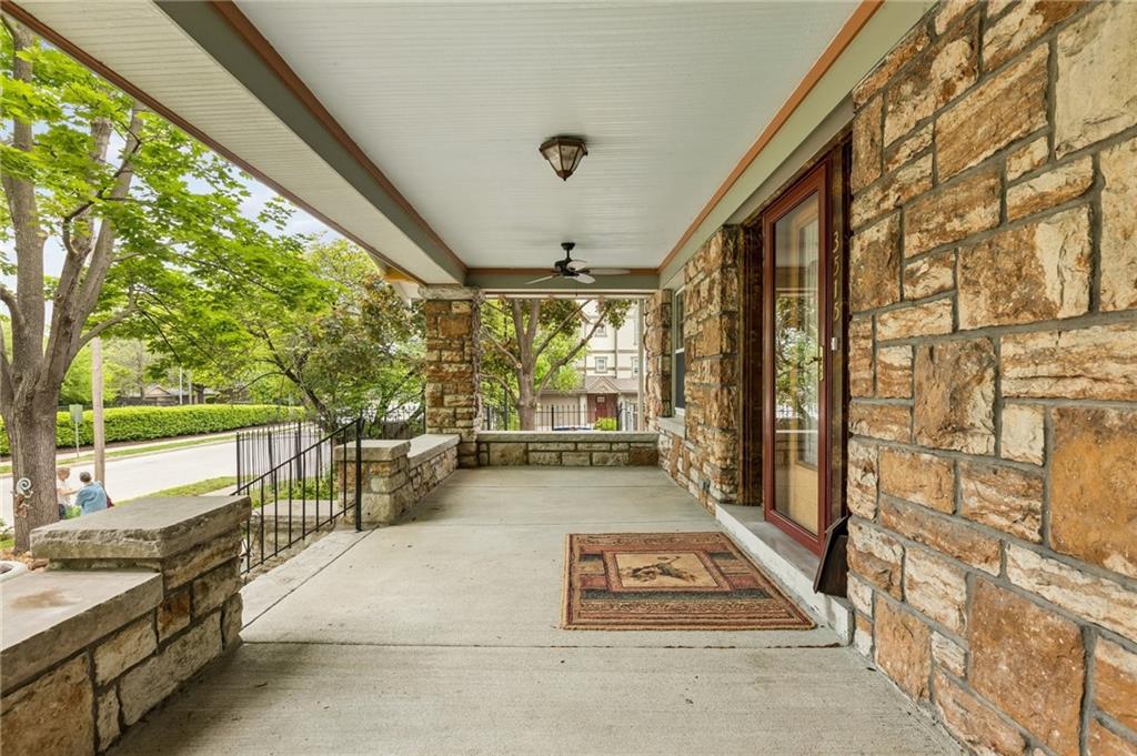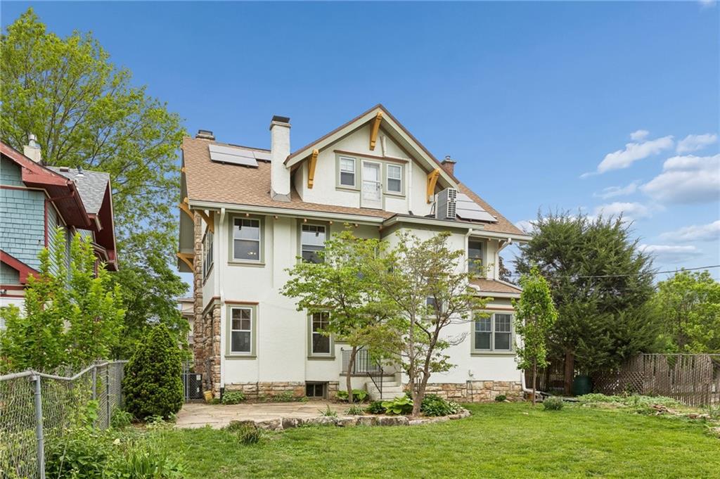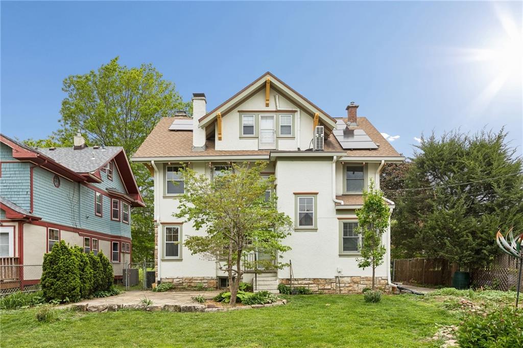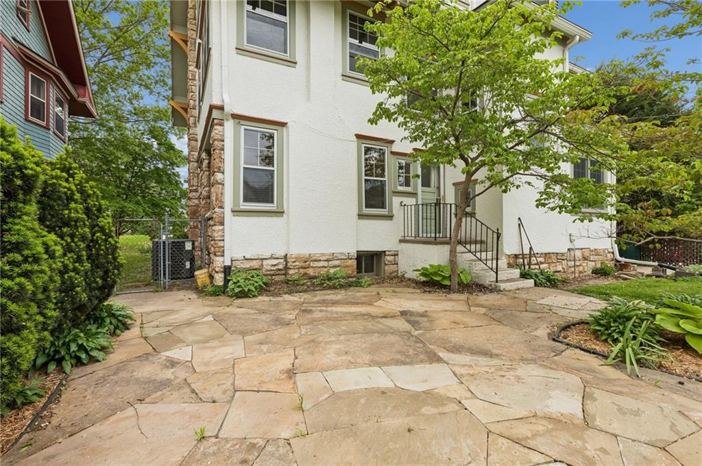 Own a piece of Kansas City history that has been transformed, yet preserved over the years. Current owners have brought this home back to life, saving the rich, beautiful quarter-sawn oak and mahogany woodwork in the home, the original stained glass windows and staying true to the Craftsman style of the 1900's in this Kansas City mid-town neighborhood. From the expansive front porch to the many gathering areas inside the home, you will find many spaces to connect with family and friends, converse around fireplaces, host family dinners in the formal dining room, work from home, enjoy hobbies, and even host short and long-staying guests in the third floor "apartment" complete with a dedicated kitchen, pantry, full bath, sitting area and two sunny bedrooms. Notable features include: a vestibule into the home with original tiled floors, two staircases adjoining the first and second floors, a very large primary bedroom w/fireplace, an updated main bath, three fireplaces, laundry conveniently located on the bedroom level and a half bath added on the first floor. Plenty of storage in the DRY basement that has space for a workshop area as well as a toilet & shower! The backyard is framed by the house and the detached garage with a flagstone patio for more outdoor gathering and gardening space. Many updates to the home's systems over the years make this an ideal home for lucky new owners. Don't forget about the streetcar that has a nearby stop, close to restaurants and coffee shops, making this corridor of the city one of the up and coming places to live!