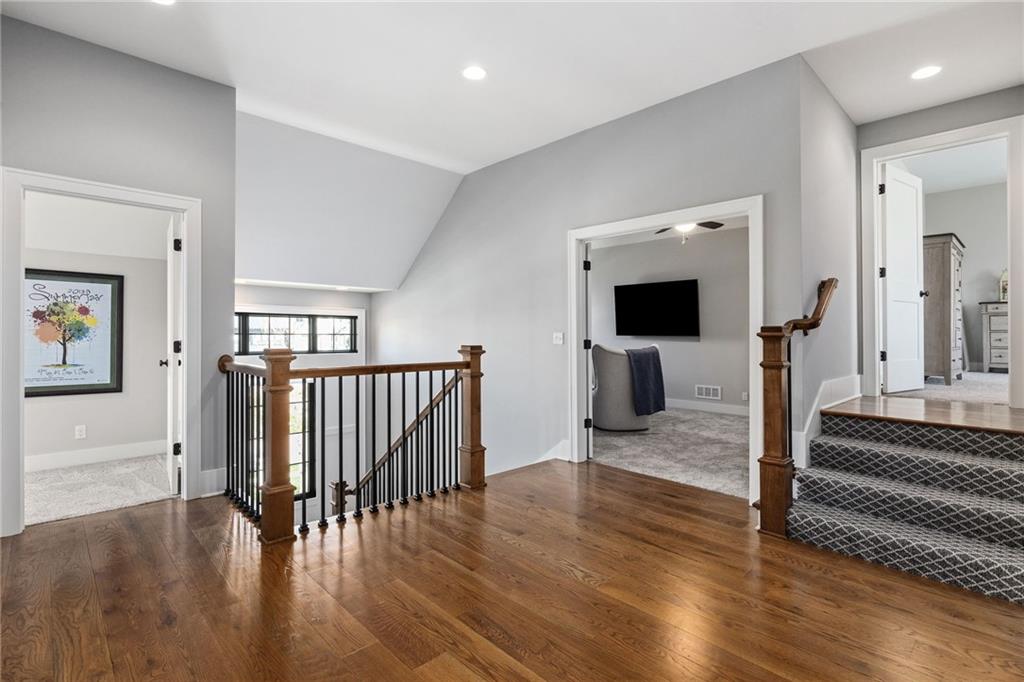 Your DREAM HOME in Mills Ranch in South Overland Park. This estate home offers a truly one-of-a-kind setting. Extensive landscaping ensures incredible privacy on the almost full acre lot adjoining greenspace—a rare find in a suburban neighborhood! Gorgeous 1.5 story home built in 2019 by Todd Hill Homes with high-end design & luxury finishes. Recent upgrades include ALL brand-new, top-of-the-line Pella windows, sliding doors, new carpet, & fresh designer wallpaper in the powder room & primary bedroom. The primary bedroom is a true retreat with ensuite bath featuring a deep soaker tub, & two walk-in closets recently upgraded with custom California Closets. The kitchen features beautiful white cabinets, oversized fridge, & walk-in pantry. Tucked away on this floor is a private office, a spacious laundry room, and a convenient mudroom (or "drop space") with built-in cabinets to hide all the day-to-day "stuff." Get ready to host—this house is perfect for entertaining! Enjoy seamless indoor/outdoor living with massive panoramic sliding doors off the living room. Step outside to the lanai with fireplace, terraced patio, & a top of the line 20x40 saltwater pool! It has all the bells and whistles: a lounge pad, water features, LED lighting—everything you could want! Upstairs, you'll find three spacious bedrooms, each with its own full bathroom. Also upstairs is a massive bonus room that you can use for anything—a second office, game room, or kids' playroom. Finished lower level includes two more bedrooms, 1.5 baths, a custom media wall, pool table area, & seating for everyone to catch the big games. The sleek wet bar features illuminated liquor shelves, a bev fridge, dishwasher, & marble bar that seats six. Don't miss the large, mirrored workout room. This is truly an extraordinary property that guarantees a lifestyle of absolute comfort and luxury. It sits on a quiet cul-de-sac surrounded by other exceptional homes. Don't miss out—schedule your private showing today!
