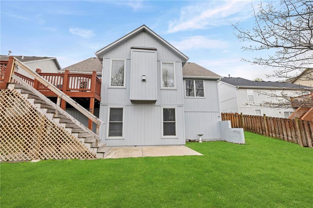 Welcome to this beautifully updated custom 1.5-story home in the highly sought-after Bridlewood Downs subdivision! With 4 bedrooms, 3.5 baths, and over 3,800 sq ft, this meticulously maintained home offers space, style, and functionality. You’ll love the eye-catching stone exterior, gleaming hardwood floors, fresh paint, and much more. The bright, open kitchen features hardwood floors, a large pantry, and abundant cabinet space—perfect for everyday living and entertaining. Step out onto the newly stained deck for morning coffee or evening BBQs. The main-floor primary suite offers comfort and convenience with double vanities, along with a well-equipped laundry room (washer, dryer, sink, and freezer included). The finished walk-out lower level is an entertainer’s dream—complete with a second kitchen, full bath, pool table area, and a versatile enclosed room ideal for a home theater, guest suite, or private retreat. Plus, enjoy plenty of additional storage space. Relax outdoors in the fully fenced backyard with a lower-level patio. A newer roof with upgraded Owens Corning Duration Storm Shingles adds peace of mind. Located within walking distance to Prairie Center Elementary, Mission Trail Middle School, and Olathe West High School, with quick access to shopping, dining, and Olathe Lake—this home truly has it all!