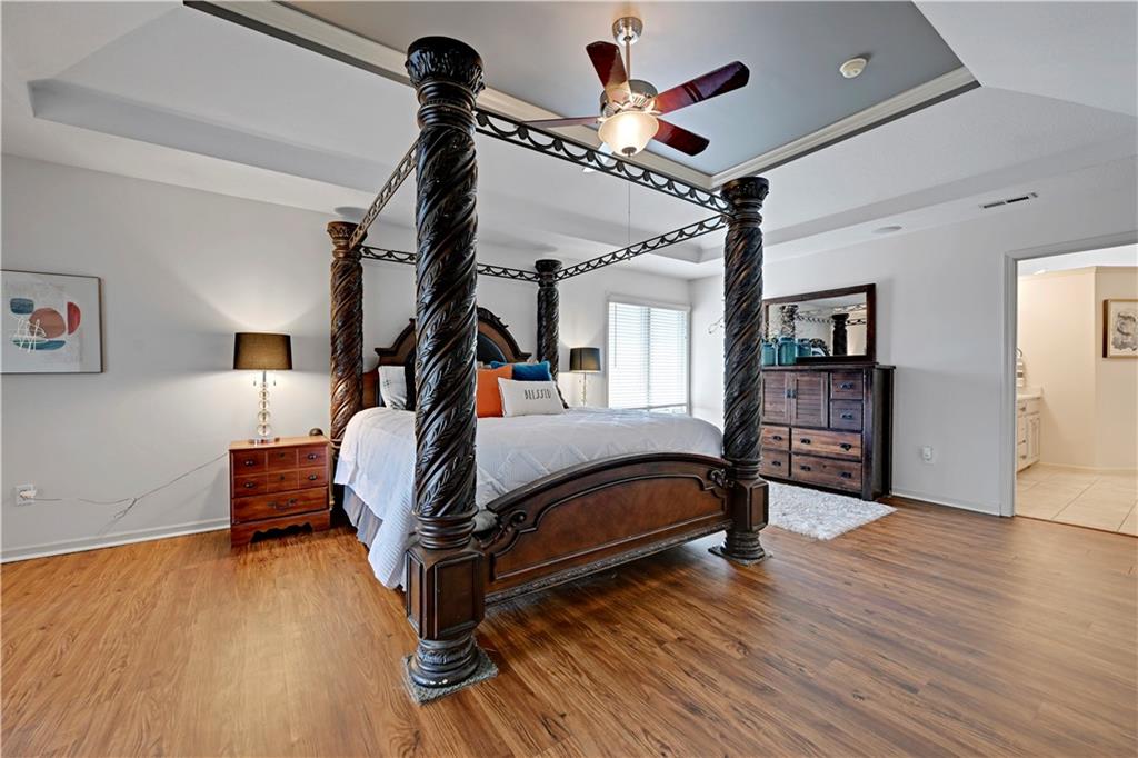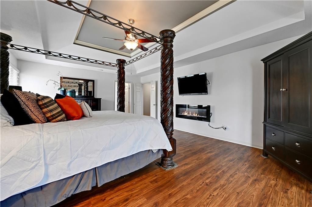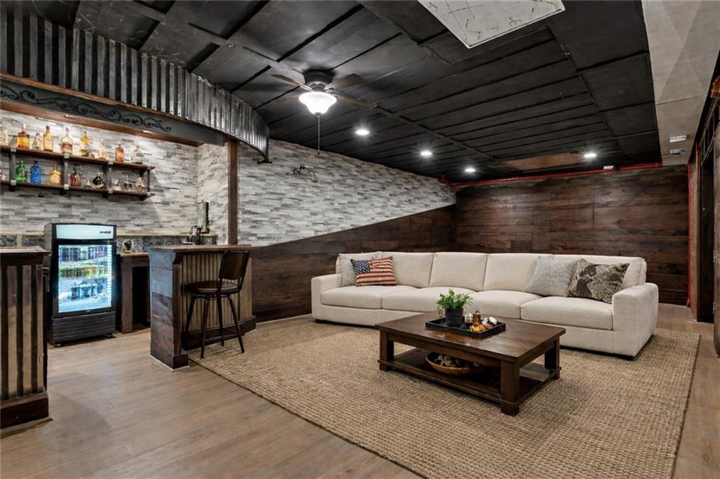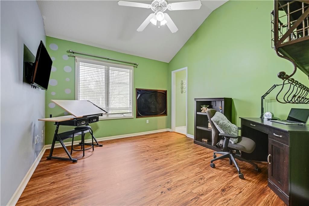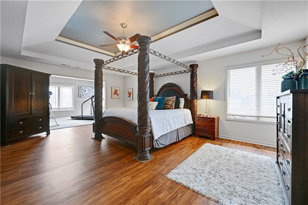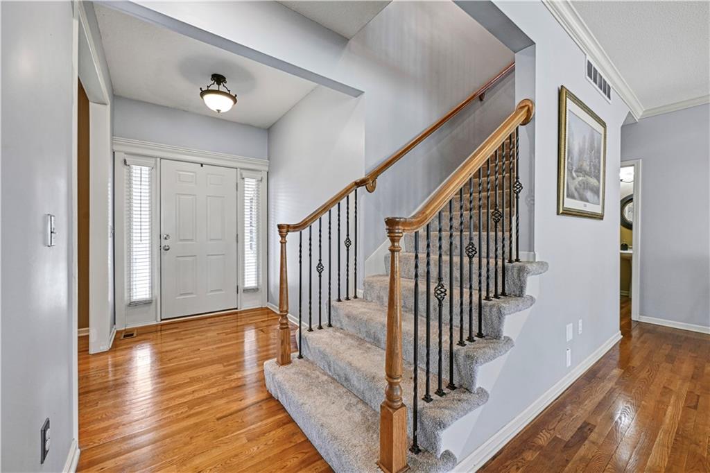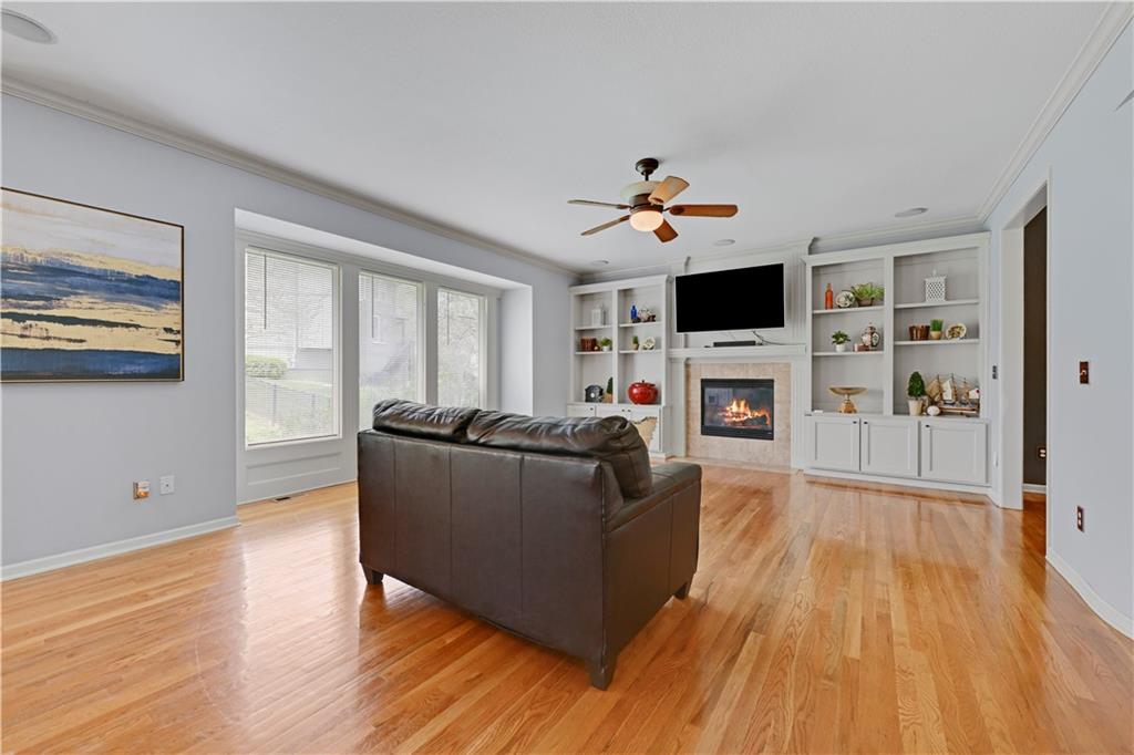 Welcome to this spacious, character-filled two-story home perfectly situated on a large corner cul-de-sac lot with a covered front porch. The wide-open main level features hardwood floors throughout and a layout that flows effortlessly. The great room is the showstopper with a cozy fireplace, custom built-ins, and a wall of windows overlooking the fenced backyard. The kitchen offers abundant cabinetry, stainless steel appliances, and a convenient breakfast bar. A formal dining room near the entry easily handles large gatherings, and an additional main-level office with built-ins adds flexibility. Upstairs, you’ll find four oversized bedrooms, each with bath access, including a standout primary suite with a private sitting room—perfect for a nursery, office, or workout space. The primary bath features a fantastic walk-in shower and a large walk-in closet. The cool finished lower level expands your living space with a family room, recreation area, and a character-filled bar, plus an egress window and bath stub, offering the option for a fifth bedroom and full bathroom. Plus, the built-in tv, frig in bar and sub wolver sound system all stay. Enjoy the outdoor living space with the covered patio overlooking the backyard that extends past the fence—perfect for relaxing or entertaining year-round. The oversized garage provides exceptional storage too. Major updates are already done for you with a 1-year-old roof and gutters and a 2-year-old AC and newer carpet giving peace of mind and added value. First floor laundry with utility sink and tons of lower level storage. Checks all the boxes—space, updates, location, and functionality—don’t miss it.