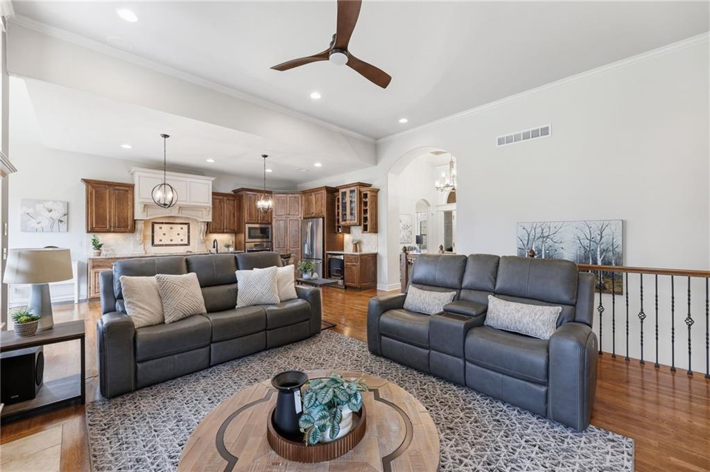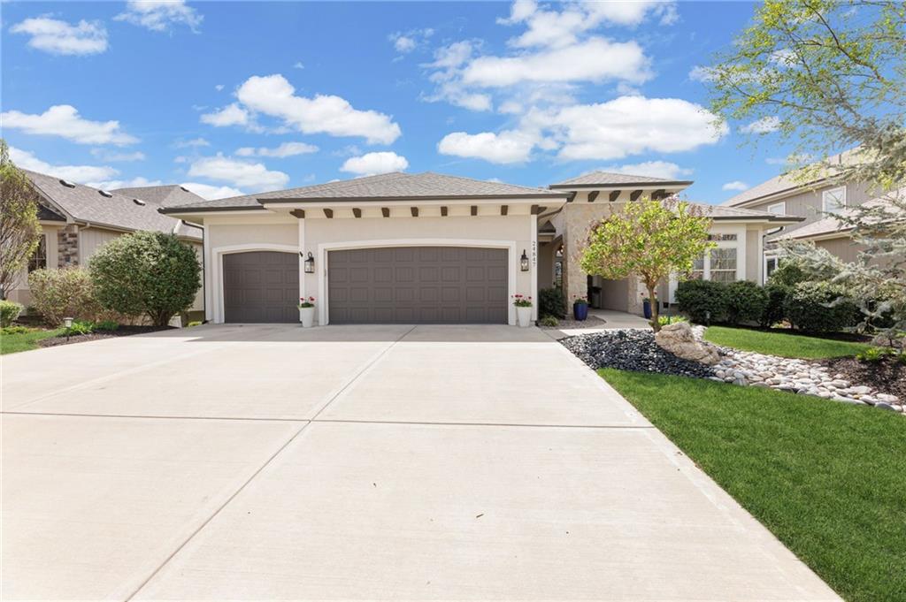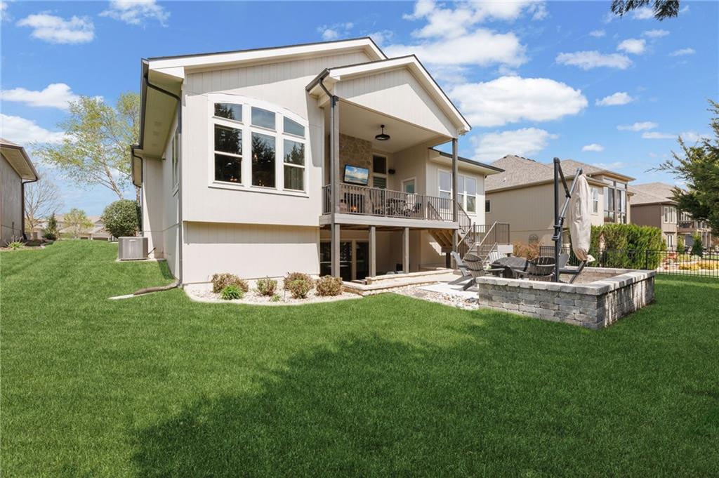 Welcome to this stunning former model home by James Engle Homes, showcasing the highly sought-after Emery reverse floor plan and loaded with gorgeous upgrades throughout. This beautifully designed 4-bedroom home offers the perfect blend of luxury and functionality. The main level features a spacious, light-filled great room with rich wood flooring and a striking see-through stone fireplace that extends to the covered, maintenance-free deck—creating a warm and inviting atmosphere both indoors and out. The gourmet kitchen is equally impressive, complete with granite countertops, double ovens, and a generous walk-in pantry, making it perfect for everyday living and entertaining. The luxurious primary suite offers a private retreat with dual vanities and a custom-tiled walk-in shower. The finished walkout/walkup lower level expands your living space with a large rec room, wet bar, two additional bedrooms, and a full bath—ideal for guests or entertaining. Step outside to enjoy exceptional outdoor living, including the covered deck with fireplace access and a beautifully designed stone patio with a fire pit, all backing to a serene tree line for added privacy. Additional highlights include a newer roof (just 2 years old) and access to fantastic neighborhood amenities, including a community pool. This home truly offers comfort, style, and convenience—don’t miss your opportunity to make it yours!