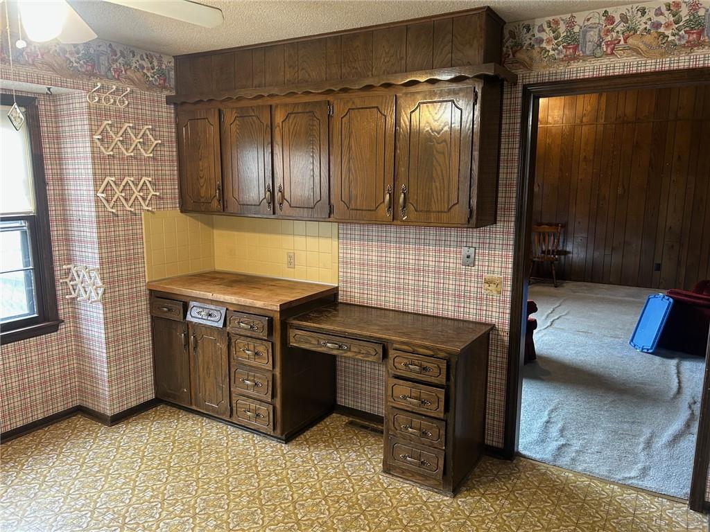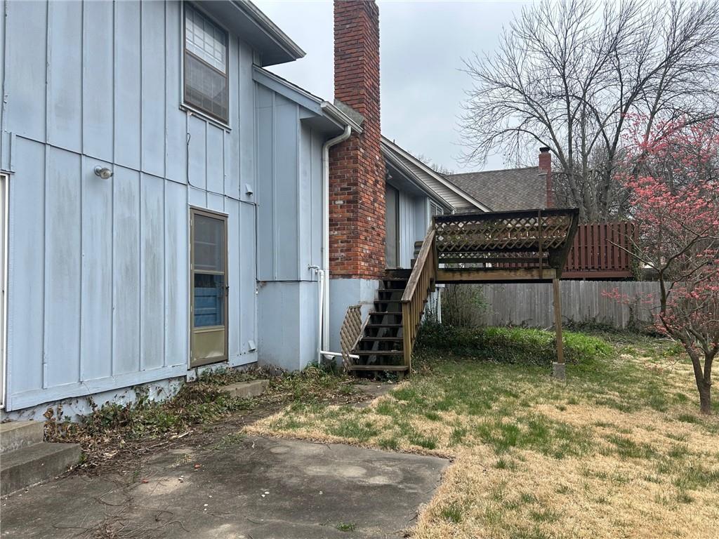 Great home in desirable Olathe School District. This home is larger than it looks! 3 living areas, large eat in kitchen + formal dining room and living room. 4 bedrooms and 2 baths upstairs. Large, vaulted family room with fireplace that walks out onto deck. large lower-level family room that walks out to patio. Extra wide garage with two doors and garage door openers. 5th room partially finished in the basement plus room for storage. Newer roof, HVAC, and water heater. Deck and Patio with partially fenced backyard. Home needs some love and is ready for a new family to update!