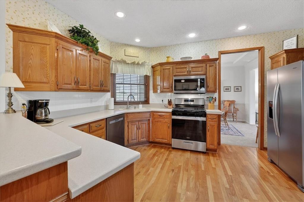 Wow! Talk about location and convenience! This meticulously maintained 2 story home is less than one mile from Blue Valley Northwest High School and Sports Complex, Scheels Soccer Complex, St. Andrews Golf Club, Tomahawk Creek walking & bike trail, and nearly endless options for shopping, dining and entertainment along the 135th Street Overland Park Corridor! This stunning home provides nearly 3300 feet of finished living space with 4 bedrooms and 3.5 baths, featuring an incredible primary suite with attached sitting room! The spacious kitchen features all new stainless steel appliances that are included with the home, including a new side-by-side refrigerator, a pantry and tons of storage, a built-in desk and convenient breakfast bar. The main level also offers a formal dining room, a bonus room that could be a home office or flex space, and a cozy family room with hardwoods, premium trim features and a fireplace.Downstairs there's also plenty of room to watch the big game, exercise, or entertain family and friends in the finished lower level that boasts new carpeting and custom built-ins. Ready to grill or just enjoy the evening? Step outside onto your shaded outdoor living area with a beautiful pergola. Besides the new appliances, updates include new carpet throughout the entire home, new ceiling fans, a new sump pump with battery backup, and a newer water heater. Neighborhood amenities include a community pool and walking trails. Don't miss out on your chance to own this stunning home so close to shopping, sports, dining and recreation in the heart of south Overland Park!