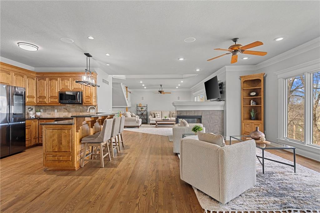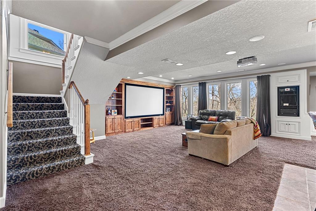This incredibly spacious 2-story home sits on a wonderfully private, treed lot that backs to wooded greenspace and parkland in sought-after Winterset Park. With 5 bedrooms, 4.5 baths and over 5000 SF of living space, inside or out you’ll never run out of ways to live life to the fullest no matter what your lifestyle needs may be. The main level offers both open spaces and cozy places that easily accommodate gatherings of any size. With stunning refinished hardwoods, a shared great room/hearth room fireplace, and walls of windows looking out over that beautiful, wooded backdrop, you’ll love the warm and inviting vibe throughout. Don’t forget to mosey on out to the composite deck among the trees! The current owners created an amazing mutli-level outdoor oasis when they fully replaced the old deck. Back inside, there’s also an office with private garage access making work life at home a breeze. And the gorgeous flex room that greets you when you step inside the front door makes for a perfect music room, formal dining room, private sitting room or whatever your heart desires. Upstairs, you’ll find a huge loft along with three generous guest rooms and 2 full guest baths. But the crown jewel is the primary suite. A true retreat with sitting room, 3 closets (yes, 3!), and an extraordinary spa-like bath with steam shower and soaker tub. Seriously, you may never leave! Want more? The finished walk-out lower level is the stuff that dreams are made of. This is no DIYers finish! Incredible wet bar, huge family room, media room, wine cellar, area for game table and workout equipment, plus a conforming 5th bedroom and fantastic 4th full bath. This will quickly become the place where everyone wants to hang out! Then step out to the covered lower-level dry deck and your relaxing hot tub. And the oversized 3-car garage with epoxied floor is the perfect place for all your toys. Now you’re living the sweet life!
