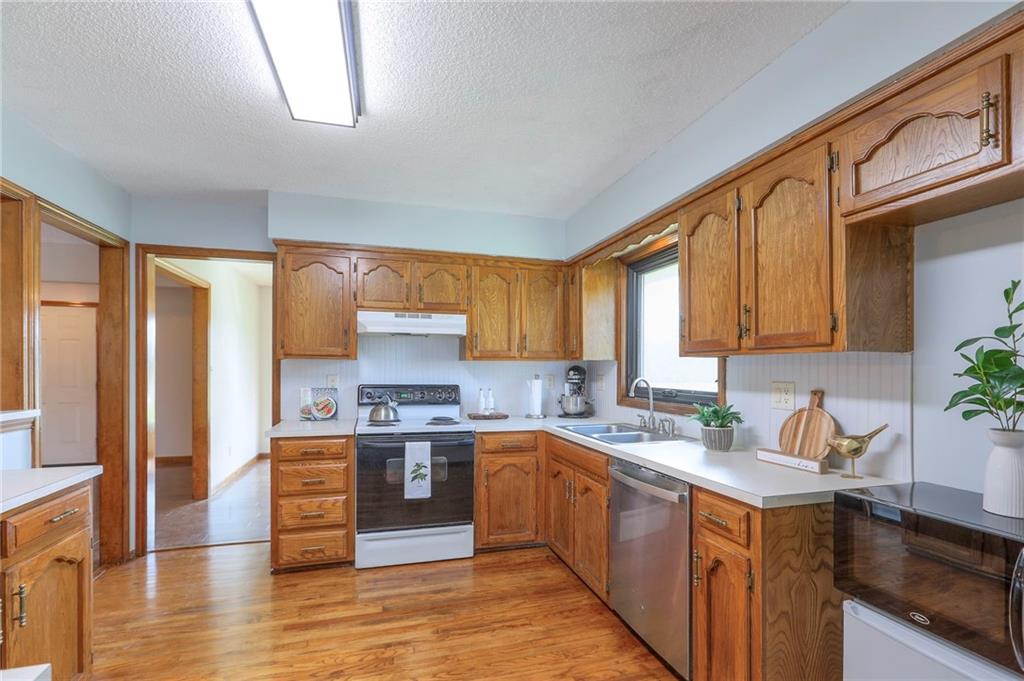 Situated on 4.28 acres, this versatile property offers beautiful outdoor features and plenty of space to enjoy country living. The large stocked pond with dock is perfect for relaxing or fishing, and the 35 x 40 outbuilding includes a new roof, office space, concrete floor, and electricity — ideal for a workshop, storage, or hobbies. Inside, the home features an open floor plan with plenty of room to spread out. The main level includes a formal dining room, living room with fireplace, kitchen, and a large family room that opens to a spacious new deck. Bedrooms and bathrooms on the main level have been recently updated, and there is a convenient main-level laundry room. All windows were replaced in 2019. The finished walkout lower level provides even more living space, including a large family room, second laundry room, and garage access. Two large non-conforming bedrooms downstairs offer great flexibility for guests, office space, or hobby rooms. With generous indoor and outdoor living space, this property offers room to live, work, and play — all in one place. Buyers and buyer's agent to confirm taxes, room sizes, all information and school districts. Professional photos coming 4/2