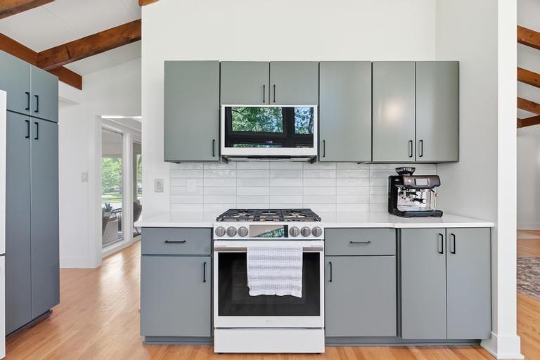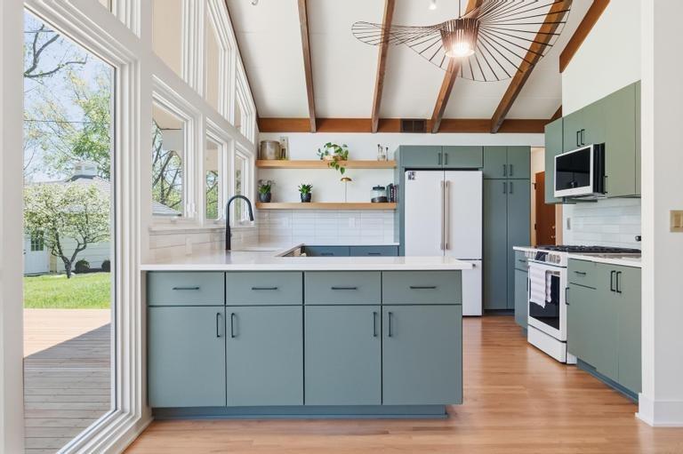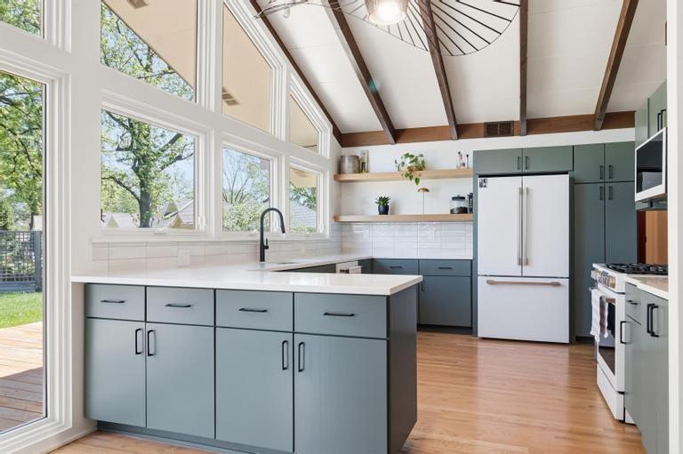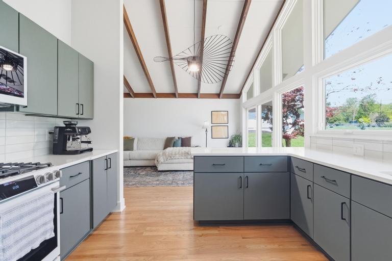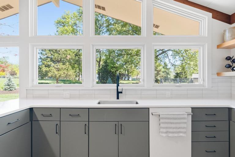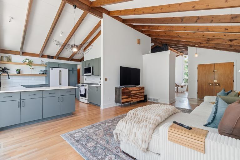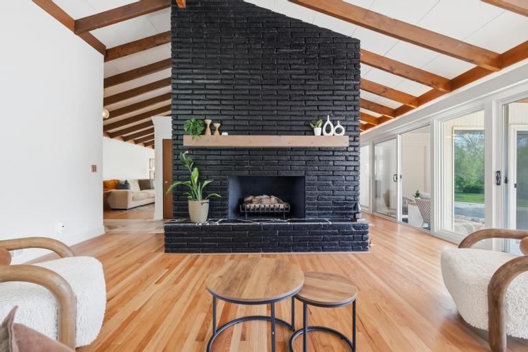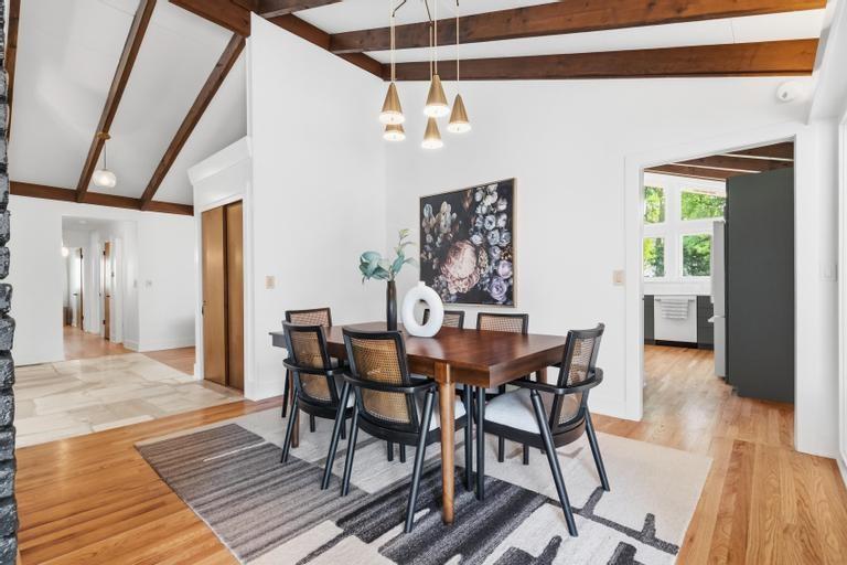 This completely renovated mid-century modern has been reimagined for today while keeping all of the architectural character that made it special to begin with. Vaulted ceilings with exposed beams, walls of glass, and sunlight that pours in from every angle—it feels more like a retreat than a house. The layout flows effortlessly from one space to the next, with multiple living areas that each bring their own vibe… cozy fireside nights, slow mornings in the sunroom, coffee with a view, or hosting a full table without feeling crowded. The kitchen keeps it clean and current with a fresh, modern palette, open shelving, and sightlines that make it feel connected but not chaotic. And then there’s the dining space—framed by architectural ceilings and natural light—where even takeout somehow feels like an occasion. Every corner of this home was designed to bring the outside in. Oversized windows, sliding glass doors, and that bright, airy sunroom create a constant connection to the surrounding greenery. It’s exactly what people mean when they say they want something that “feels different.” Set in the heart of Leawood, this one stands out in all the right ways—architecturally interesting, move-in ready, and anything but cookie cutter.
