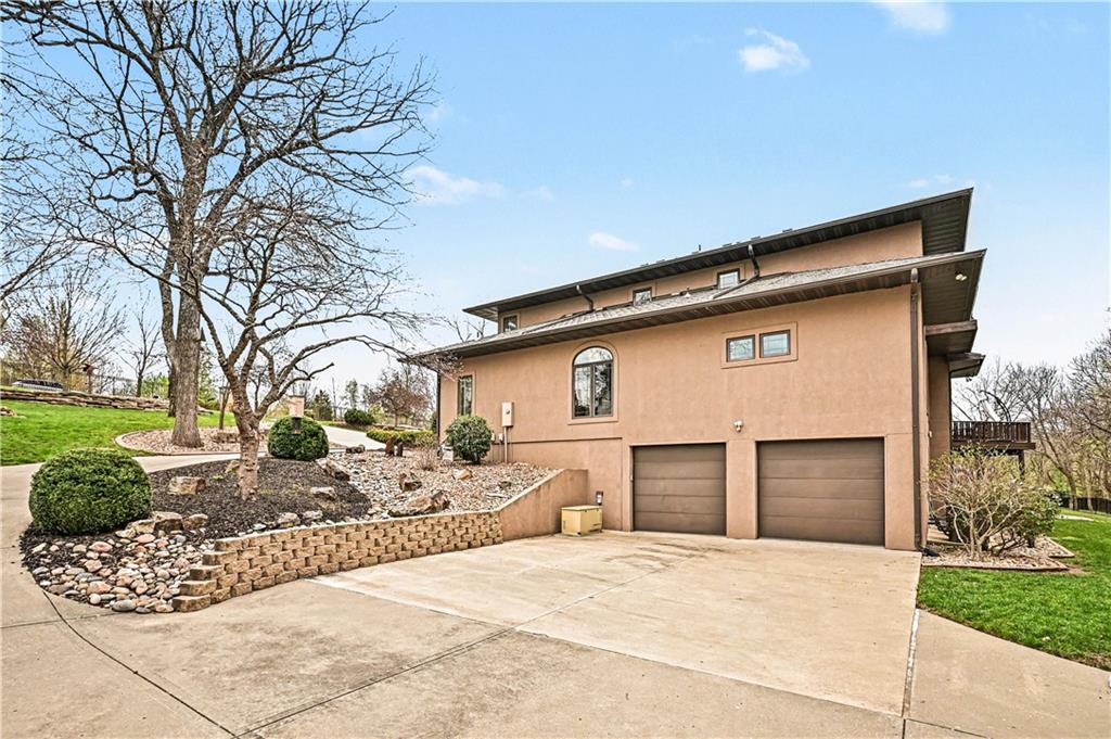 Private 1.72-Acre Multi-Generational Estate with Elevator. Welcome to a rare opportunity to own a custom-built estate offering over 8,000 square feet of living space on 1.72 beautifully maintained acreage. Located in prime Blue Springs location—just minutes from Lake Jacomo and scenic walking trails. Surrounded by mature, manicured trees, this property offers exceptional privacy and a peaceful natural setting, with frequent deer and wildlife sightings enhancing the sense of retreat. The backyard has been enhanced with approximately one acre of cleared wooded space, complete with a fire pit area and a seasonal creek that comes to life after rainfall—creating a serene and ever-changing outdoor environment. Built with quality in mind, the home features durable 2x6 exterior wall construction and has been meticulously maintained, with major system updates already completed. Designed for true multi-generational living, the home includes a private upstairs en-suite accessible by elevator—ideal for aging parents, extended family, or guests seeking both comfort and independence. Three additional bedrooms, two full baths, and laundry room are located on second level. The main level offers expansive living and entertaining areas, while the lower level is built for enjoyment with a private theater room seating and Sauna. Primary ensuite is located on main level with office and a 2nd full bedroom and bath. Recent updates include roof, HVAC systems, water heaters, and a water softener—providing peace of mind for years to come. While the home offers an opportunity to update finishes to your personal style, the structure, systems, and layout create an exceptional foundation for customization. Enjoy the freedom of no HOA restrictions, combined with acreage, privacy, and nearby outdoor recreation. Pure perfection! A truly unique estate offering space, privacy, multi-generational functionality, and a serene natural setting in one of Blue Springs’ most desirable locations.