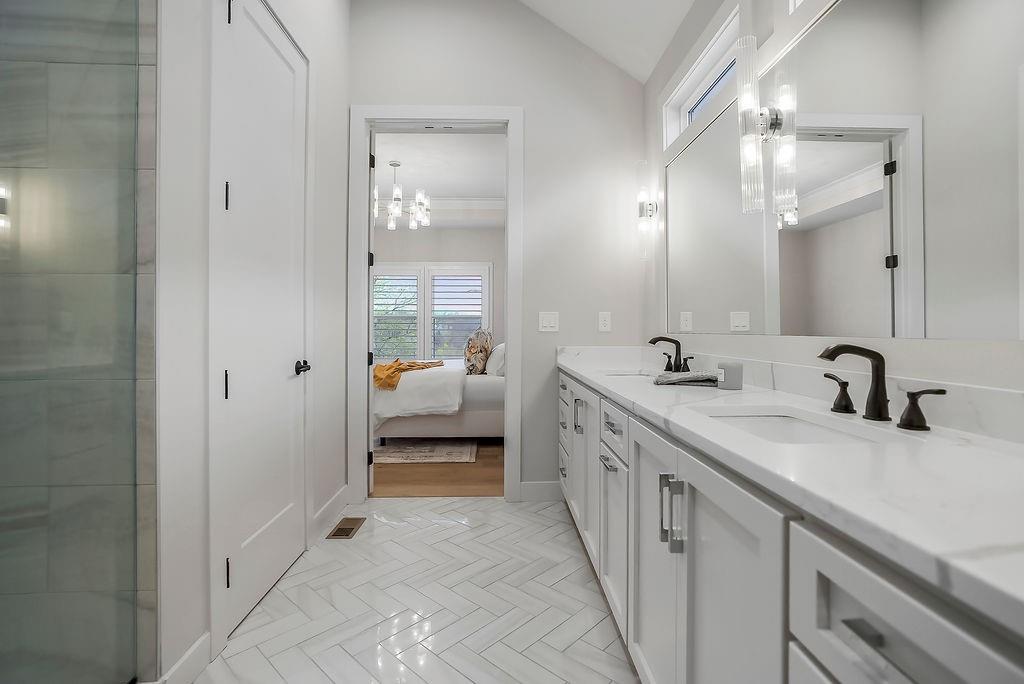Like New and perfectly positioned on a premium lot backing to the award-winning Shadow Glen Golf Course, this stunning reverse 1.5-story home offers the ideal blend of luxury, comfort, and thoughtful design. With 5 bedrooms and 4 full baths, this home is crafted with beautiful details throughout. The main level features a spacious primary suite with a spa-like feel, complete with a walk-in closet that conveniently connects to the laundry room. Two additional bedrooms are located on the main level, including one with its own private bath—perfect for guests or a home office. The heart of the home showcases a large quartz-topped island, expansive pantry, and open living spaces designed for both everyday living and entertaining. The walkout lower level is an entertainer’s dream, featuring a full bar area, generous recreation room, plus two additional bedrooms and a full bath. You’ll also find two separate storage areas, including a storm shelter for added peace of mind. Step outside to take in sweeping golf course views overlooking Hole #5, creating a serene and picturesque backdrop. Whether hosting gatherings or enjoying a quiet evening at home, this property offers the perfect setting. Welcome home.