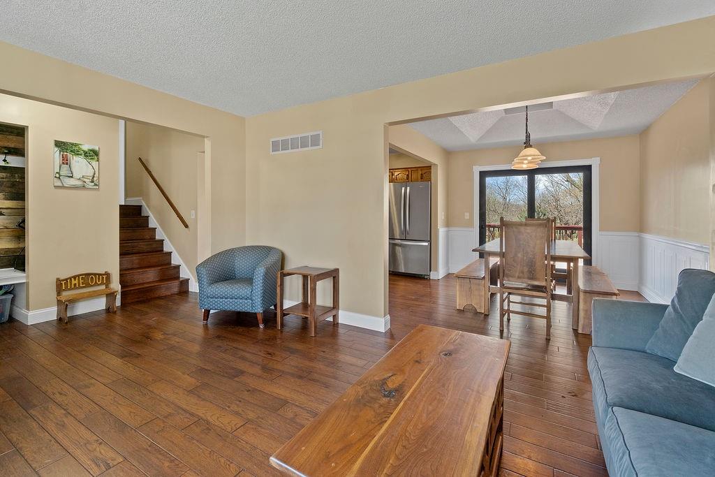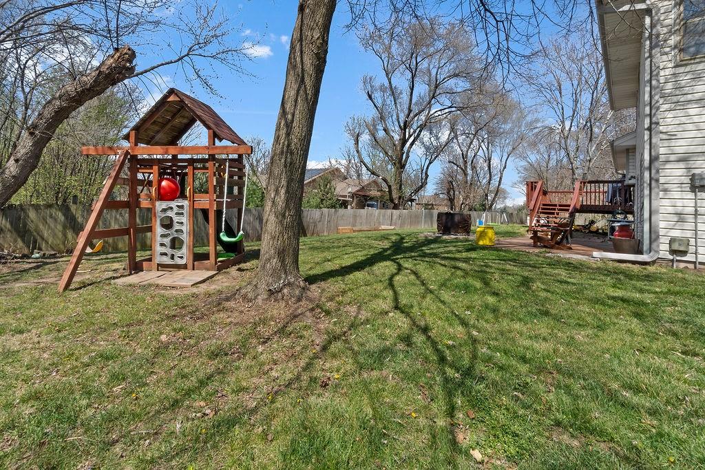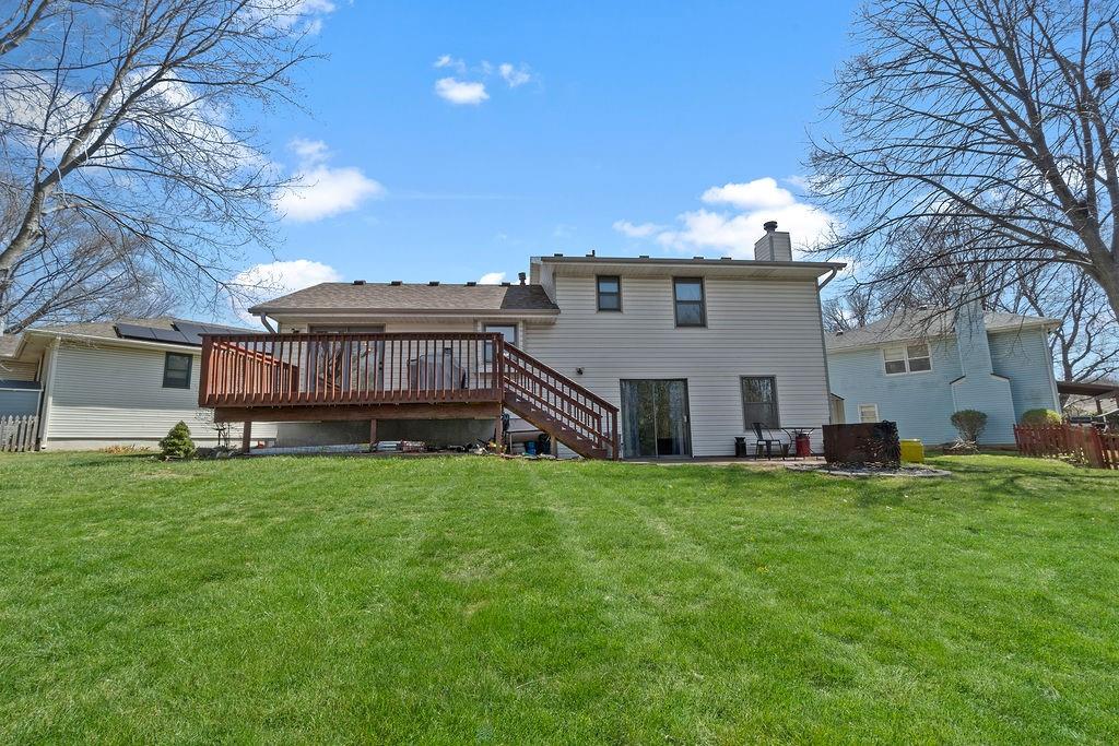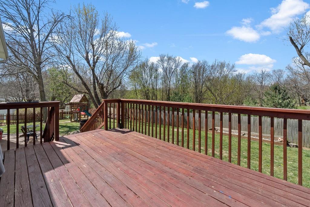 Charming home in Blue Springs on a cul-de-sac. Hardwood floors throughout the main living areas with carpet in the bedrooms. The primary bedroom features its own bath with a shower, along with an additional half bath for guests. The basement offers extra space for storage. Home also features a spacious 2-car garage. Out back, enjoy a large yard with a deck, perfect for relaxing or entertaining.