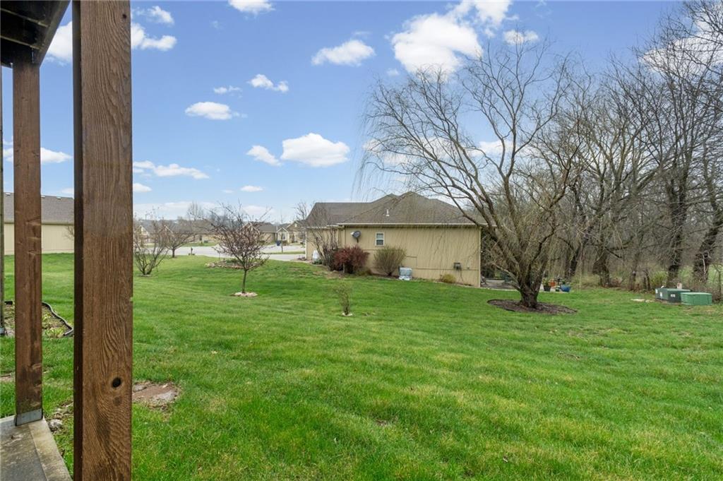 DON’T MISS OUT on this beautifully maintained, maintenance-free ranch in the highly sought-after Ashmont community in Smithville! Situated on a very private walk-out lot backing to trees and green space, this home offers both tranquility and convenience with a flat driveway and level yard. Step inside and feel instantly at home with the open floor plan, hardwood floors, vaulted ceilings, and abundant natural light. This move-in-ready home features true main-level living with everything you need on one floor, including a spacious family room, a large kitchen, and laundry conveniently located just off the kitchen. Enjoy outdoor living on the expansive deck right off the kitchen, perfect for relaxing or entertaining. The primary suite offers a private retreat with a large en-suite bathroom and an oversized walk-in closet. A generously sized second bedroom and full bathroom complete the main level. The walk-out basement provides an impressive amount of additional living space, featuring a huge rec room, a third bedroom, and a third full bathroom, ideal for guests or extended living. You’ll also appreciate the ample storage with two separate storage rooms. Located in a wonderful maintenance-provided community on the south side of Smithville, this home offers easy access to shopping, dining, Smithville Lake, KCI Airport, and is just a short 20-minute drive to downtown Kansas City. This one truly has it all, A MUST SEE!