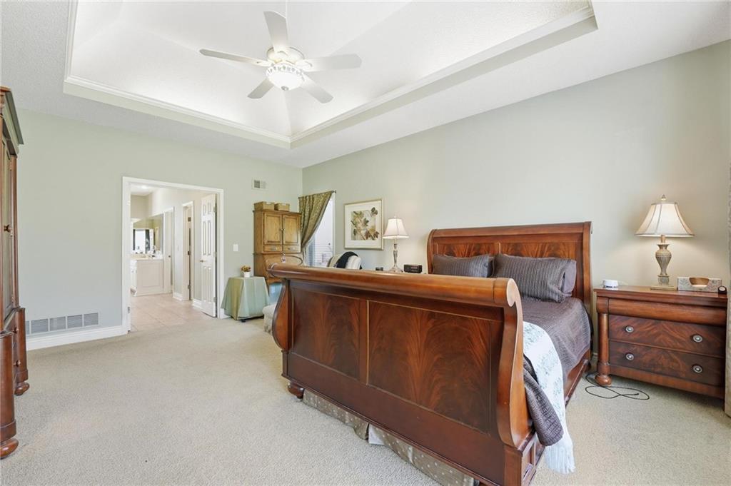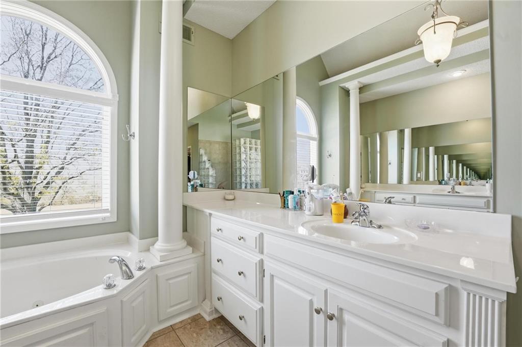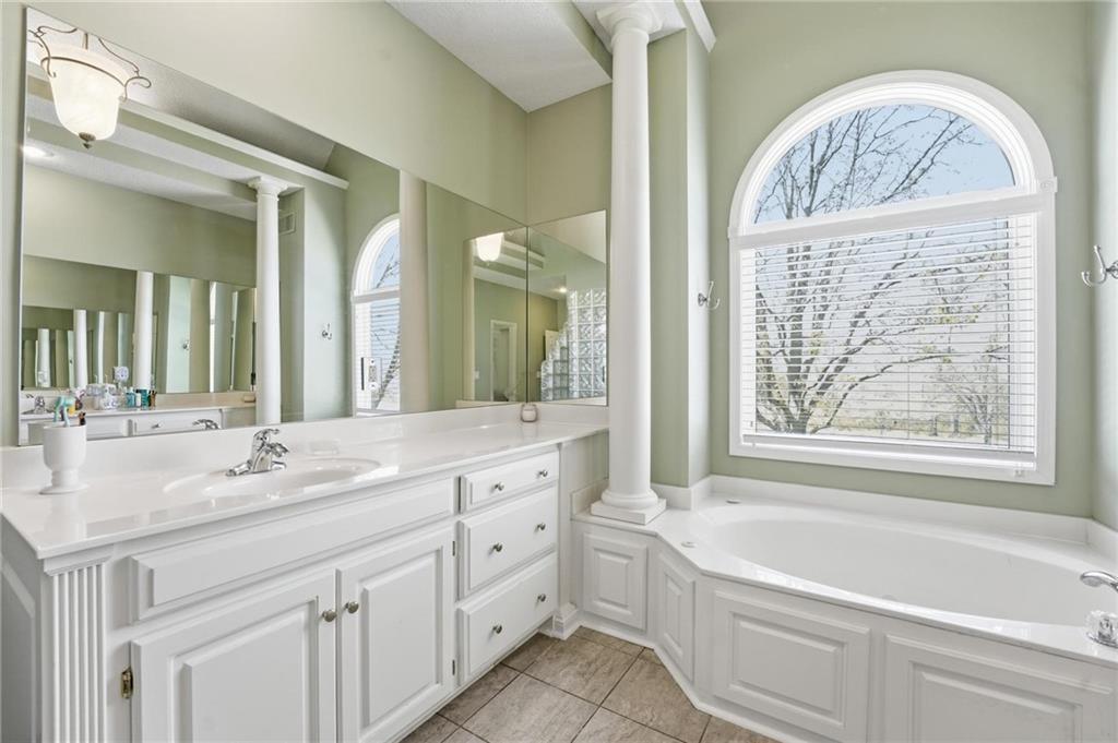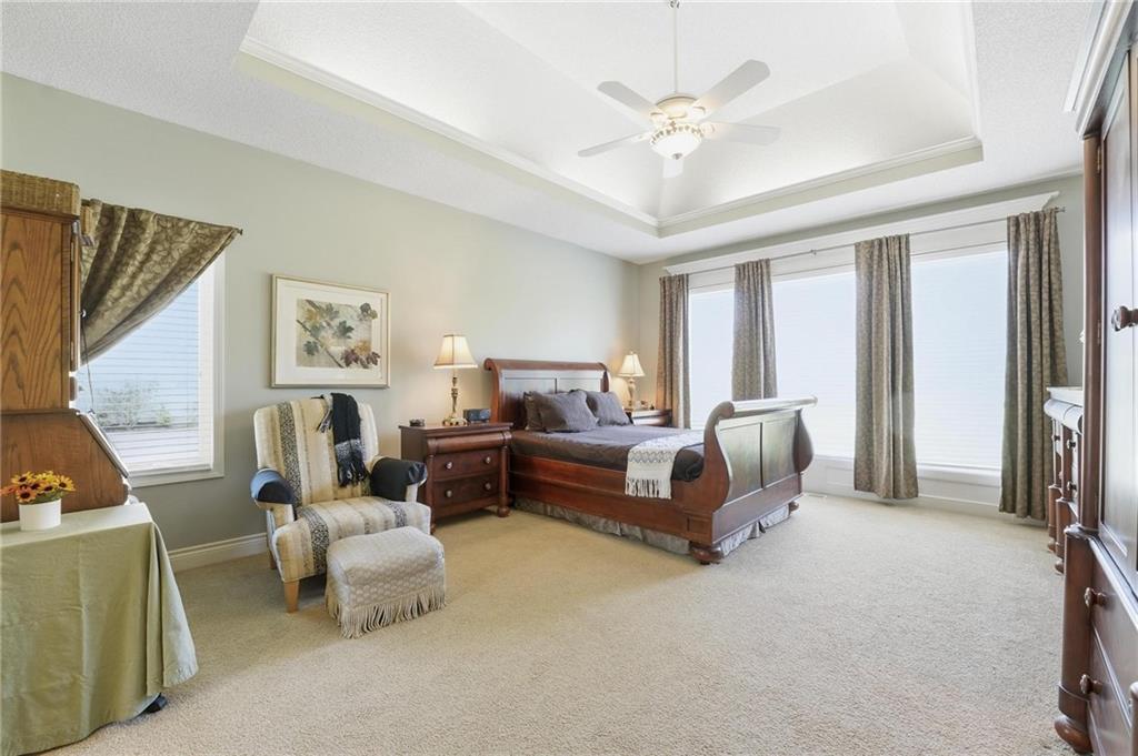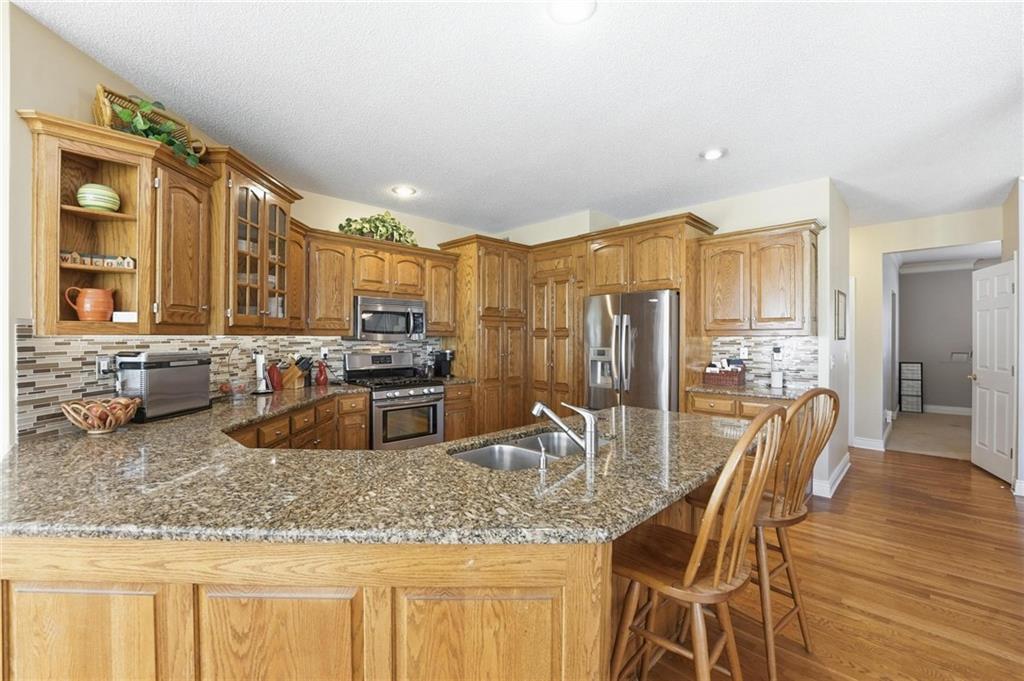 Timeless classic 1.5-story with over 4,800 sf in prestigious Longview Farm Estates, perfectly positioned on over a half-acre cul-de-sac lot. This beautifully designed 5 bedroom, 4.1 bath home features a dramatic great room with soaring 18-foot ceilings and a wall of floor-to-ceiling windows that flood the space with natural light. The open layout seamlessly connects to a well-appointed kitchen showcasing granite countertops, breakfast bar seating, stainless steel appliances, gas range, roll-out cabinetry, and a walk-in pantry. Enjoy both a spacious eat-in kitchen and formal dining room—ideal for everyday living and effortless entertaining. The main-level primary suite offers a private retreat with dual vanities, jetted tub, separate shower, and a generous walk-in closet. Upstairs, you’ll find a versatile loft along with three generously sized bedrooms and two full baths, providing comfortable and flexible living space for family, guests, or work-from-home needs.. The finished lower level is a standout, featuring a 5th true bedroom, full bath, expansive family room with bar, and dedicated theatre room—perfect for hosting, relaxing, or multi-generational living. A 4 car garage with handy work area. Just minutes from Longview Lake, Longview Rec Center, Longview Community college and multiple dining opportunities.