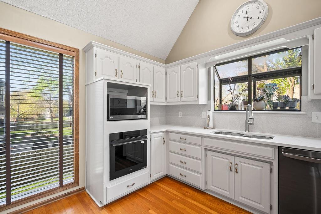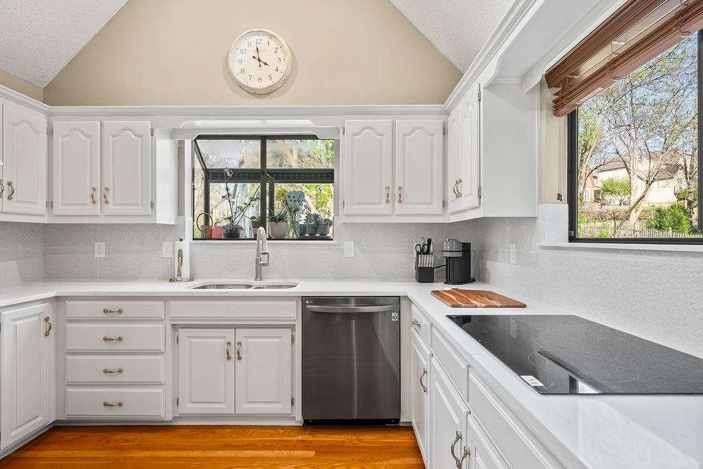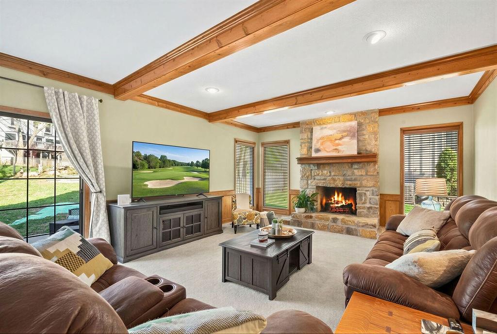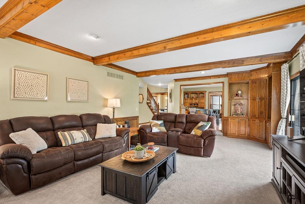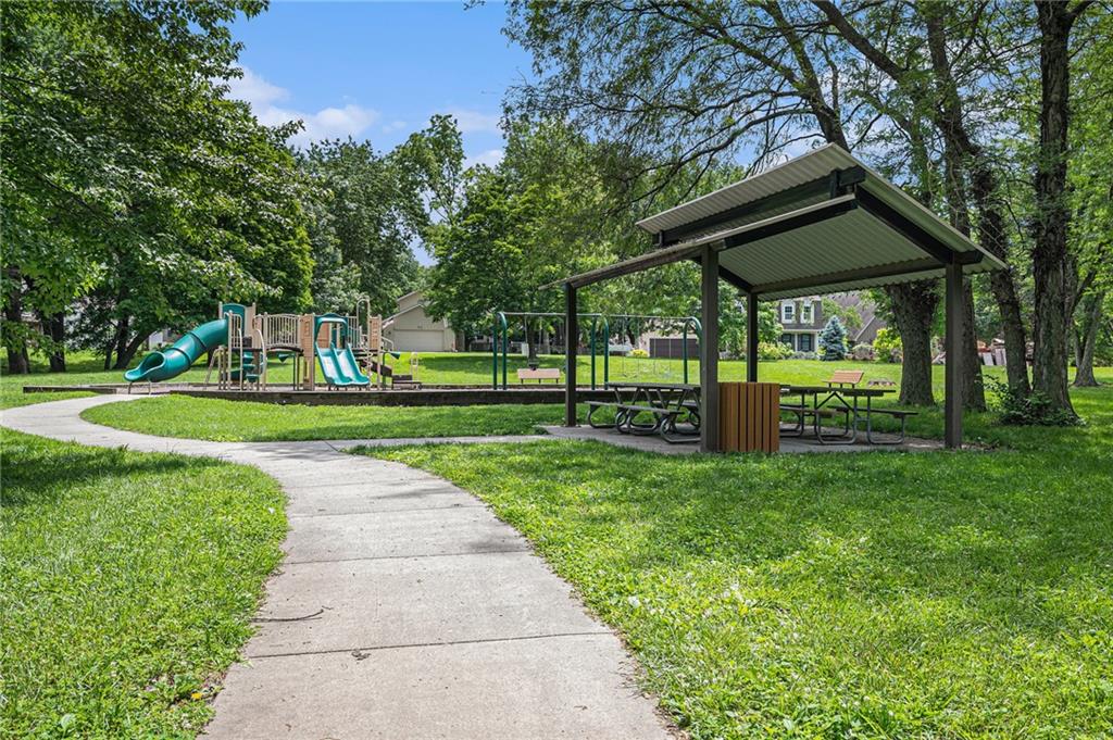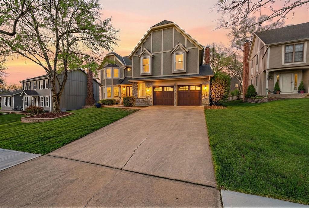 You will love this beautiful and well-maintained Blue Valley 2-story! The main level features a fantastic great room that truly stands out, with a stone fireplace, beamed ceiling, and wet bar—ideal for both relaxing evenings and entertaining guests. The updated kitchen includes quartz countertops, new backsplash, and a new oven and cooktop, creating a clean, modern feel while still being highly practical. The fridge & w/d stay. Both a formal dining room and a breakfast room are on the main floor, as well as a versatile flex room that could be a home office, playroom, or additional living space, and the first-floor laundry adds everyday convenience. Upstairs, the spacious primary suite includes a walk-in closet and a large bathroom featuring a dual sink vanity, jetted tub, and separate shower. The second bedroom includes a private bathroom with a shower—an uncommon and valuable feature in this neighborhood. The third and fourth bedrooms are generously sized and share the hallway bathroom with a double vanity and tub/shower combination. The unfinished basement provides an excellent opportunity for future expansion. Other updates include the HVAC system in 2021 and newer flooring throughout much of the home. Outside, the backyard is perfect for play or pets, along with both a patio for grilling and a deck for outdoor dining. Enjoy easy access to Shannon Valley Park which offers a playground, tennis courts, basketball court, picnic shelter, and the 14-mile Indian Creek Trail System. The neighborhood offers a wonderful sense of community by providing events such as quarterly food trucks, Art in the Park, annual cornhole tournament, and holiday festivities. This home is conveniently located close to 435 and 69 highways, Corporate Woods, as well as many shops and restaurants. All of this within the award winning Blue Valley schools! The elementary school is even located in the neighborhood. Come experience everything this home - and this community - have to offer!