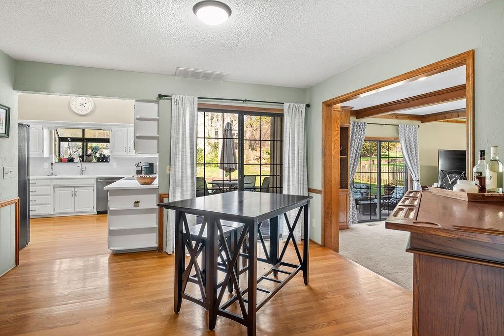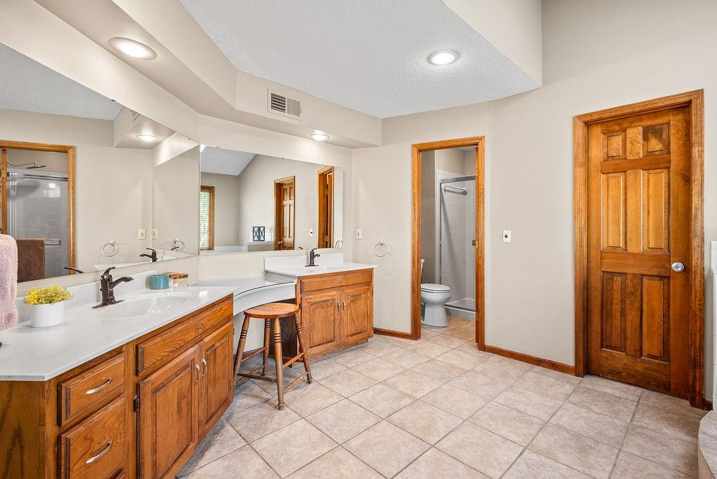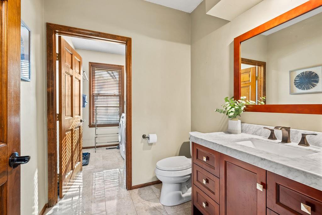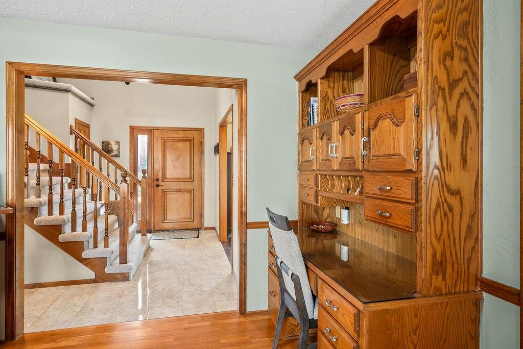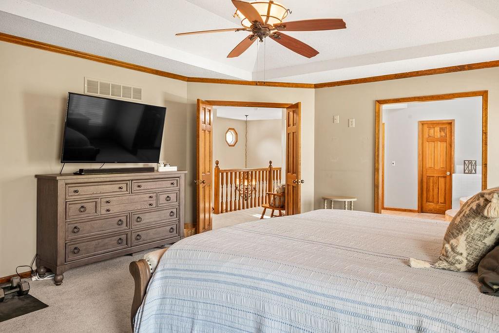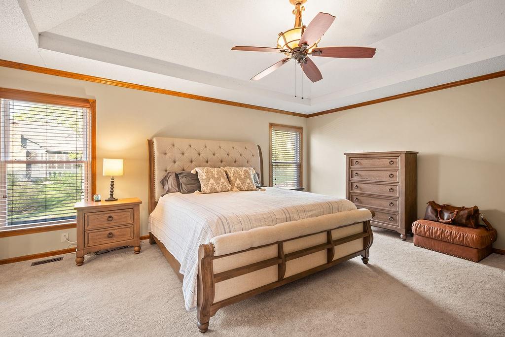 You will love this beautiful and well-maintained Blue Valley 2-story! The main level features a fantastic great room that truly stands out, with a stone fireplace, beamed ceiling, and wet bar—ideal for both relaxing evenings and entertaining guests. The updated kitchen includes quartz countertops, new backsplash, and a new oven and cooktop, creating a clean, modern feel while still being highly practical. The fridge & w/d stay. Both a formal dining room and a breakfast room are on the main floor, as well as a versatile flex room that could be a home office, playroom, or additional living space, and the first-floor laundry adds everyday convenience. Upstairs, the spacious primary suite includes a walk-in closet and a large bathroom featuring a dual sink vanity, jetted tub, and separate shower. The second bedroom includes a private bathroom with a shower—an uncommon and valuable feature in this neighborhood. The third and fourth bedrooms are generously sized and share the hallway bathroom with a double vanity and tub/shower combination. The unfinished basement provides an excellent opportunity for future expansion. Other updates include the HVAC system in 2021 and newer flooring throughout much of the home. Outside, the backyard is perfect for play or pets, along with both a patio for grilling and a deck for outdoor dining. Enjoy easy access to Shannon Valley Park which offers a playground, tennis courts, basketball court, picnic shelter, and the 14-mile Indian Creek Trail System. The neighborhood offers a wonderful sense of community by providing events such as quarterly food trucks, Art in the Park, annual cornhole tournament, and holiday festivities. This home is conveniently located close to 435 and 69 highways, Corporate Woods, as well as many shops and restaurants. All of this within the award winning Blue Valley schools! The elementary school is even located in the neighborhood. Come experience everything this home - and this community - have to offer!