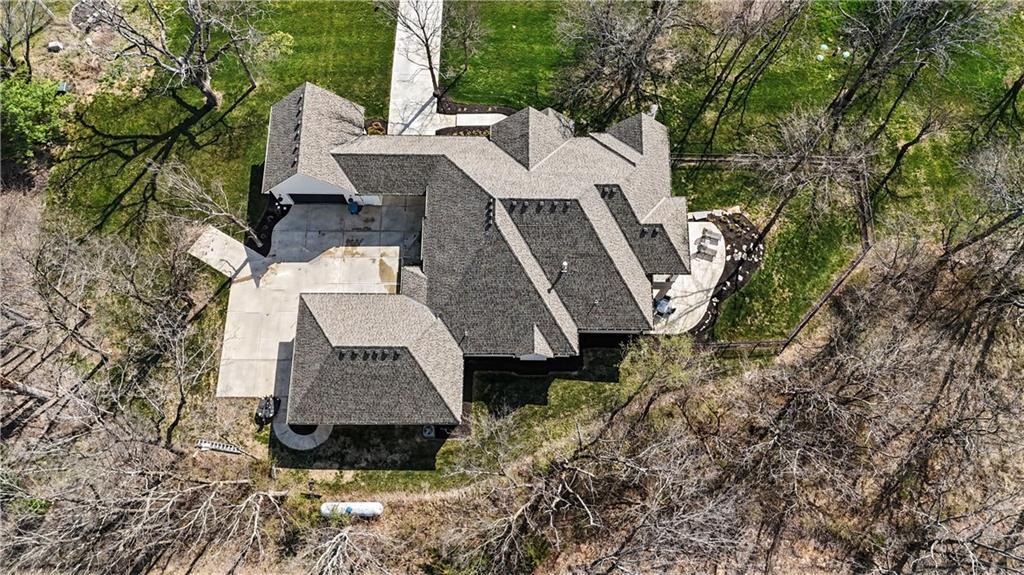 Luxury living in the sought-after **Blue Valley School District** — where location truly is everything. Builder's personal residence, situated on **2 scenic acres of beautifully treed, fenced property**. This stunning former spec home offers 4 spacious bedrooms and 4.5 baths in a beautifully designed ranch floor plan. The main level features a luxurious primary suite complete with separate his-and-hers bathrooms for the ultimate private retreat, plus a convenient laundry room located within the primary suite. Each additional bedroom includes its own en-suite bath, offering comfort and privacy for family and guests. The kitchen is a showstopper, showcasing a large statement island, gas cooktop, double sinks, premium Thermador appliances and an spacious butler's pantry — perfect for entertaining. A second laundry room is thoughtfully located in the mudroom just off the kitchen, adding everyday functionality. The home includes a 2-car attached garage plus a 2-car detached garage connected by a porte cochere. A secondary stairwell in the garage provides direct access to the expansive 3,500 sq ft unfinished daylight basement — ready for you to design and customize to your needs. The charming carriage house offers ideal space for a private office, guest quarters, or multi-generational living. Enjoy peaceful views of nature from the covered patio just off the living room. All this, just minutes from highways, shopping, and restaurants — a rare combination of luxury, space, and convenience.