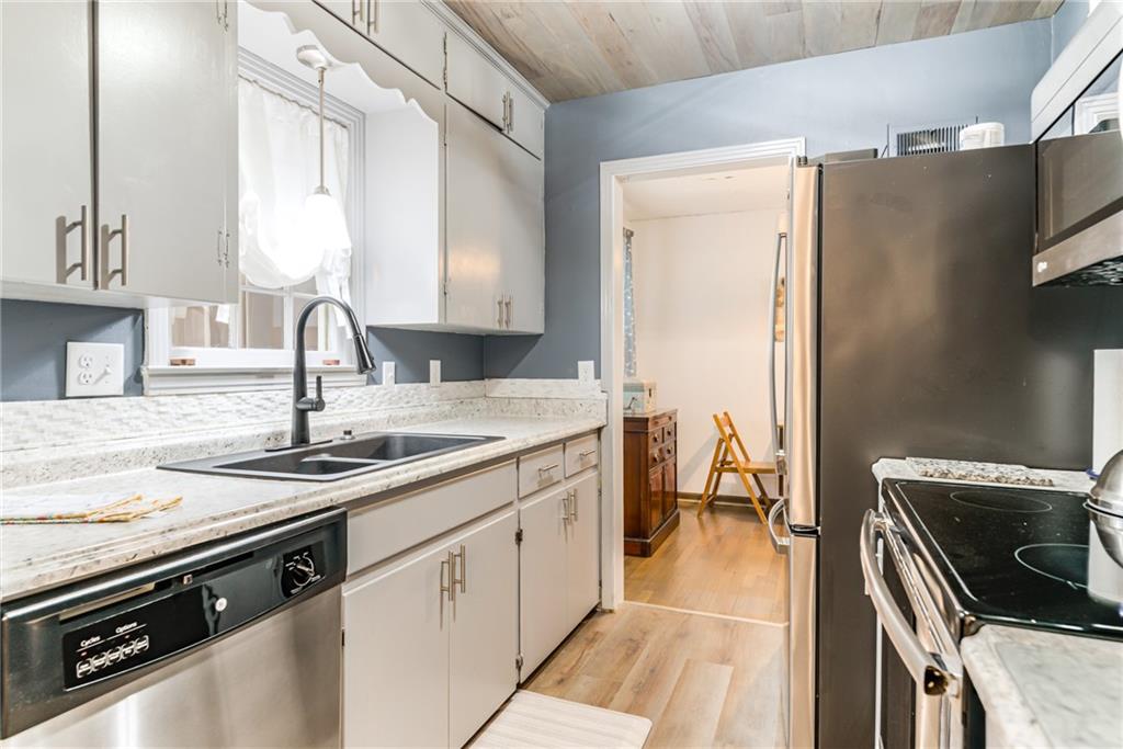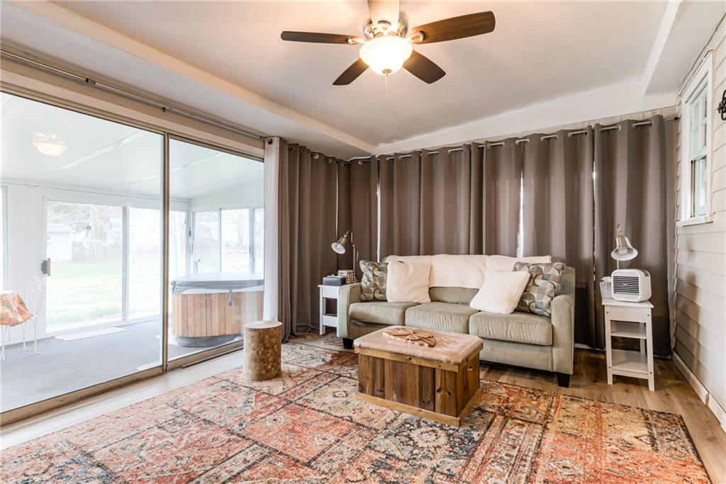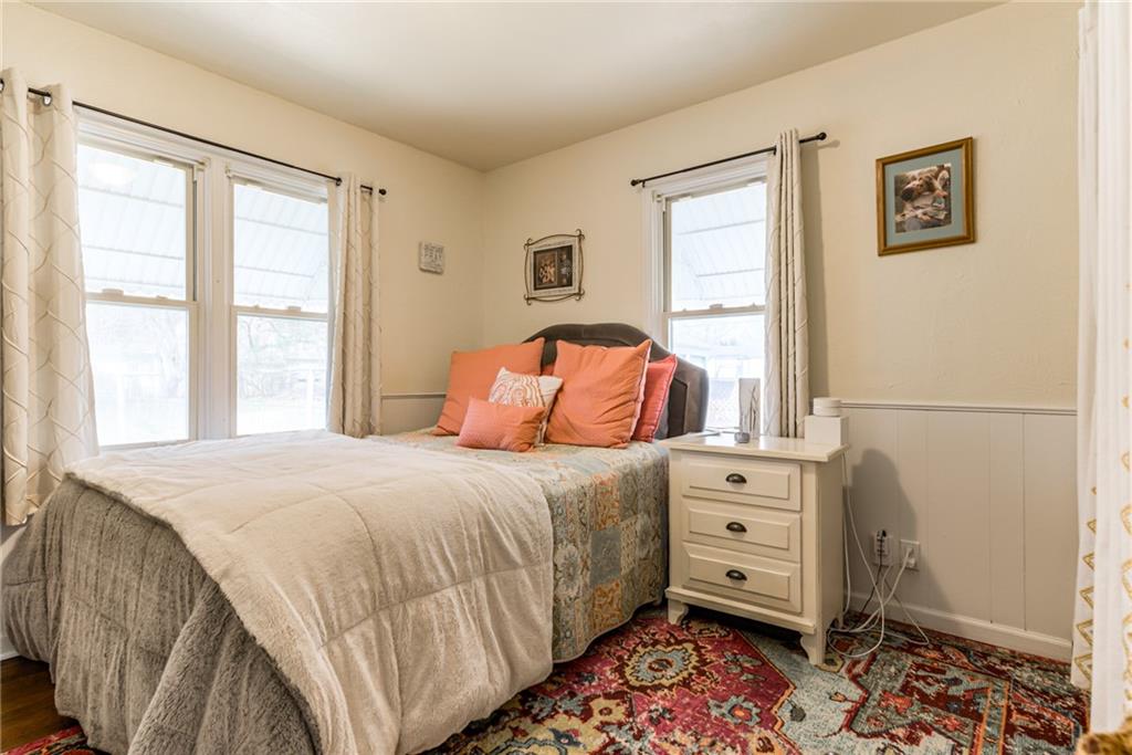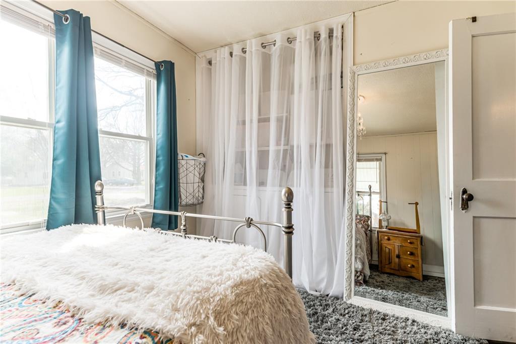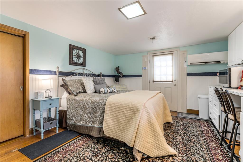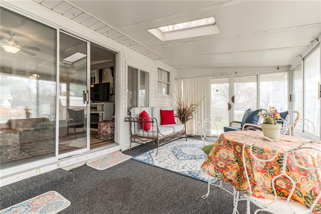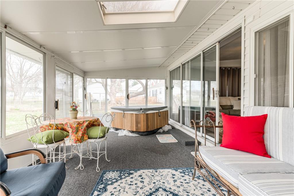 Charming and full of character, this lovely home blends timeless details with modern comfort. The inviting living room features original hardwood floors, a cozy fireplace framed by built-ins, and a stylish shiplap accent wall that adds warmth and personality. Enjoy additional living space in the spacious family room, complete with an electric fireplace—perfect for relaxing or entertaining. The kitchen is equipped with stainless steel appliances and opens to a separate breakfast room for casual dining. A formal dining room offers flexibility and can easily serve as a home office. The main level includes two comfortable bedrooms and a full bath, along with a stunning sunroom that overlooks the expansive, private backyard—ideal for morning coffee or evening gatherings. A standout feature of this property is the separate studio living quarters, currently generating $1,050 per month in rental income—perfect for supplemental income, guests, or private workspace. Washer and Dryer hookup currently in a closet in front bedroom. Basement also has hookups. Built in closet unit in front bedroom can stay. Hot tub in sunroom does not stay. Most windows have been replaced with thermal windows. Shelves in storage room off garage to stay. Large basement with plenty of storage. Metal siding on exterior of home for low maintenance. Studio washer/dryer, fridge, mini split cool/heat to stay. This home offers the perfect blend of charm, functionality, and investment opportunity—all in one!