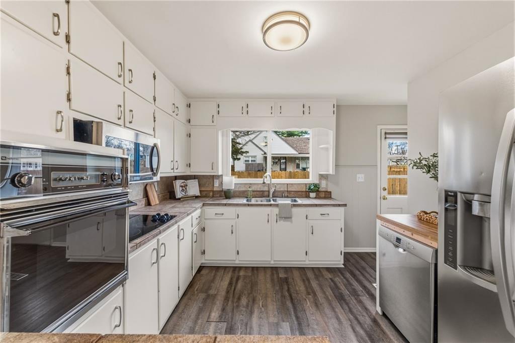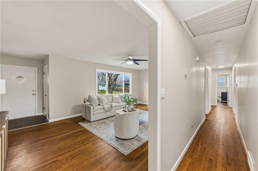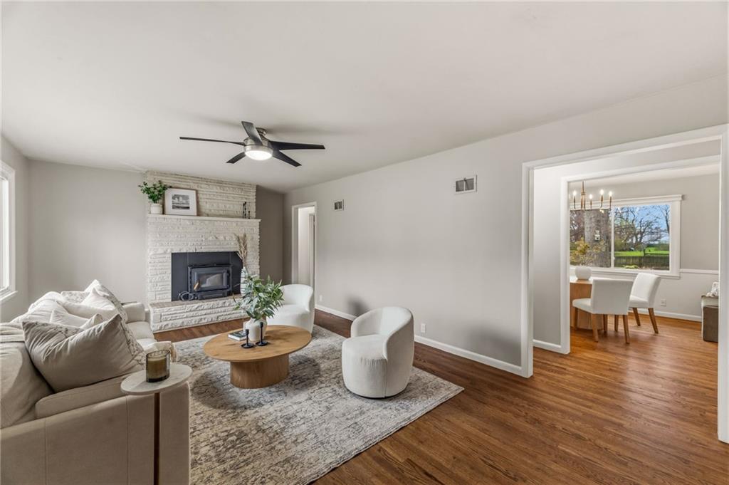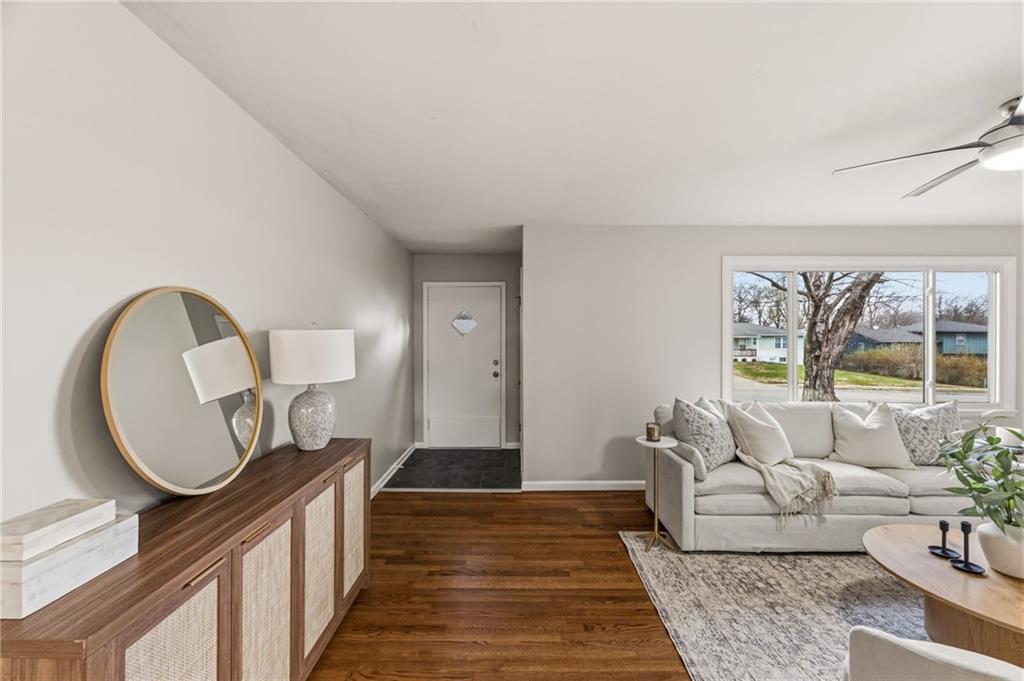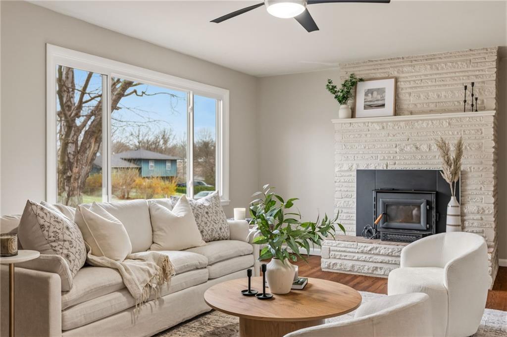 Welcome to a home where location and lifestyle come together seamlessly. Nestled just minutes from downtown Lee’s Summit, this property offers the best of both convenience and charm. Imagine being only a 3-minute drive or a 15-minute walk from your favorite restaurants, local shops, coffee spots, and everything that makes this area so loved. With close proximity to Lee’s Summit High School and quick, easy access to major routes, the location truly could not be better. Inside, the home has been thoughtfully refreshed to provide a move-in ready experience. You’ll find fresh paint throughout, brand new carpet, and beautifully refinished hardwood floors that bring warmth and character to the space. A cozy wood-burning stove adds both charm and functionality, creating the perfect focal point for relaxing evenings at home. The electrical has been updated, and a brand new HVAC system will be installed prior to closing, offering peace of mind for years to come. The layout is both functional and flexible, featuring a spacious primary suite with its own en-suite bathroom. Downstairs, the finished basement includes a non-conforming fourth bedroom and a half bath, perfect for guests, a home office, or additional living space. There is also ample opportunity to expand and customize the basement to fit your needs. Step outside and you’ll find an entertainer’s dream. The large backyard is designed for both relaxation and hosting, complete with a patio, fire pit, hot tub that stays with the home, and raised flower beds ready for your personal touch. A two-car garage and oversized driveway provide plenty of space for guests and gatherings. This is more than just a home. It is a lifestyle opportunity in one of Lee’s Summit’s most desirable locations.
