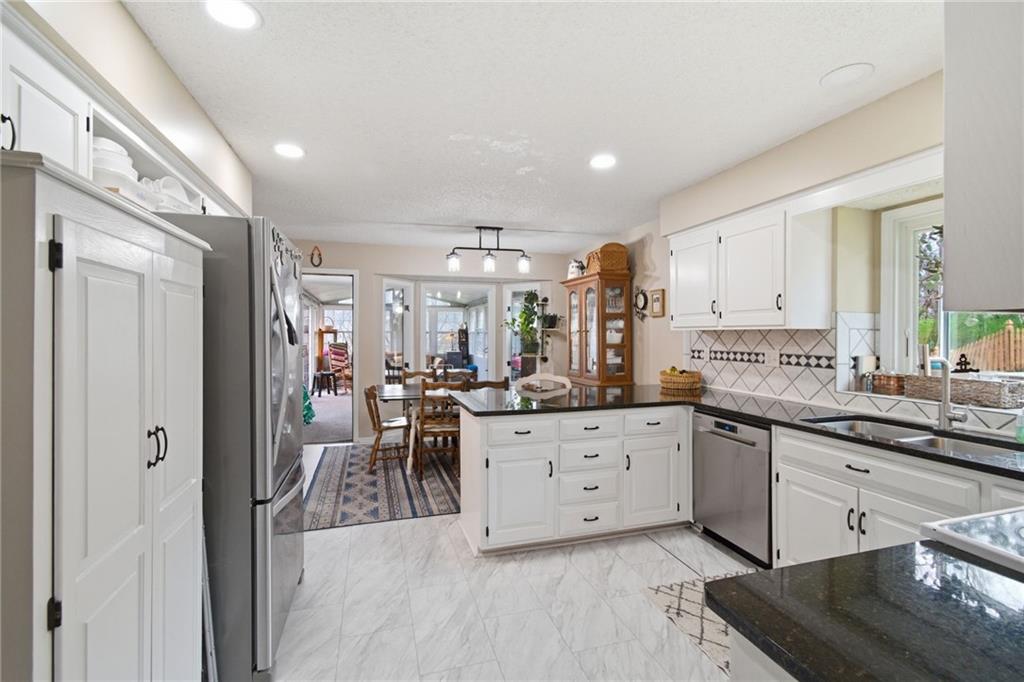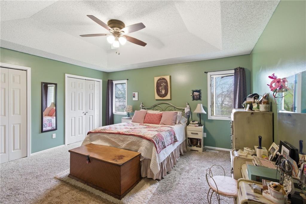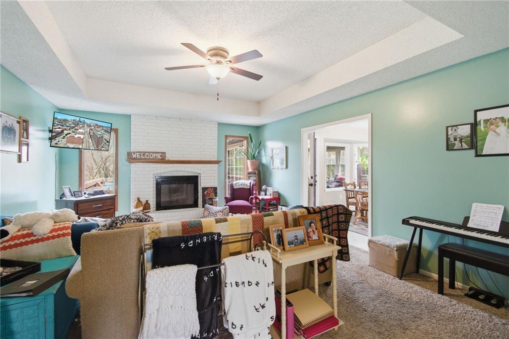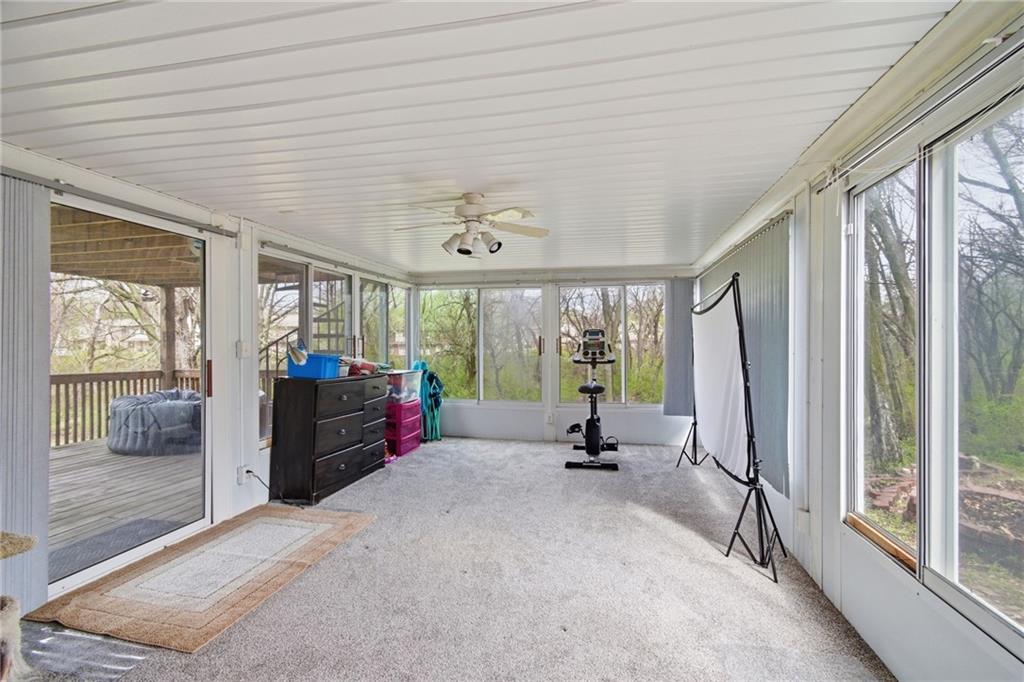 What a find! This spacious Reverse Ranch with a walk out basement has it all! While it is tucked away on a beautifully treed lot, it is conveniently located within the Award-winning Blue Springs School District and is near parks, trails, shopping, major highways, and more! It has bedrooms galore! With the primary (and secondary!) bedrooms and laundry on the main floor-- and three bedrooms downstairs--plus a sixth non-conforming space-- there truly is room for everybody! In addition to the generously sized bedrooms, this home has three full bathrooms, two large living areas with two fireplaces, a spacious eat-in kitchen with natural stone countertops, and two bright 3 Seasons rooms! Let me say that part again: TWO 3 Seasons Rooms (one off of the kitchen/dining and one downstairs) that look out to the large backyard at a peaceful, private setting with a backdrop of mature greenery. Oh, and also this home has a three-tiered deck! Designed for easy living with flexible spaces, cozy gathering areas, and a setting that feels like your own retreat, this home blends comfort and versatility in a way that truly stands out. At this fair price you will want to schedule your showing today!