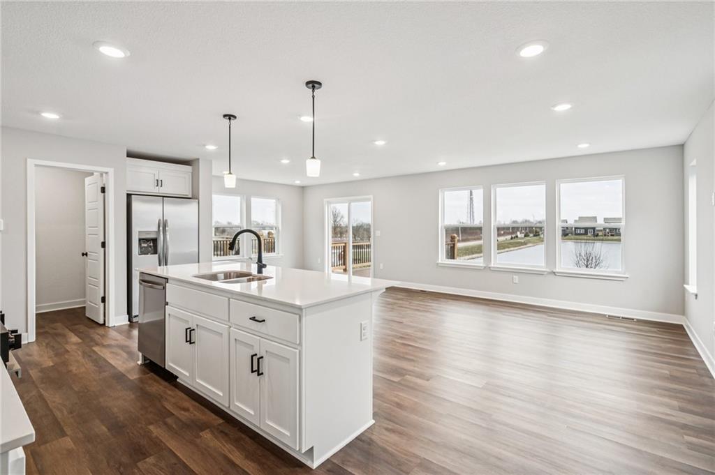 Beautiful 4 bed 2.1 bath 2 car garage home in the desirable community, located in the award-winning Lee’s Summit School District. Enjoy peaceful pond views from the back deck and a daylight basement that adds extra natural light and flexibility. The main level features an open-concept design ideal for everyday living and entertaining, with windows on three sides providing abundant natural light. The kitchen offers a large quartz island for sit-in dining, walk-in pantry, and flows seamlessly into the dining and great room. All bedrooms and the laundry room are conveniently located on the upper level. The spacious primary suite includes a spa-like bathroom with an oversized quartz double-sink vanity. Community amenities include an open-air clubhouse, pool, two playgrounds, covered pavilion with grill, and a scenic two-acre pond with walking trail.