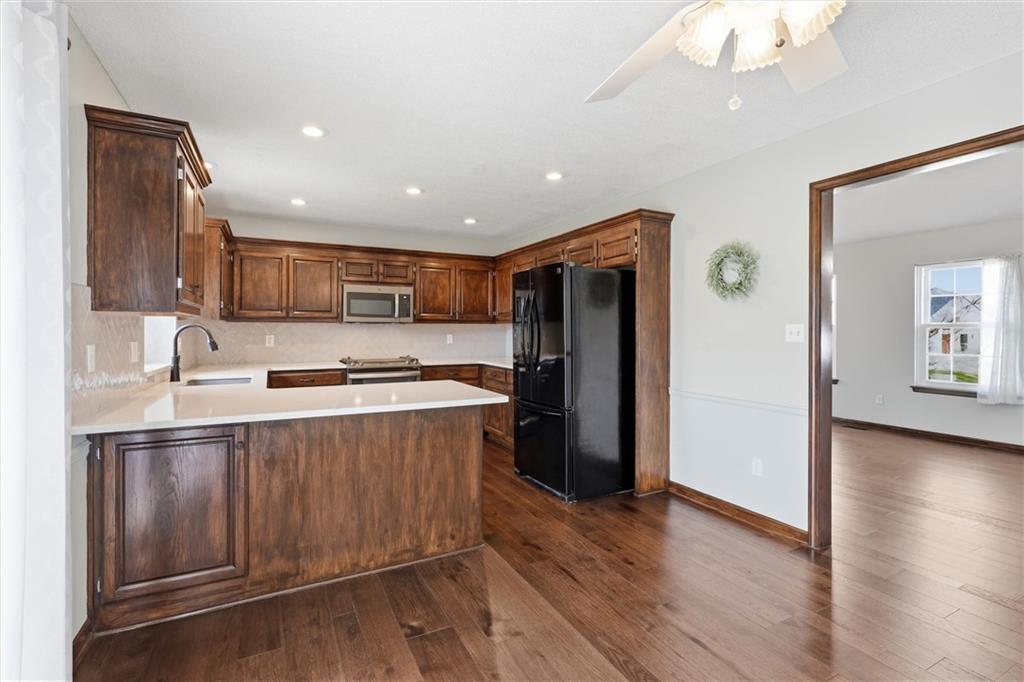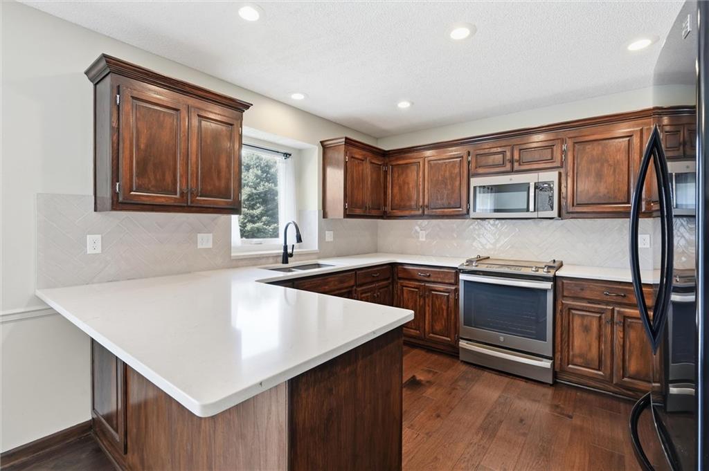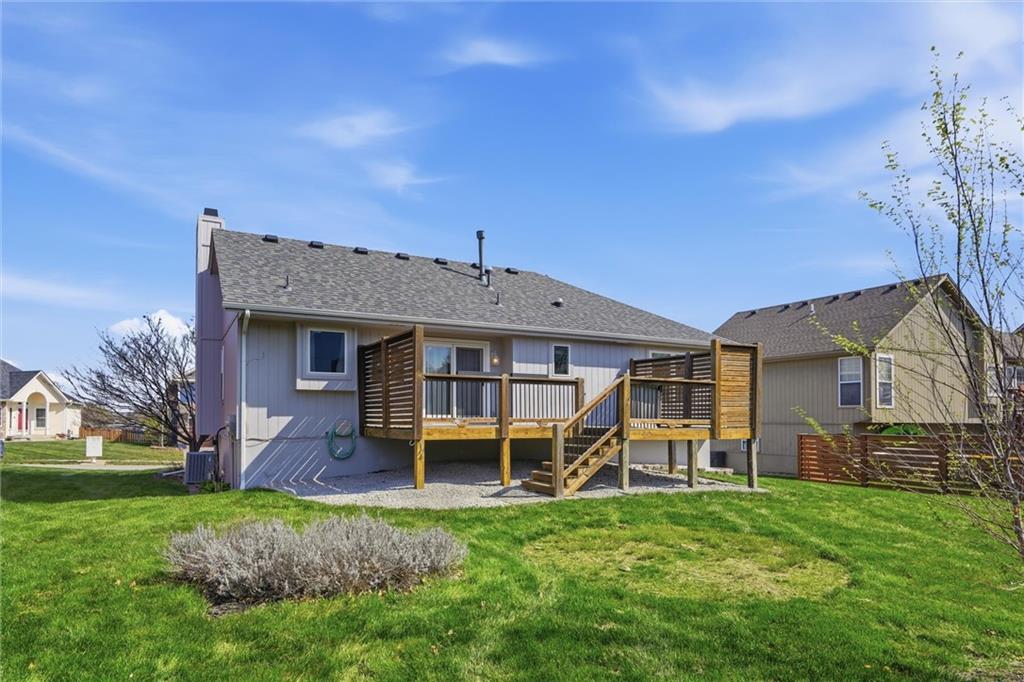 Move right in and start enjoying this beautifully maintained split-entry home in an unbeatable location! Just steps from the elementary school and within walking distance to Legacy Park, convenience truly takes center stage. Step inside to a bright, welcoming living room featuring vaulted ceilings and warm wood floors that create an open, airy feel. The kitchen is both stylish and functional with granite countertops and updated appliances—perfect for everyday living and entertaining. Both bathrooms have been thoughtfully updated, offering a fresh, modern touch. Step outside to the spacious deck—ideal for relaxing evenings, weekend gatherings, or simply enjoying your surroundings. This home combines comfort, updates, and a prime location that’s hard to beat. Don’t miss your chance to make it yours!