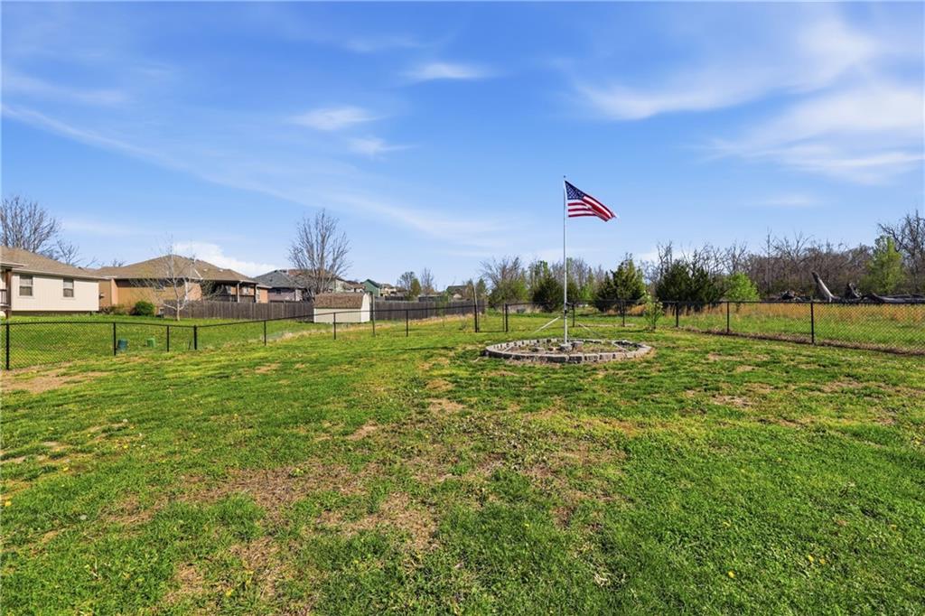Enjoy true one-level living in this charming ranch tucked away on a quiet cul-de-sac in a sought-after Grain Valley neighborhood. The open living area is filled with natural light and flows easily to the covered patio overlooking a nicely sized backyard. Start your mornings on the covered porch swing, which faces east for beautiful sunrise views overlooking the green space. The large unfinished basement offers abundant storage, a safe room, and endless potential to finish into additional living space, bedrooms, a media room, exercise room or whatever fits your needs. This location blends convenience with community, just minutes from shopping, dining, coffee shops, medical offices, schools and easy I-70 access. Nearby amenities include Adams Dairy and Coronado shopping, the new Buckner Tarsney corridor, Lake Remembrance and Blue Springs Dog Park. All of this with no HOA—don’t miss it!