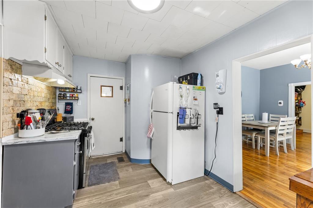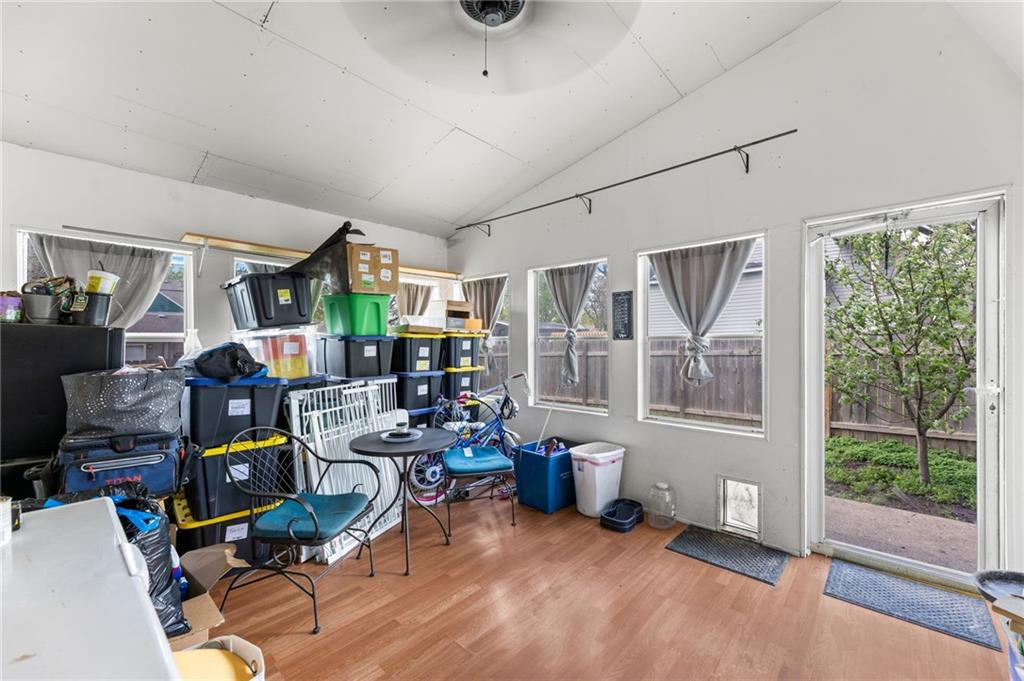 This stunning 4 bedroom, 2 bathroom home perfectly marries historic charm with modern sustainability, offering a rare opportunity to own a piece of architectural beauty. From the moment you step inside, you are greeted by the warmth of original woodwork, gleaming hardwood floors, and a magnificent original staircase that serves as a focal point of the home. The main level features a sprawling living room centered around a cozy gas fireplace, flowing seamlessly into a formal dining room designed for memorable gatherings. The kitchen is a chef's delight, boasting freshly painted cabinetry complemented by elegant new granite countertops. For year-round enjoyment, the sundrenched four-seasons room provides the ideal backdrop for entertaining guests or finding a quiet moment of repose. Practicality meets innovation with the inclusion of a newer HVAC heat pump and solar panels, ensuring exceptional energy efficiency and lower utility costs, including newer windows. The floor plan is thoughtfully designed for flexibility, offering a convenient main-floor bedroom while the upper level houses three additional spacious bedrooms and a full bathroom. Outside, the property continues to impress with a 2 car detached garage and a privacy fenced yard that offers a secluded oasis for relaxation. Situated in a prime location, this home is just a short stroll from the vibrant and historical Paola Town Square, where you can enjoy local shops, dining, and a variety of community events held throughout the year. This property isn't just a house; it's a lifestyle upgrade nestled in the heart of a charming community.