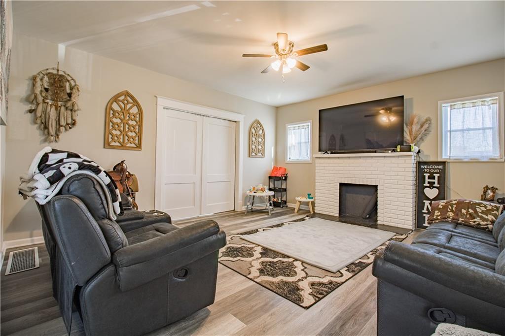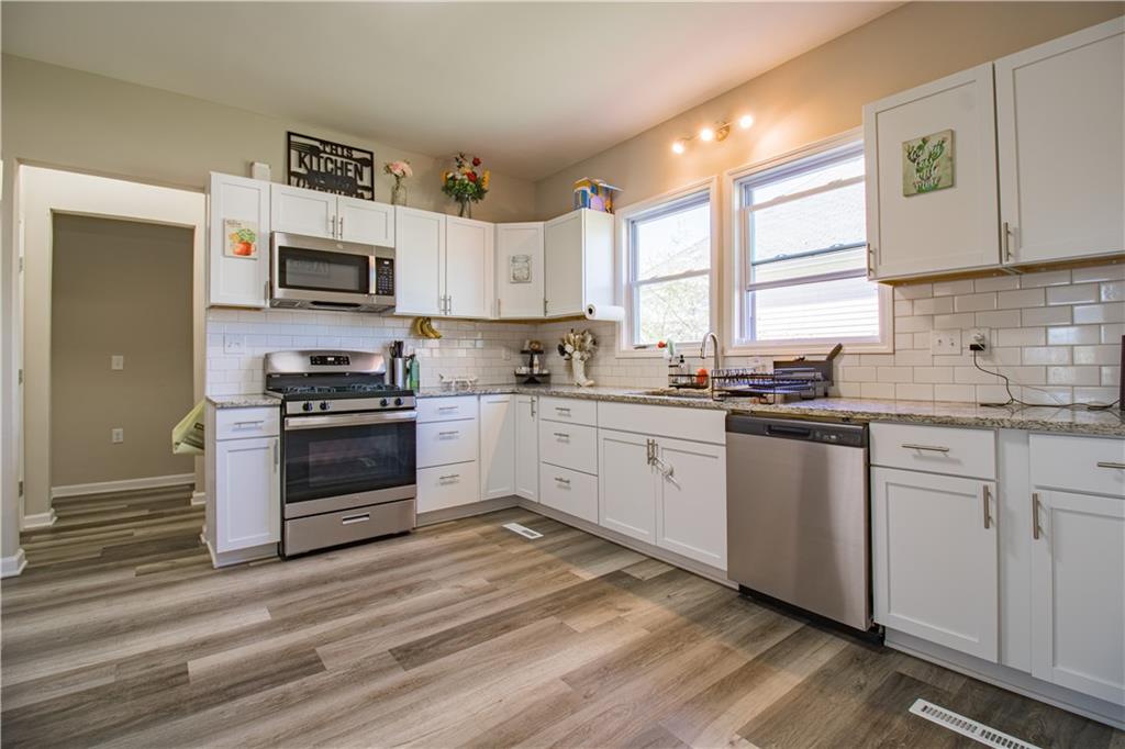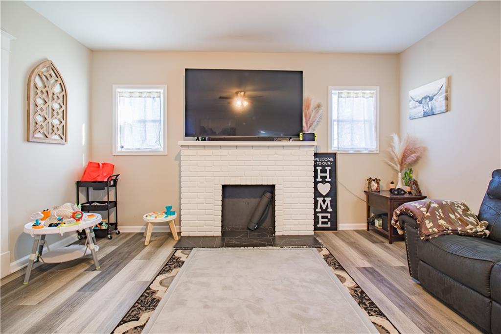Welcome to this beautifully updated two-story home with just under 3,000sqft of living space! Whether you are looking for multi-generational living or have a large family, this home can fit everyone. The exterior has maintained its charm with a full modernized interior remodel. As you enter, you'll notice the spacious living area with newer lvp flooring, interior paint, and charming white brick fireplace. The large room off the kitchen features a pocket door, built-in drawers with a bench, perfect for a spacious dining area or second living space. The updated kitchen is equipped with newer stainless steel appliances and granite countertops. Upstairs, you'll find four generously sized bedrooms and a bonus room. The primary bedroom features a separate sunroom for relaxing with natural lighting. Both bathrooms have been updated with newer vanities, lvp, and white subway tile. The large back deck is perfect for hosting and entertaining. The unfinished basement provides tons of storage space or can be finished for even more living space. All updates were complete in 2024, including all new HVAC system.
