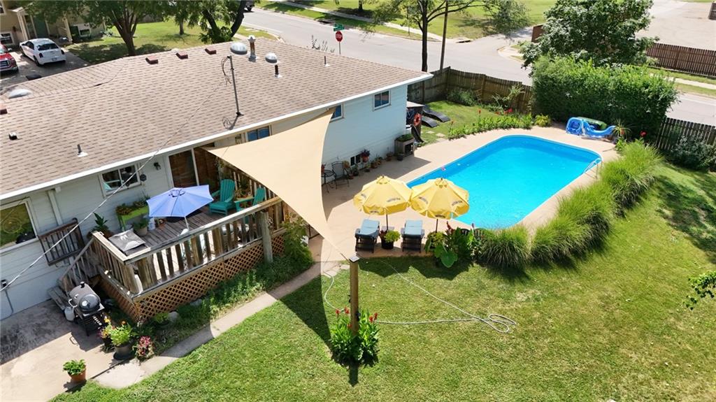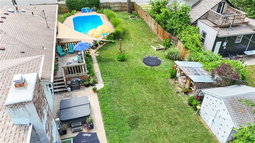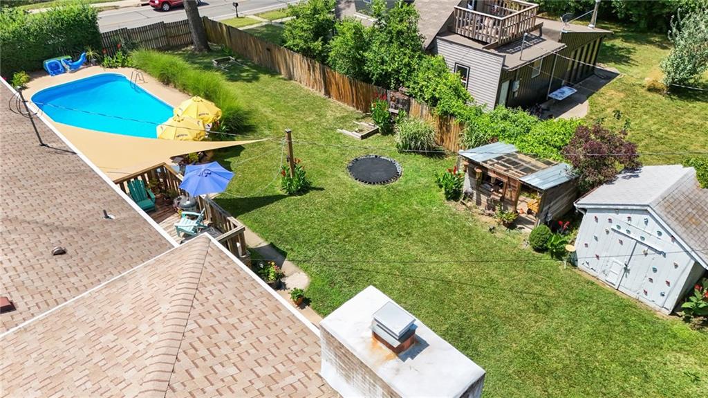 Lovingly maintained for over 15 years, this one-of-a-kind East Lawrence home offers exceptional versatility with space to live, entertain, and generate income. The main level features four bedrooms, two full baths, a bright living room, and an updated kitchen with dining area. Upstairs, a fully renovated loft creates a private retreat complete with a spa-like bathroom, striking cast-iron tub, fireplace and its own composite deck overlooking the backyard. With a separate entrance and a long-standing history as a successful Airbnb, this space offers incredible income potential or an ideal private primary suite. The finished daylight basement expands the home’s functionality with a custom bar, recreation area, additional bathroom, and a dedicated workout space. Situated on a large corner lot over a quarter acre, the fenced backyard is a true outdoor oasis featuring an in-ground pool, patio space, mini trampoline, shed, and additional storage. Sun tunnels bring in natural light throughout including one in the basement, and a pool table remains with the home. Extensive updates have been completed over the years, including replacement windows, updated plumbing, newer roof, hot water heater, and improvements to flooring, kitchen, and baths. The home has been pre-inspected for added peace of mind. A rare opportunity to own a home that offers both lifestyle and income potential in a prime East Lawrence location. Exterior photos were taken this summer to showcase the pool when it was open and the landscaping.